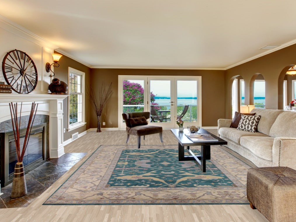 Teal Wool Handmade Oushak Indian Area Rug 9x12