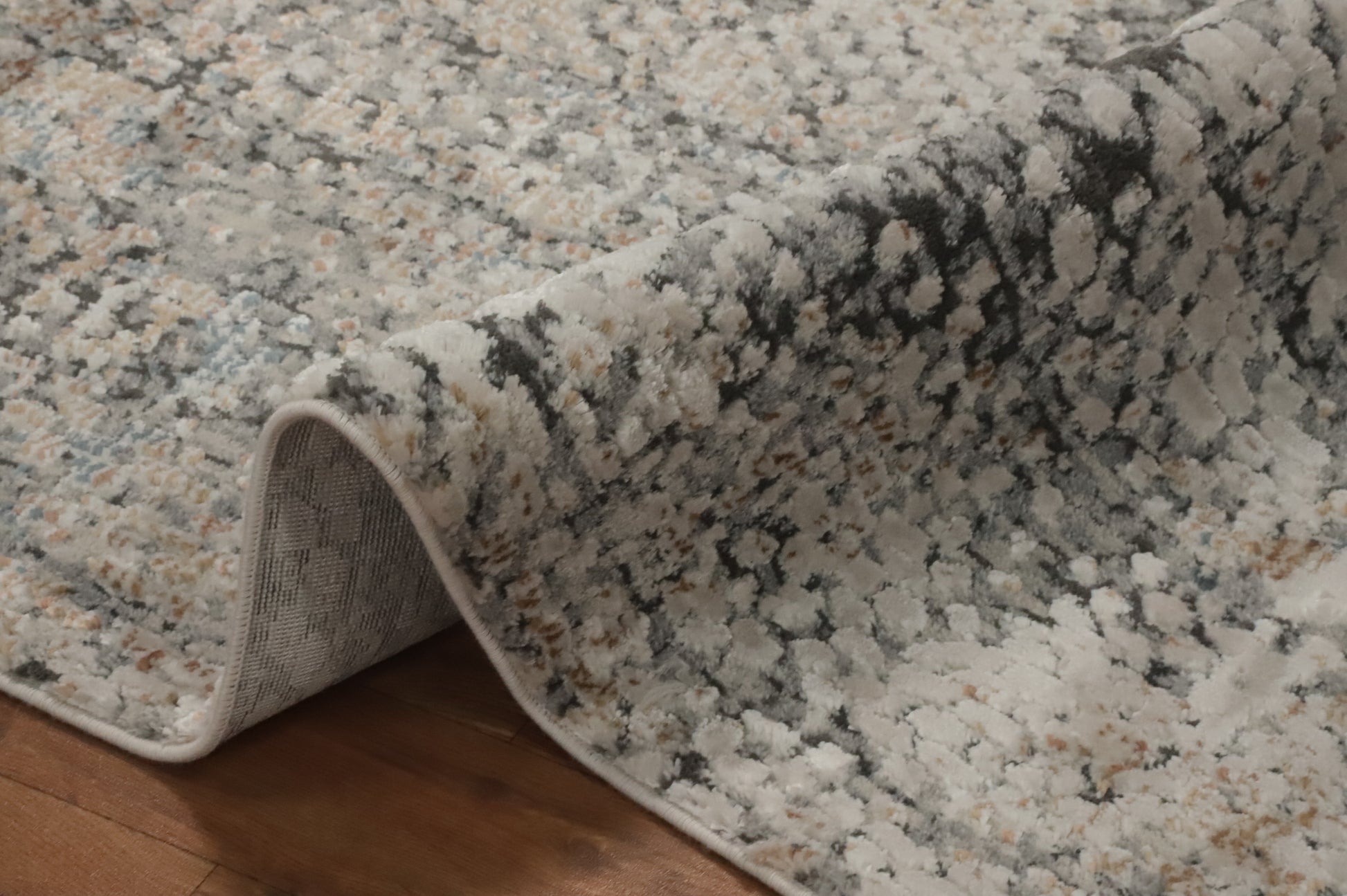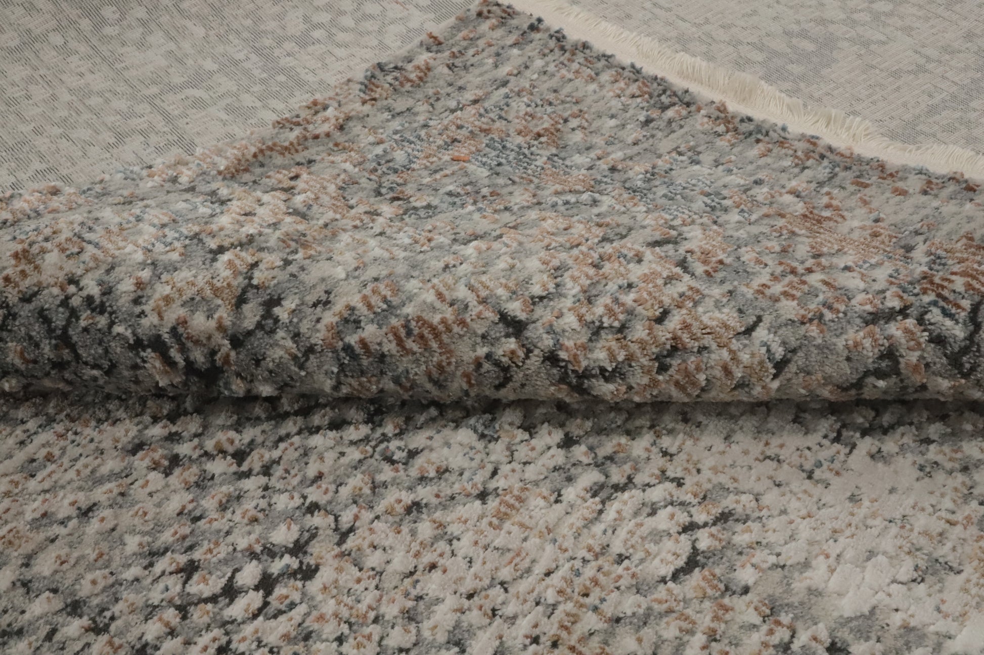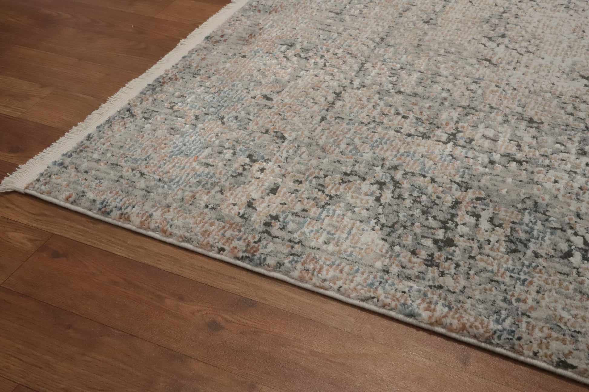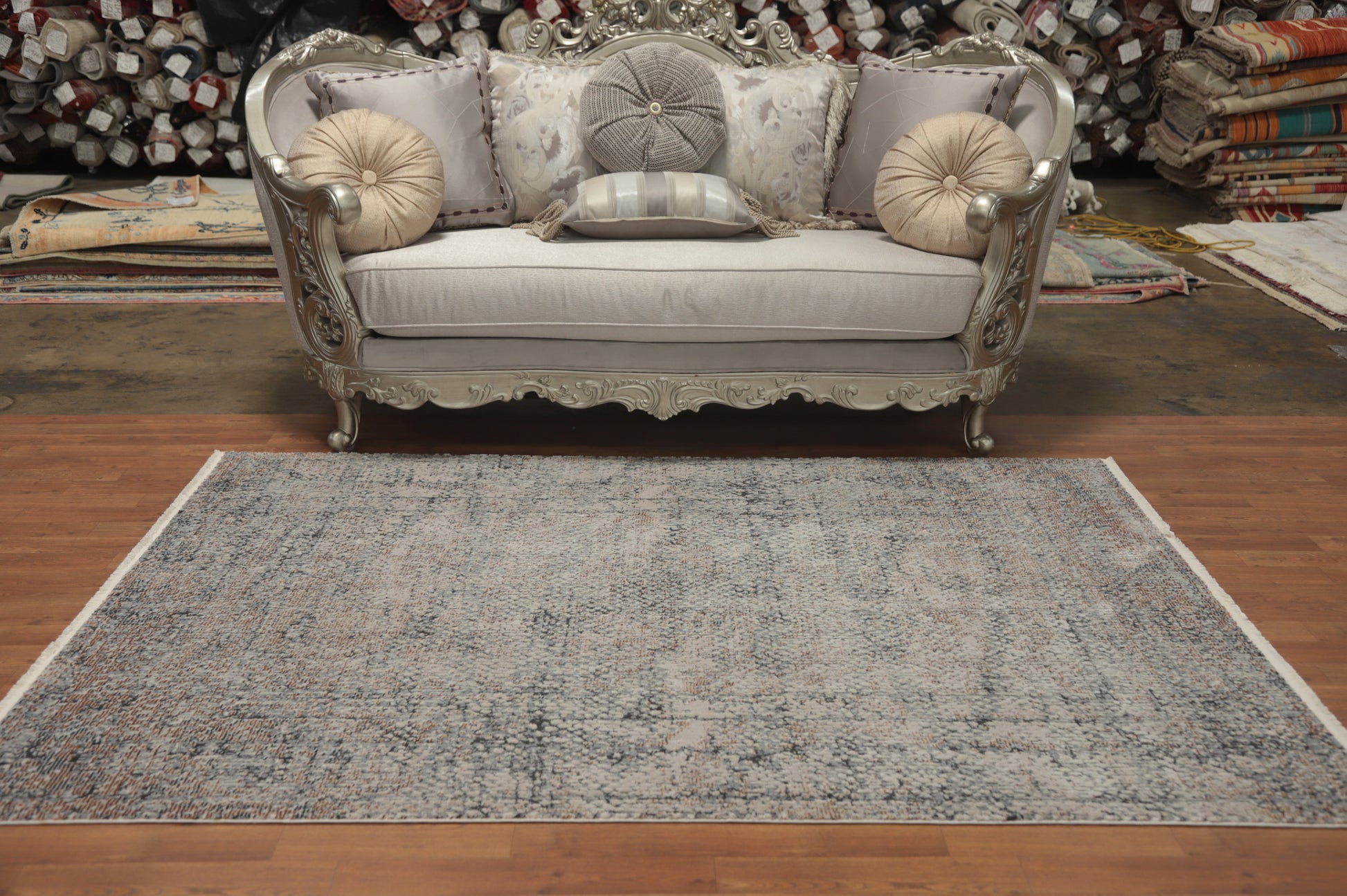 A Beautiful Genuine Turkey Distressed rug is Machine Made by skillful weavers in Turkey with Polyester Material. This rug is in New, First Quality condition. dimensions are 7' 5'' X 5' 2'' in foot and 226 X 157 in centimeter. the primary color is Greys & Charcoal.