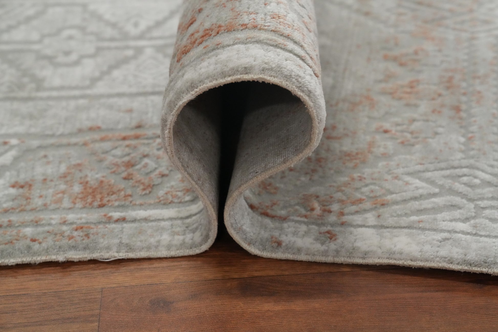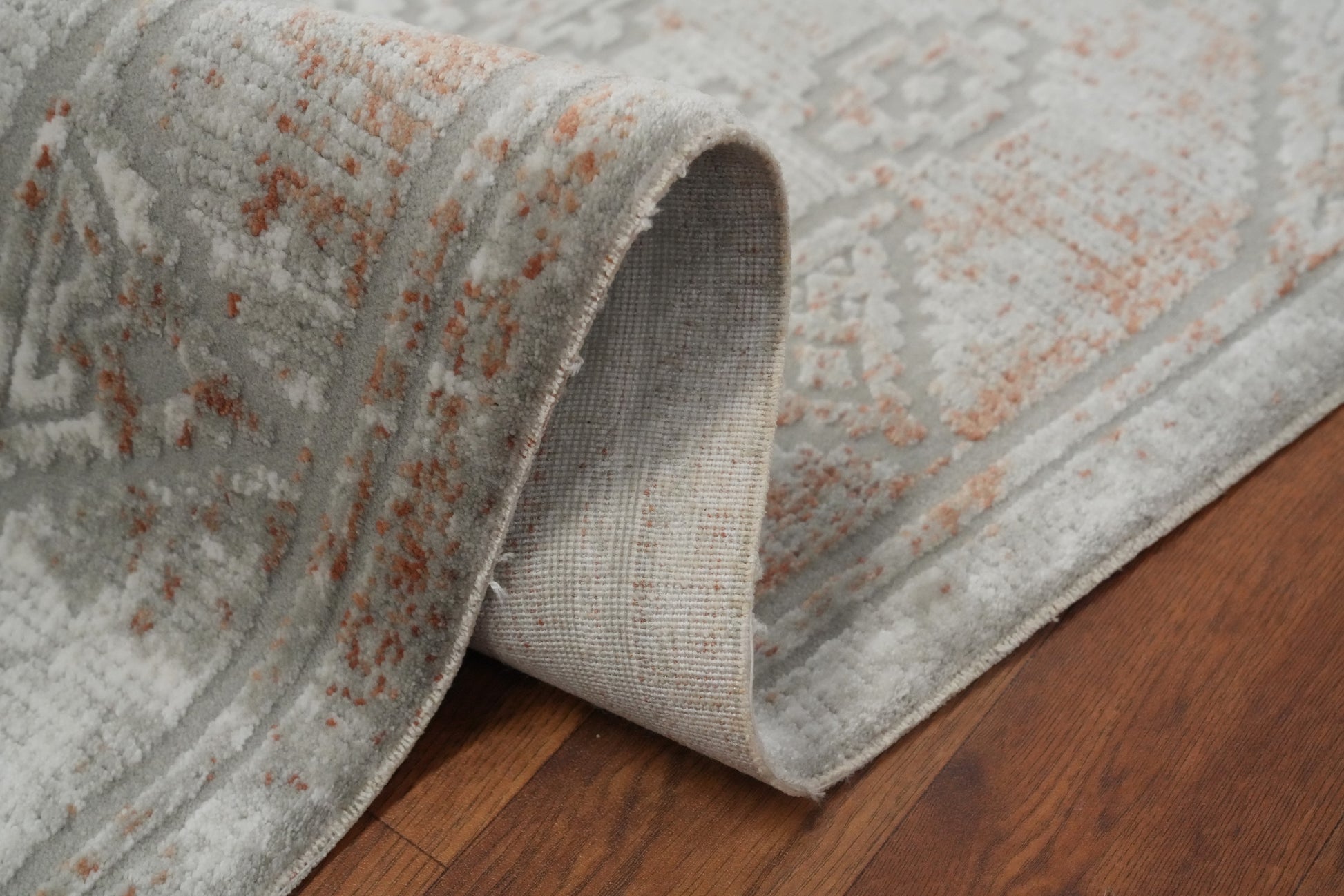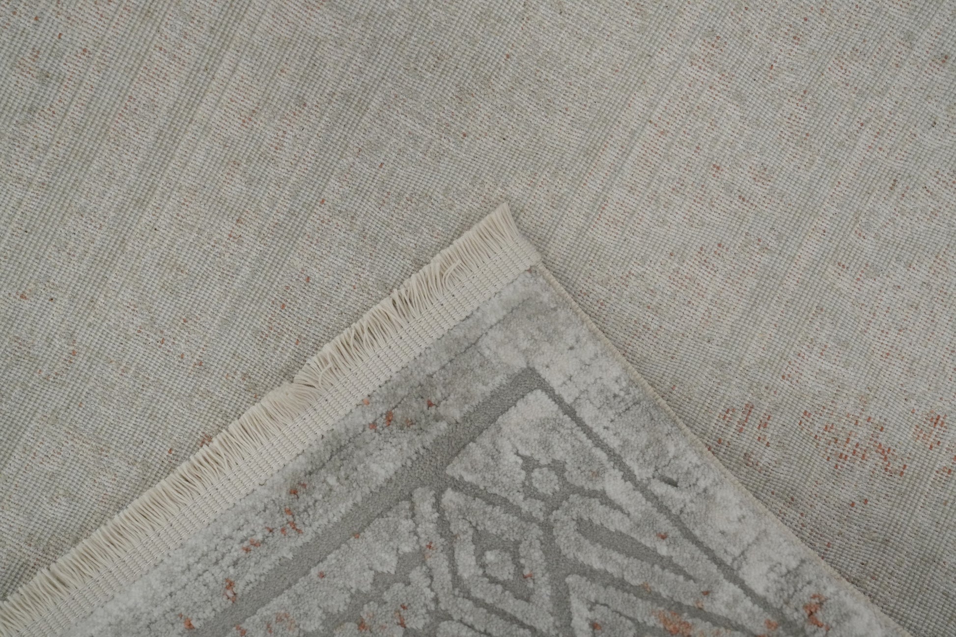 A Beautiful Genuine Turkey Distressed rug is Machine Made by skillful weavers in Turkey with Polyester Material. This rug is in New, First Quality condition. dimensions are 7' 5'' X 5' 2'' in foot and 226 X 157 in centimeter. the primary color is Greys & Charcoal.