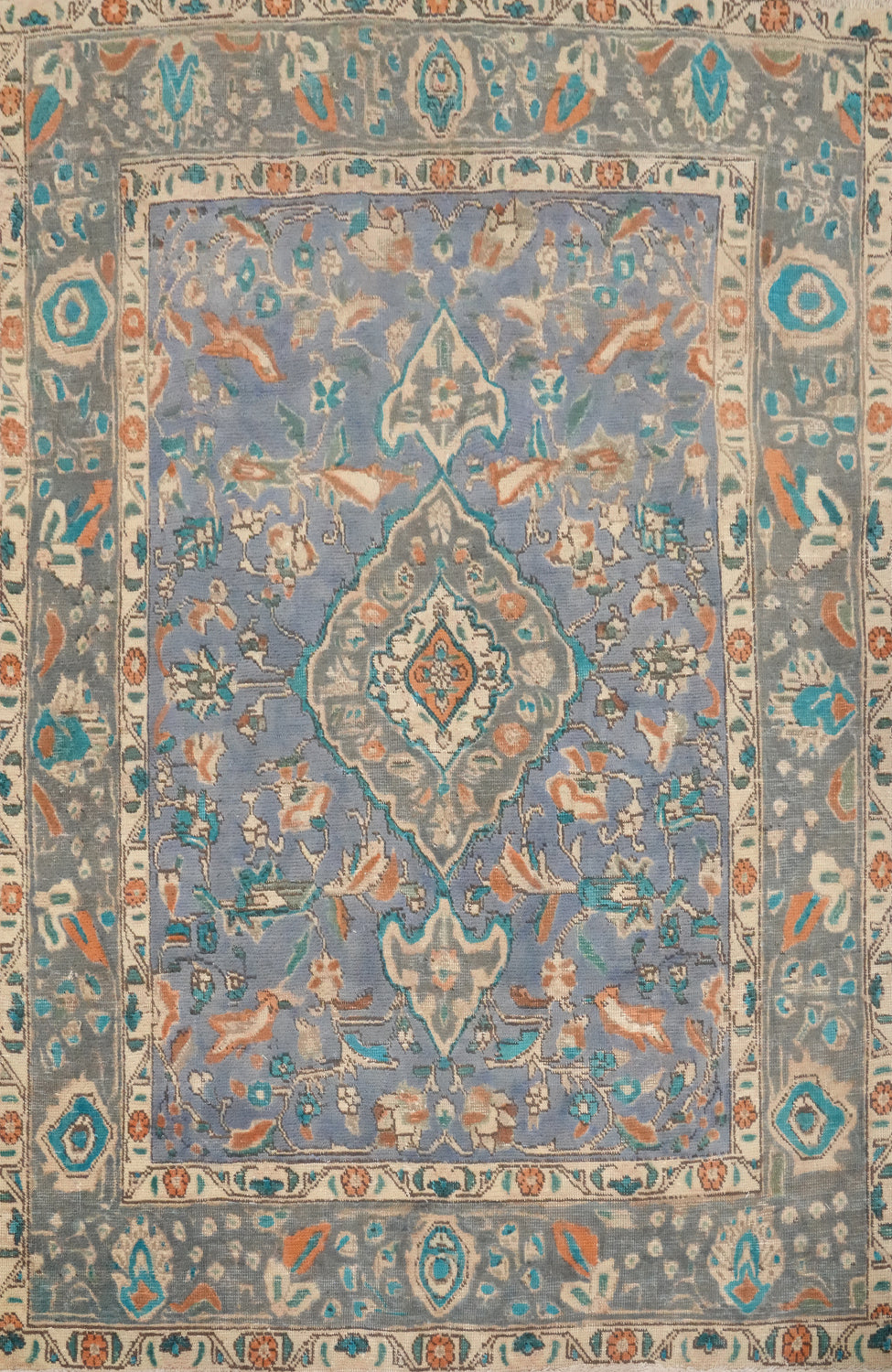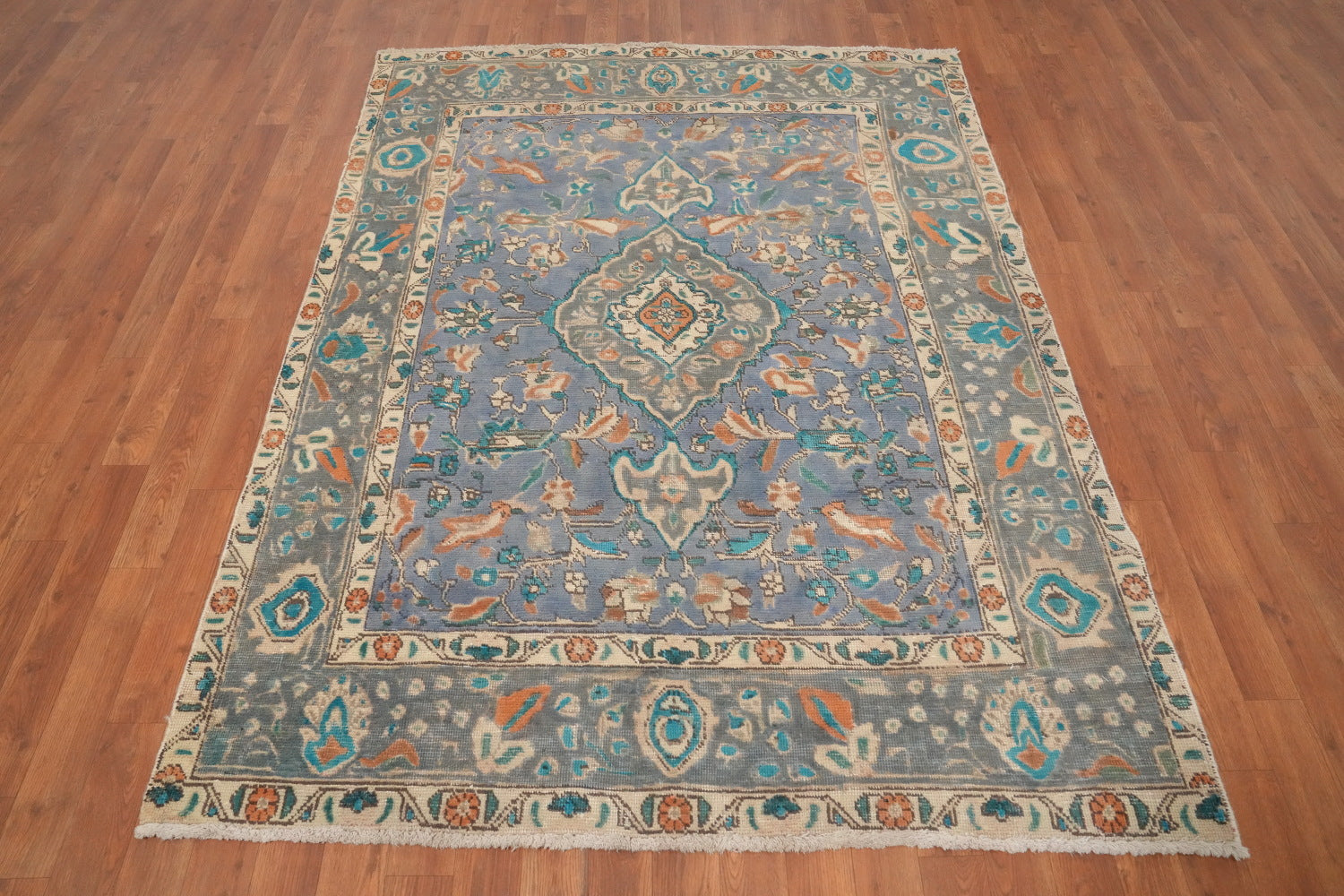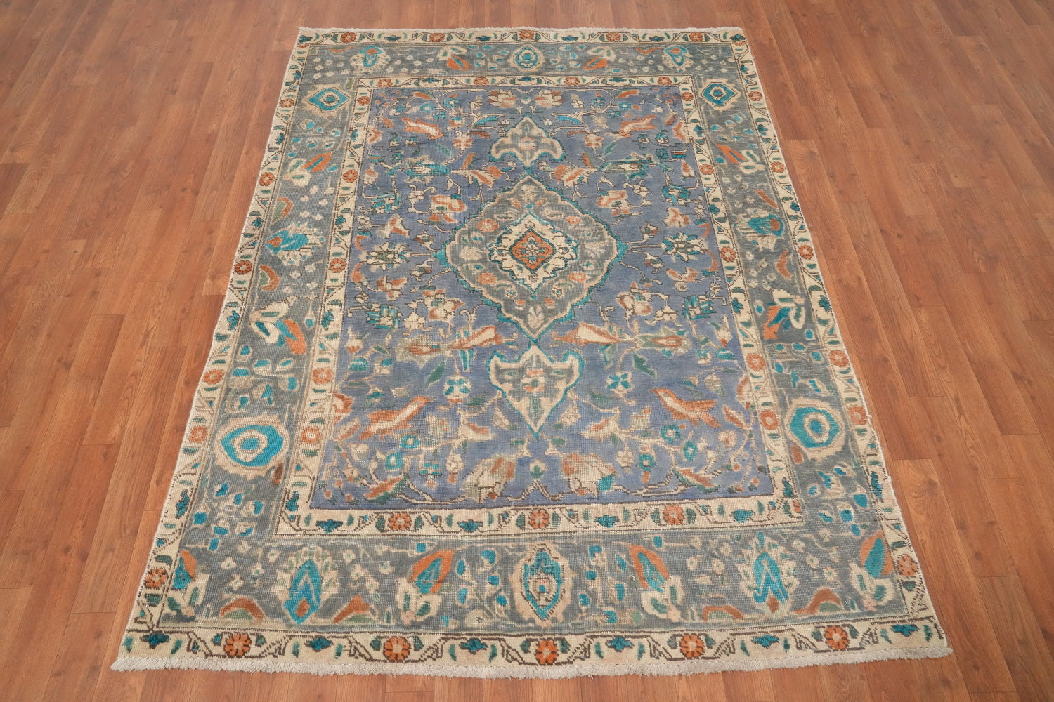 Traditional Blue Floral Tabriz Persian Rug 5x6