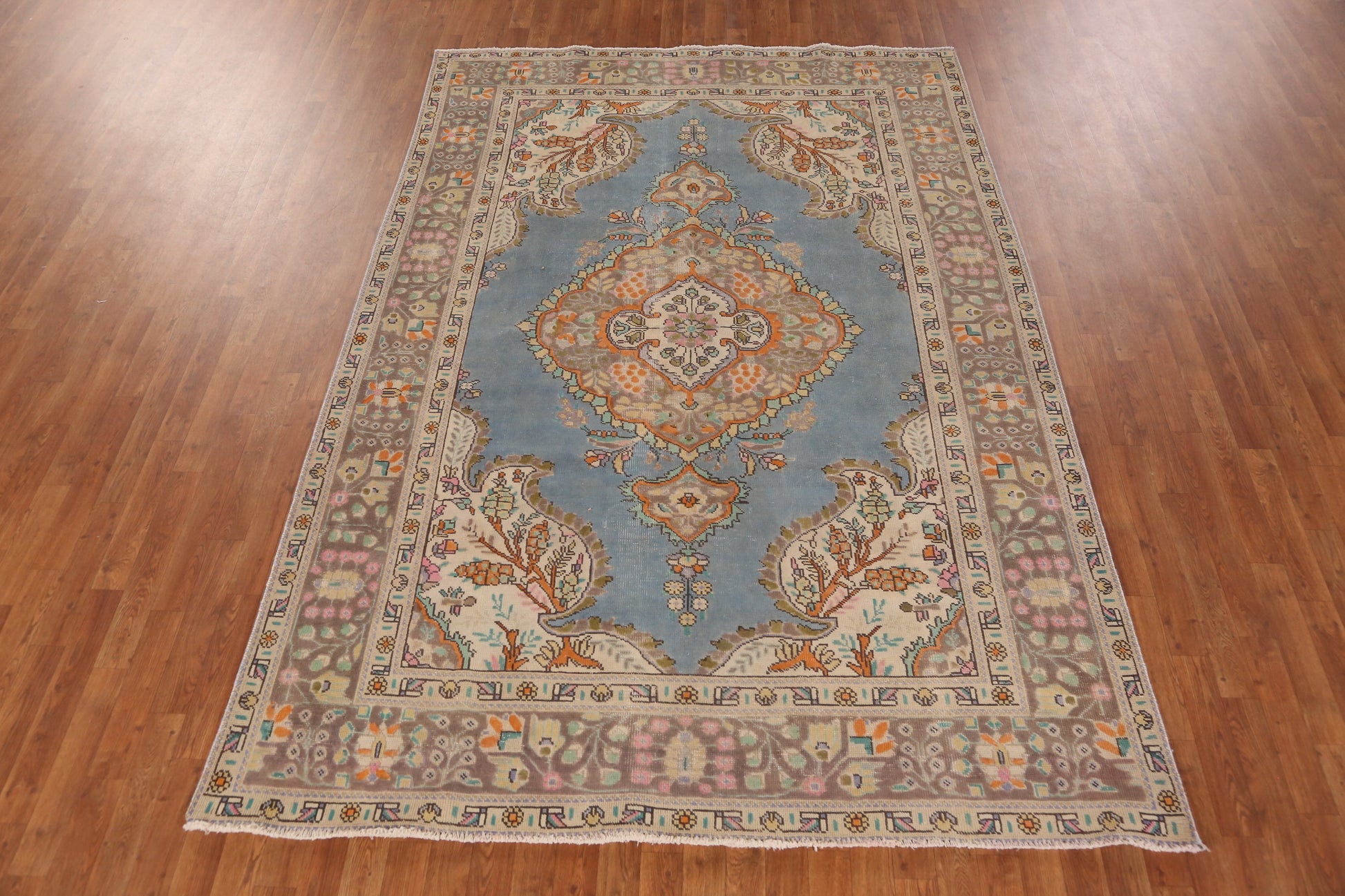Traditional Blue Tabriz Persian Area Rug 7x9