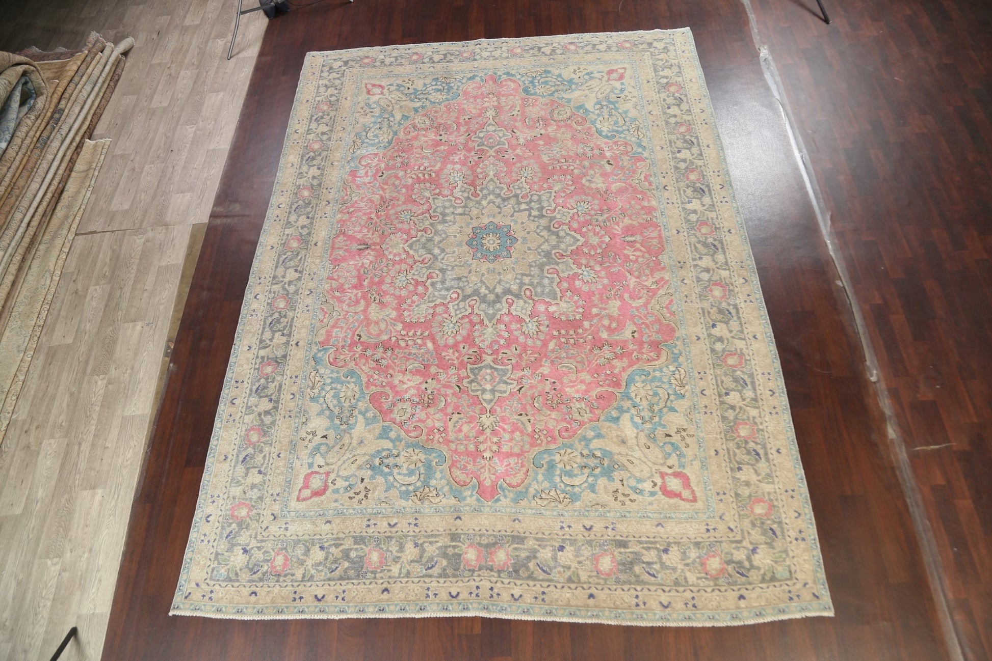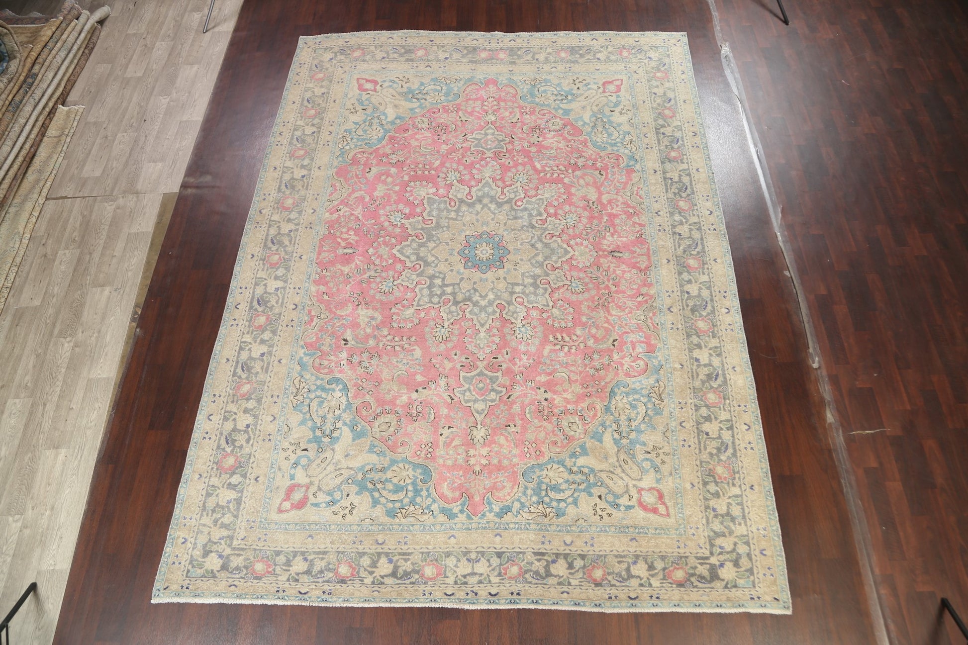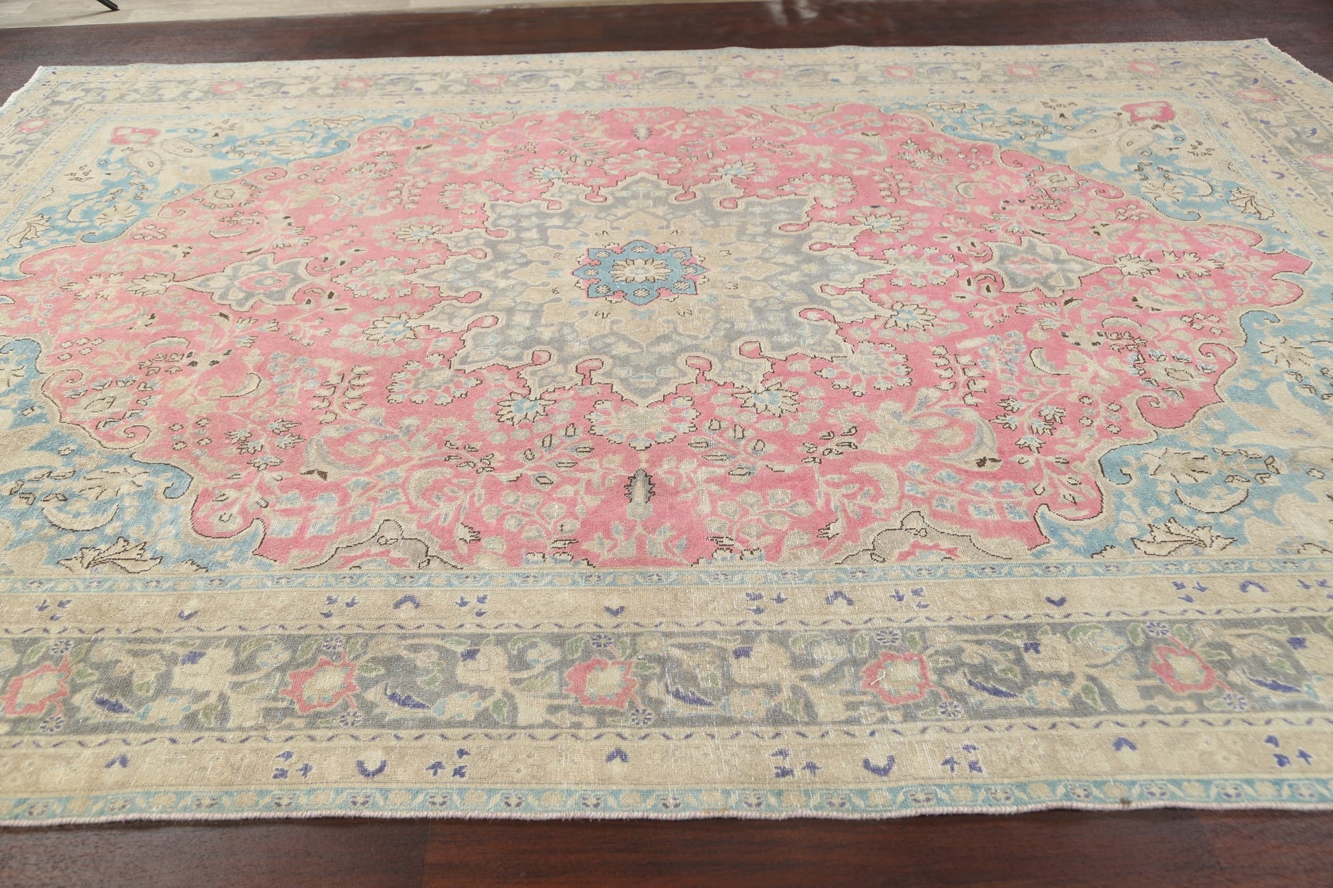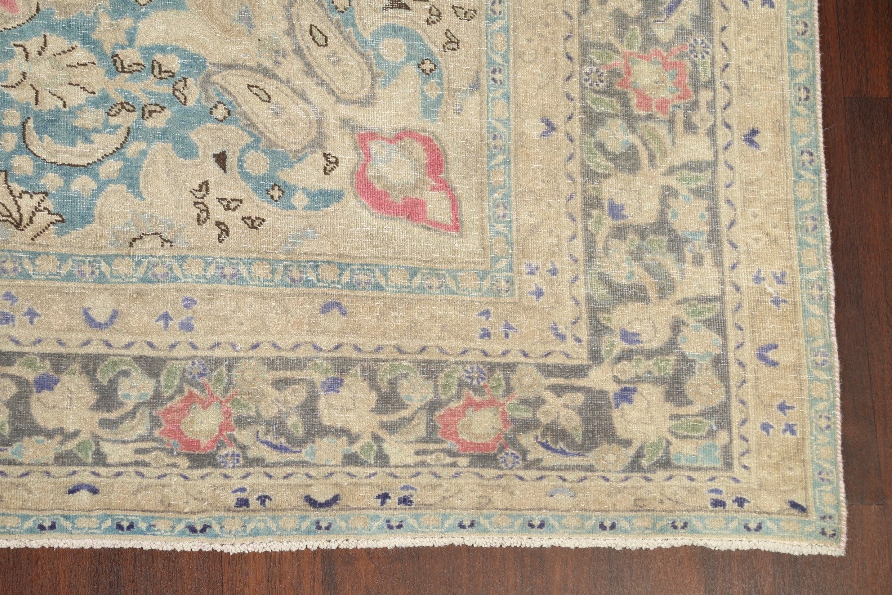 Traditional Distressed Mashad Persian Area Rug 9x13