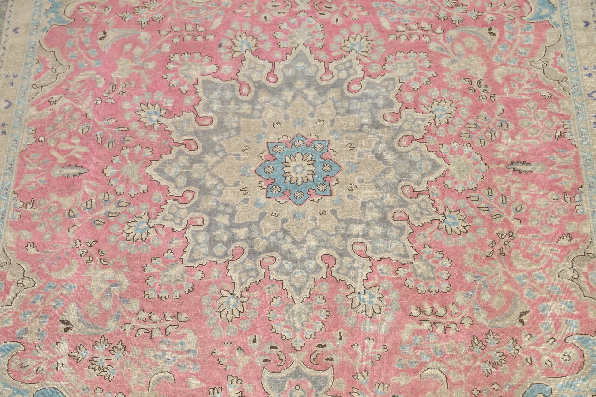 A Beautiful Genuine Persia ( Persia ) Mashad rug is Hand Knotted by skillful weavers in Persia ( Persia ) with 100% Wool Material. This rug is in Very Good (Evenly Low Pile) condition. dimensions are 12' 10'' X 9' 5'' in foot and 391 X 287 in centimeter. the primary color is Pink.