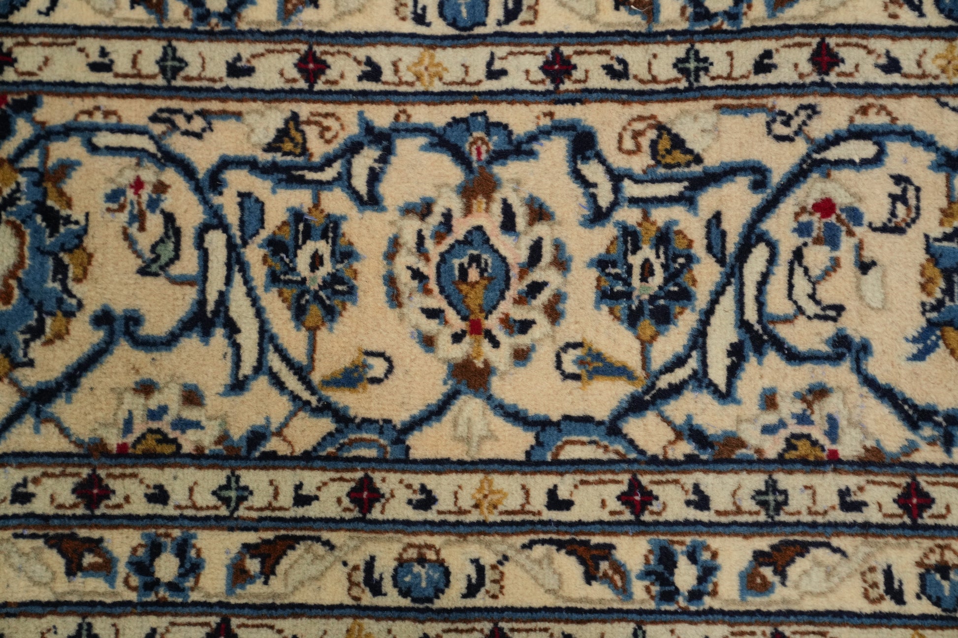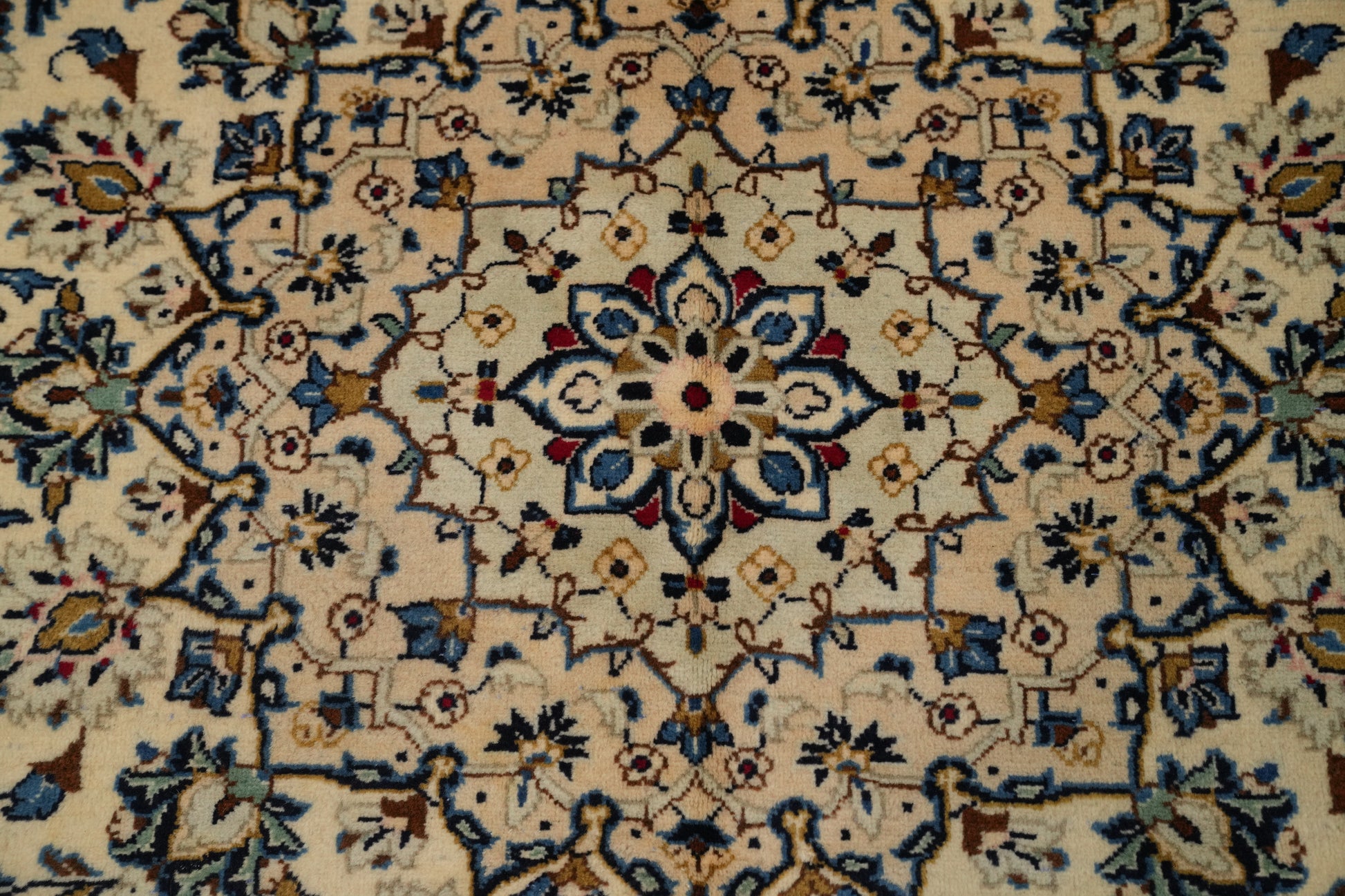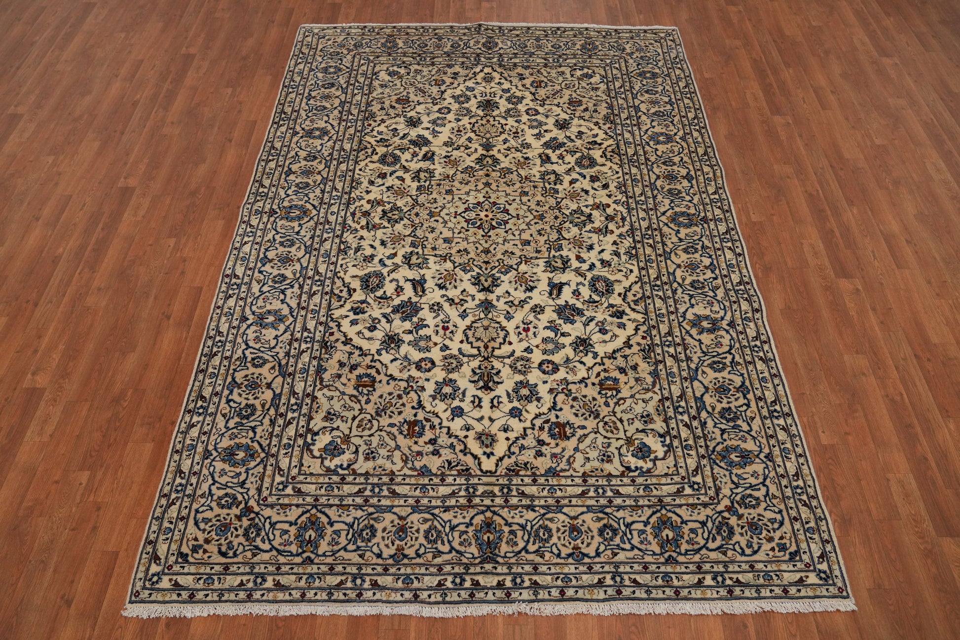 A Beautiful Genuine Persia ( Persia ) Kashan rug is Hand Knotted by skillful weavers in Persia ( Persia ) with 100% Wool Material. This rug is in Very Good condition. dimensions are 9' 8'' X 6' 5'' in foot and 295 X 196 in centimeter. the primary color is Beige & Ivories.