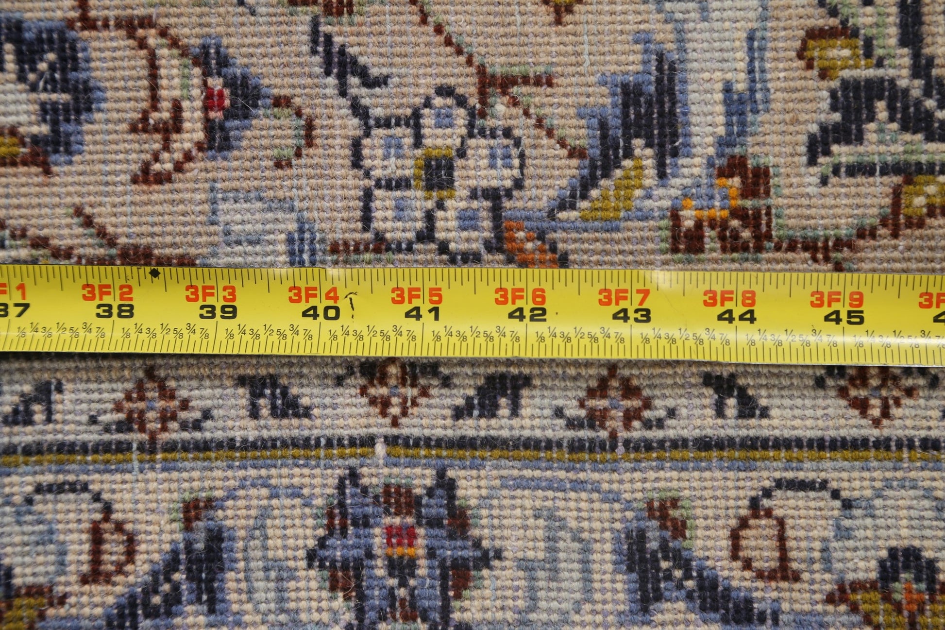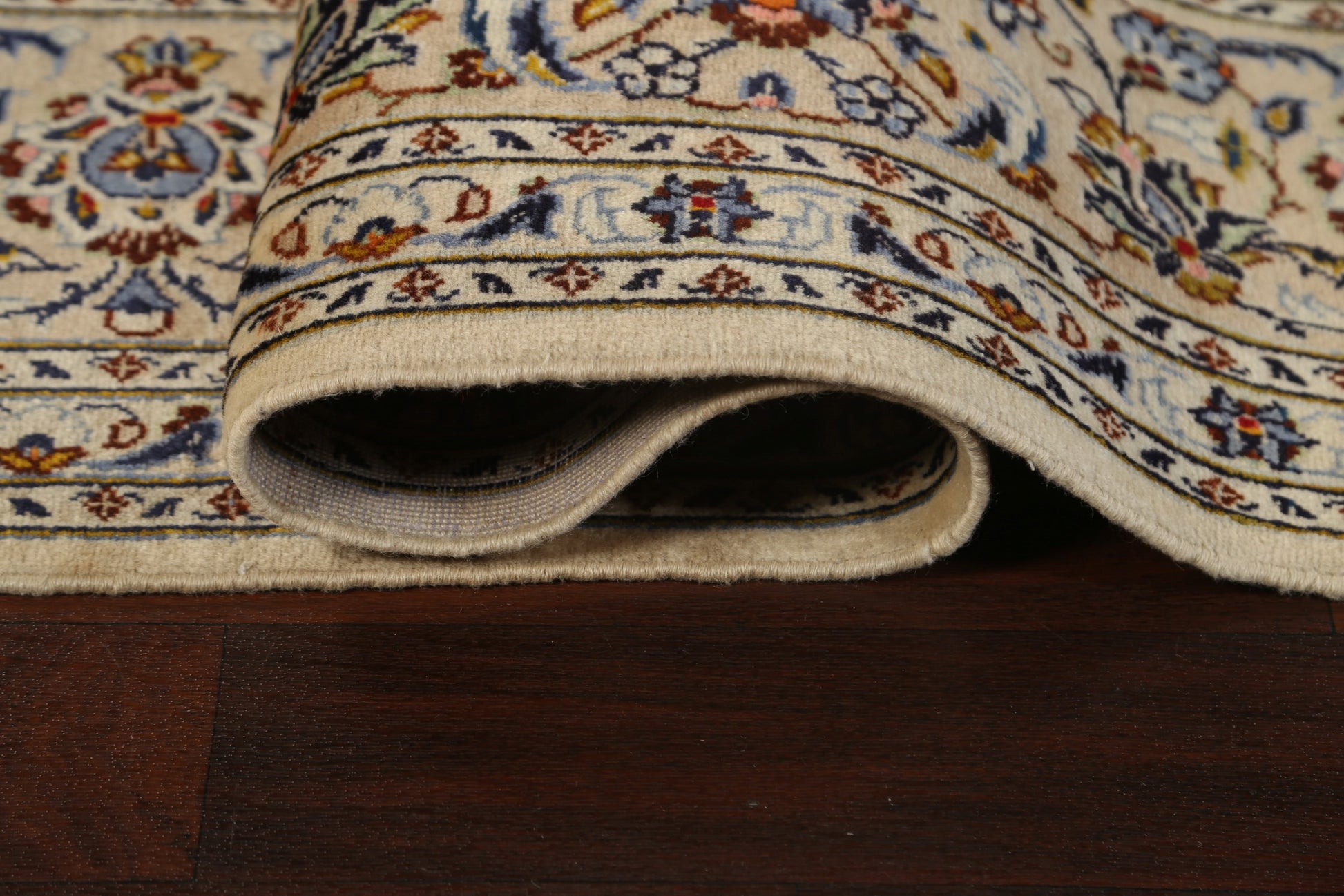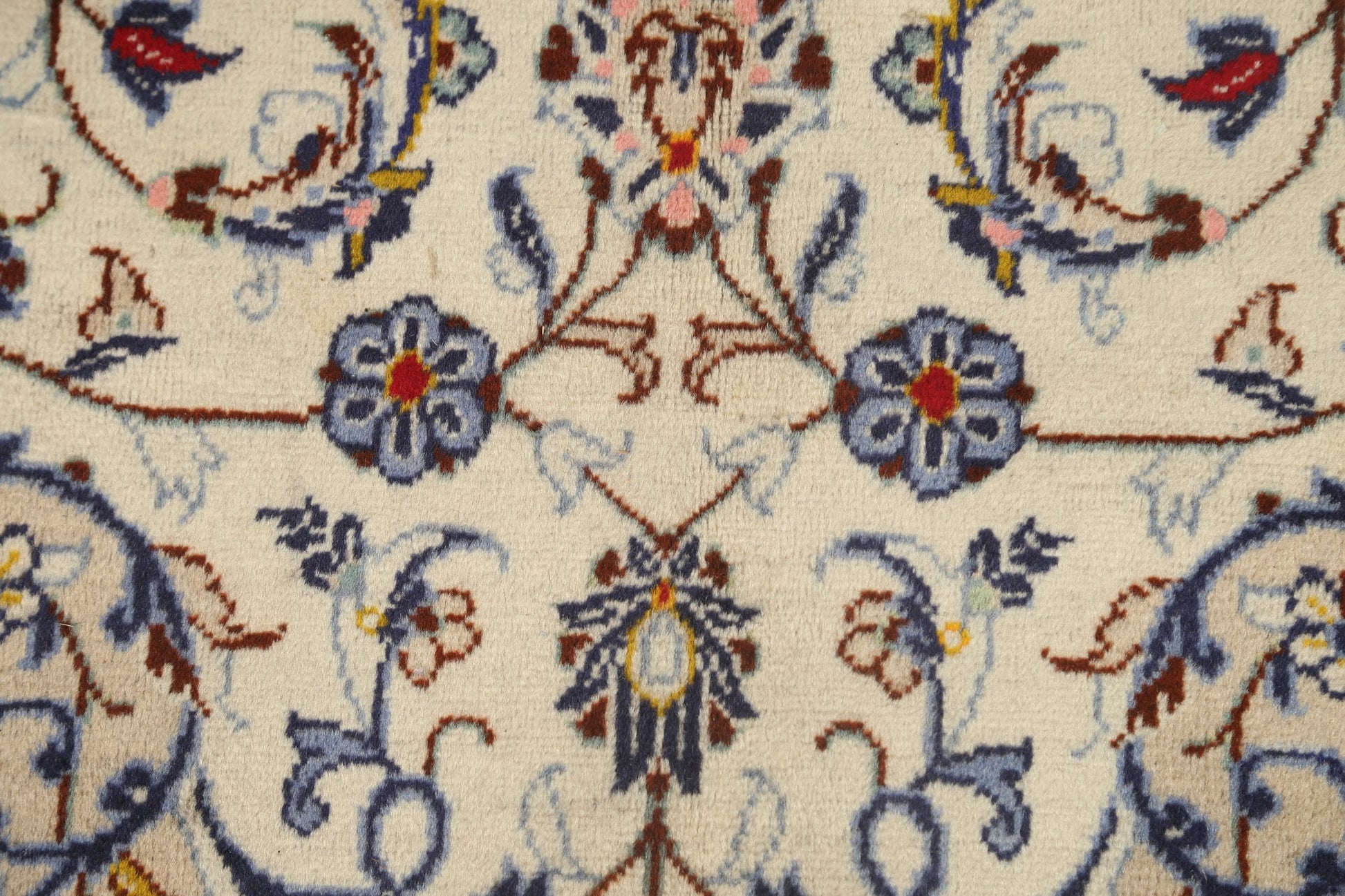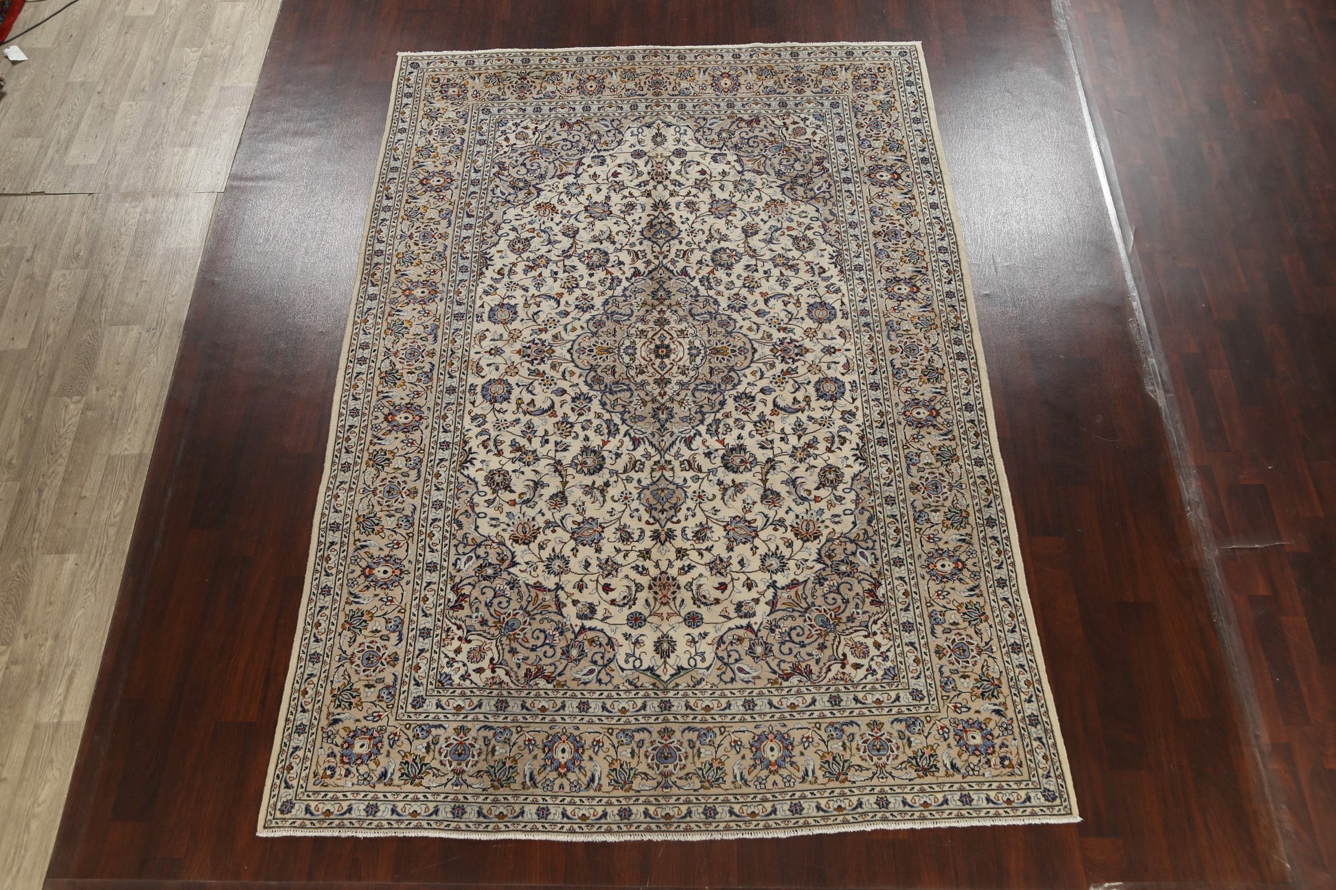 A Beautiful Genuine Persia ( Persia ) Kashan rug is Hand Knotted by skillful weavers in Persia ( Persia ) with 100% Wool Material. This rug is in Very Good ( Low Pile ) condition. dimensions are 11' 7'' X 7' 11'' in foot and 353 X 241 in centimeter. the primary color is Beige & Ivories.