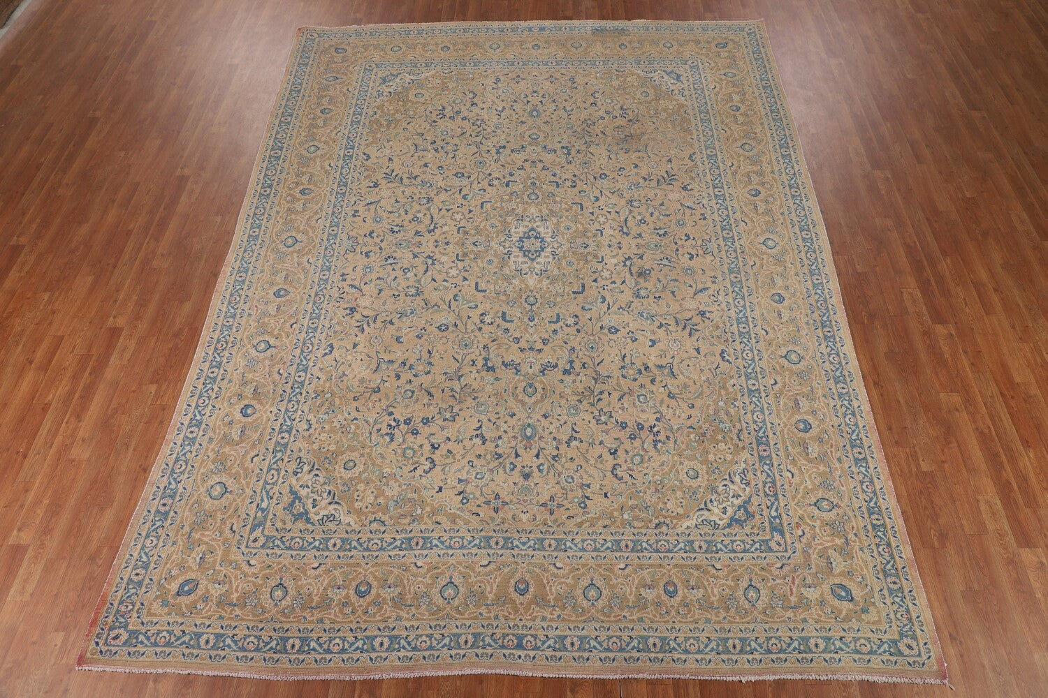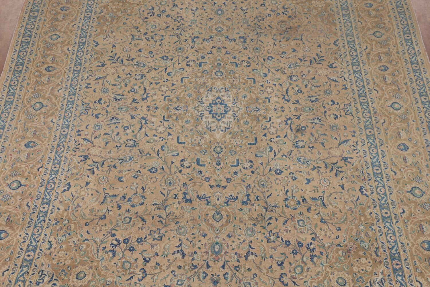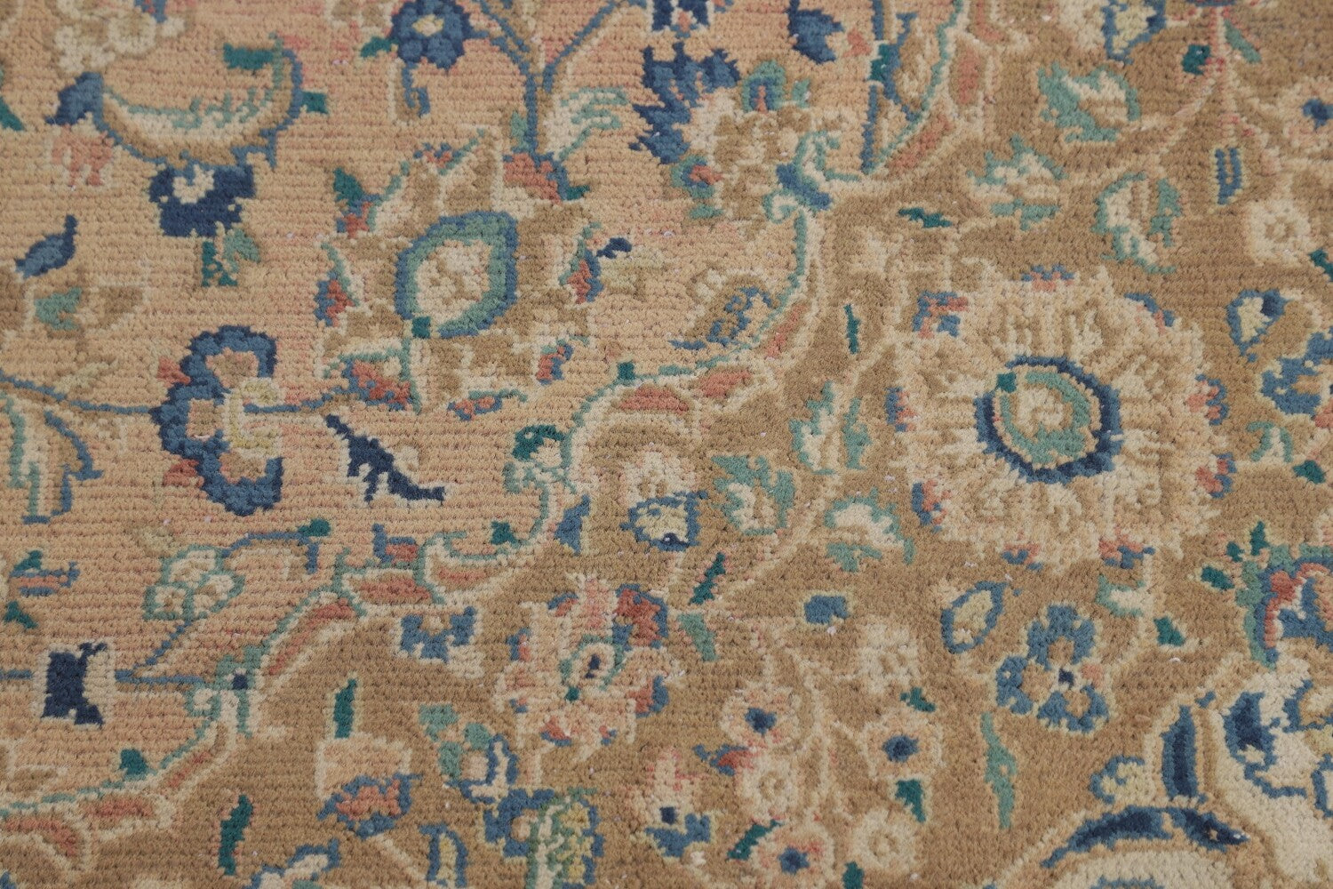 A Beautiful Genuine Persia ( Persia ) Kashan rug is Hand Knotted by skillful weavers in Persia ( Persia ) with 100% Wool Material. This rug is in Very Good ( Evenly Low Pile-Repair) condition. dimensions are 12' 6'' X 9' 3'' in foot and 381 X 282 in centimeter. the primary color is Peach.
