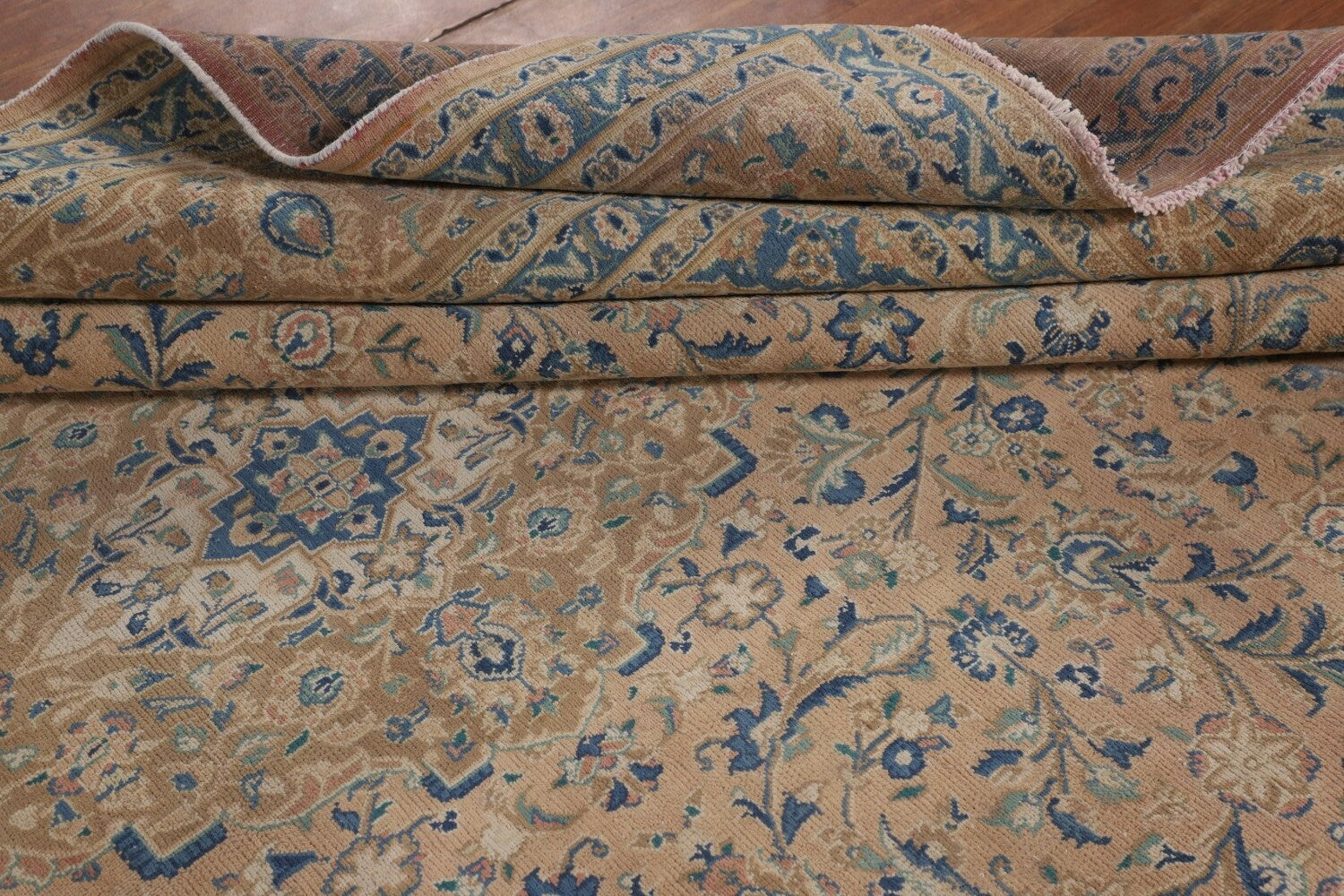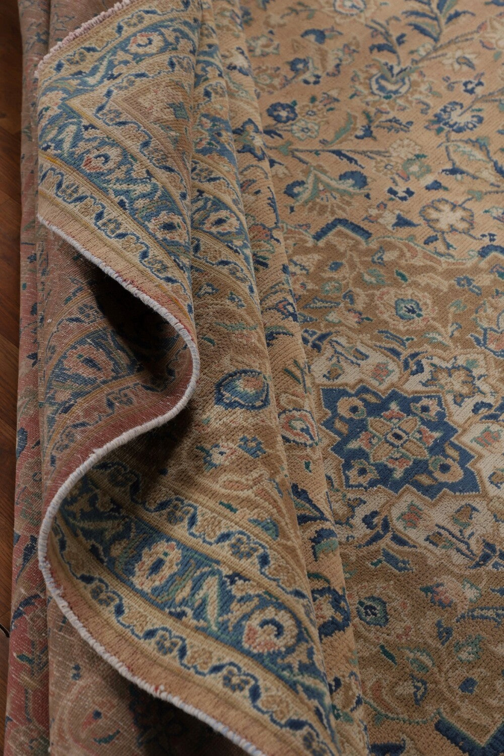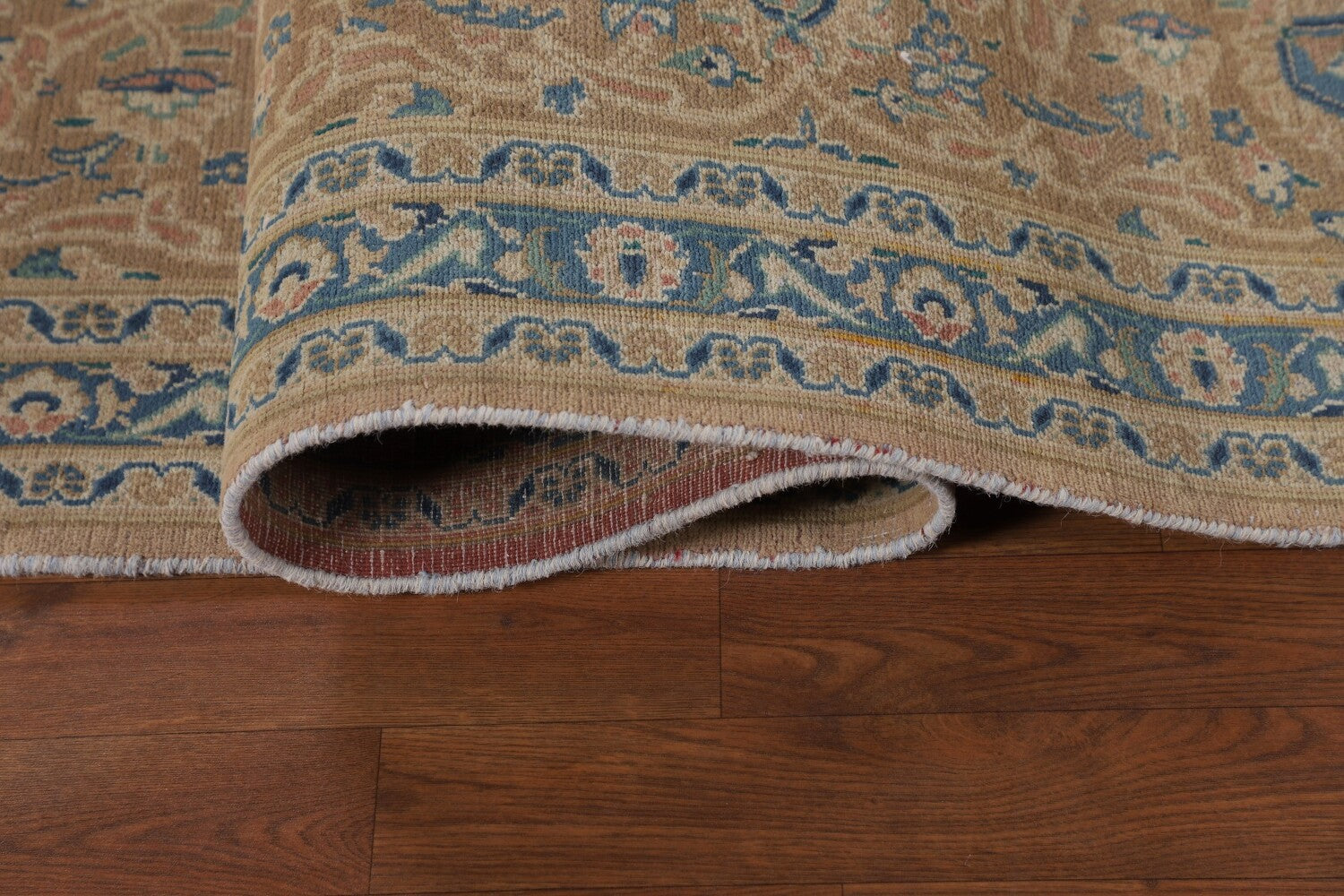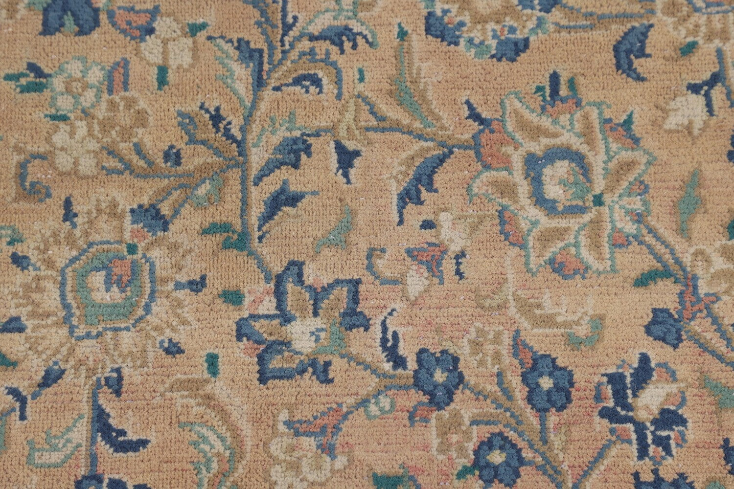 A Beautiful Genuine Persia ( Persia ) Kashan rug is Hand Knotted by skillful weavers in Persia ( Persia ) with 100% Wool Material. This rug is in Very Good ( Evenly Low Pile-Repair) condition. dimensions are 12' 6'' X 9' 3'' in foot and 381 X 282 in centimeter. the primary color is Peach.