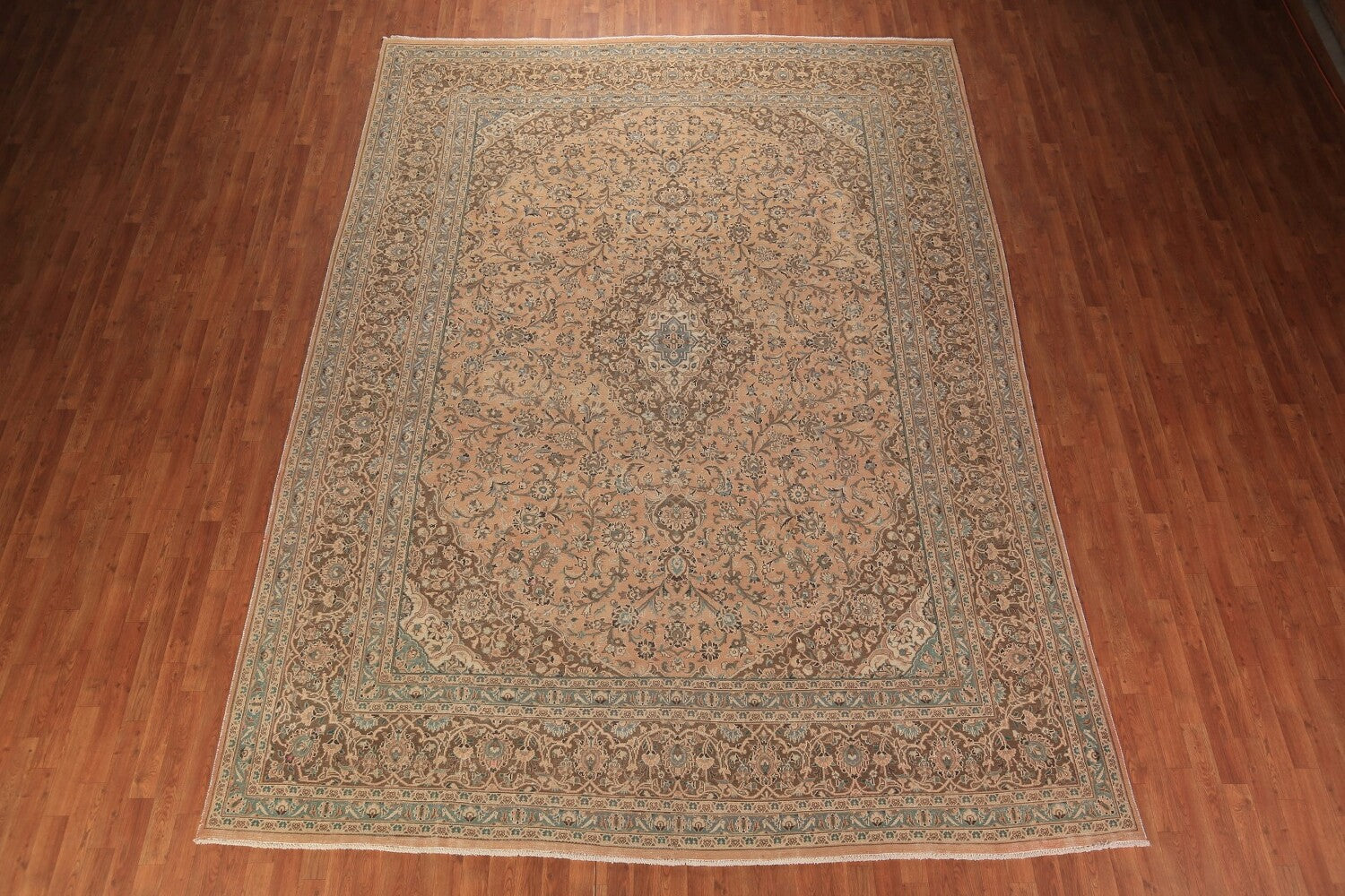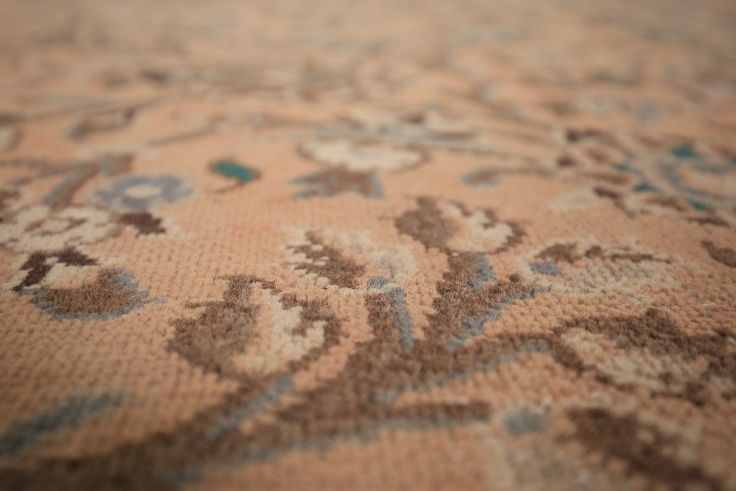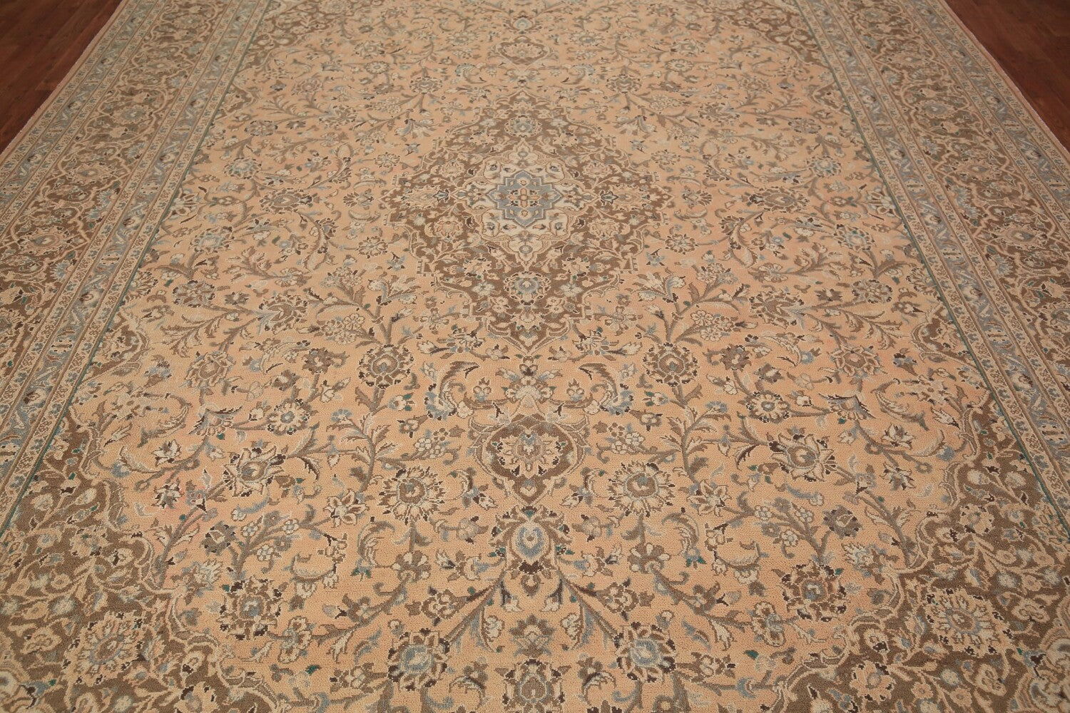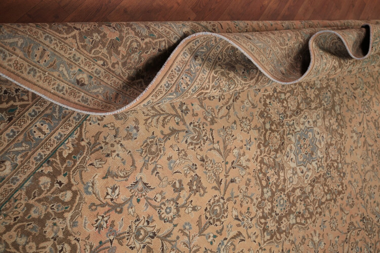 A Beautiful Genuine Persia ( Persia ) Mashad rug is Hand Knotted by skillful weavers in Persia ( Persia ) with 100% Wool Material. This rug is in Very Good (Evenly Low Pile) condition. dimensions are 13' 1'' X 9' 8'' in foot and 399 X 295 in centimeter. the primary color is Peach.