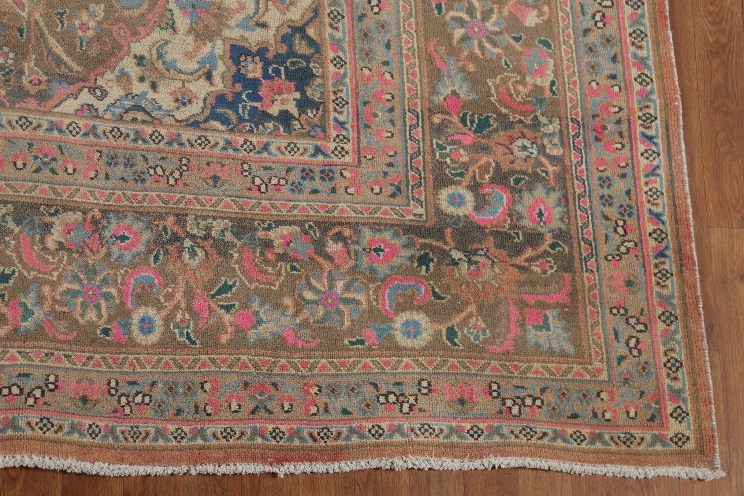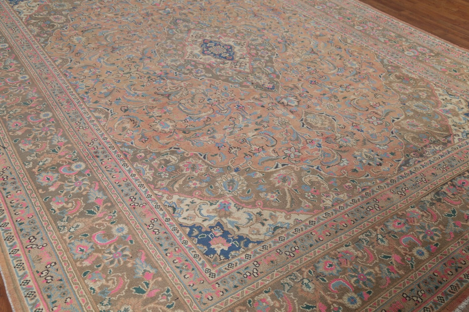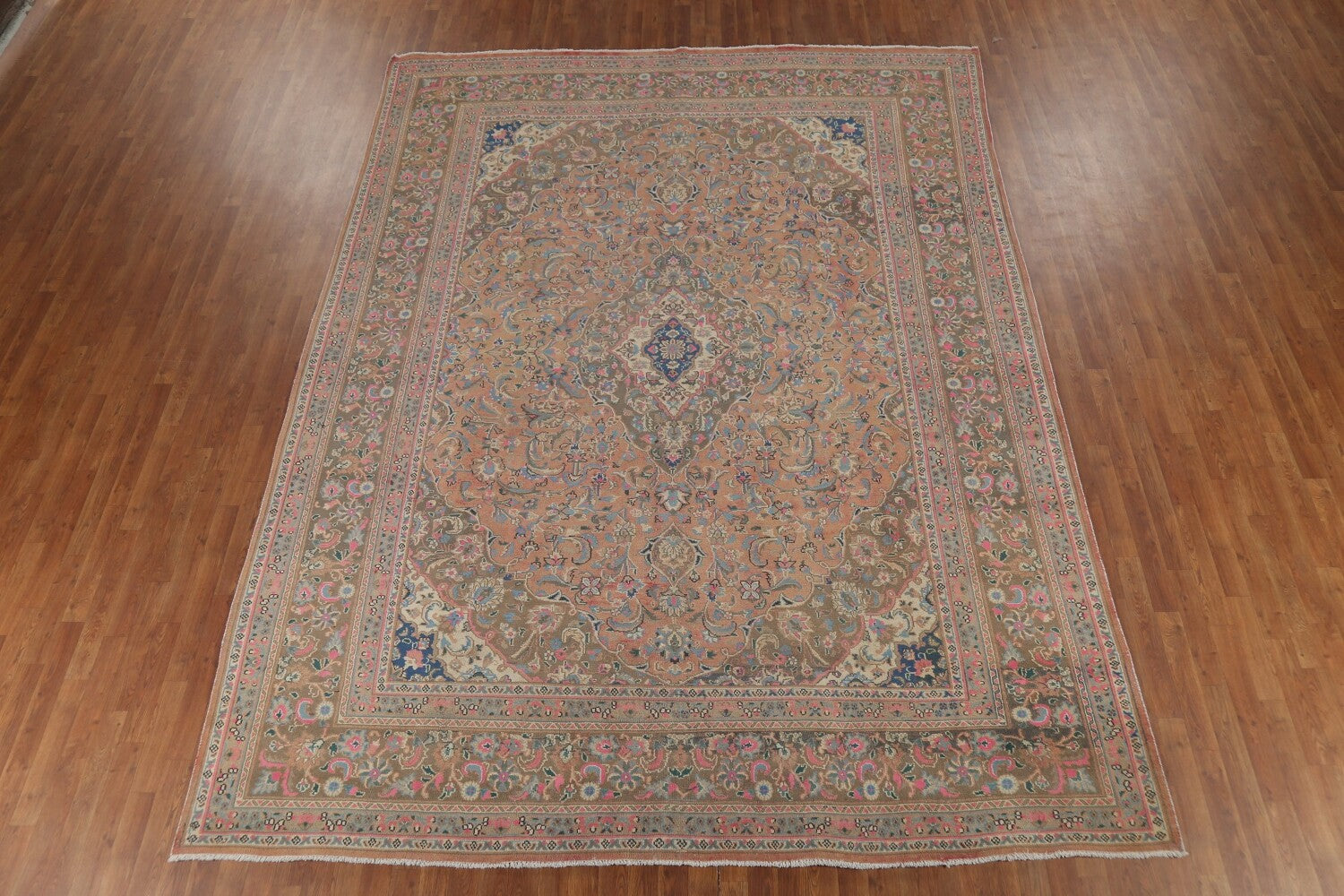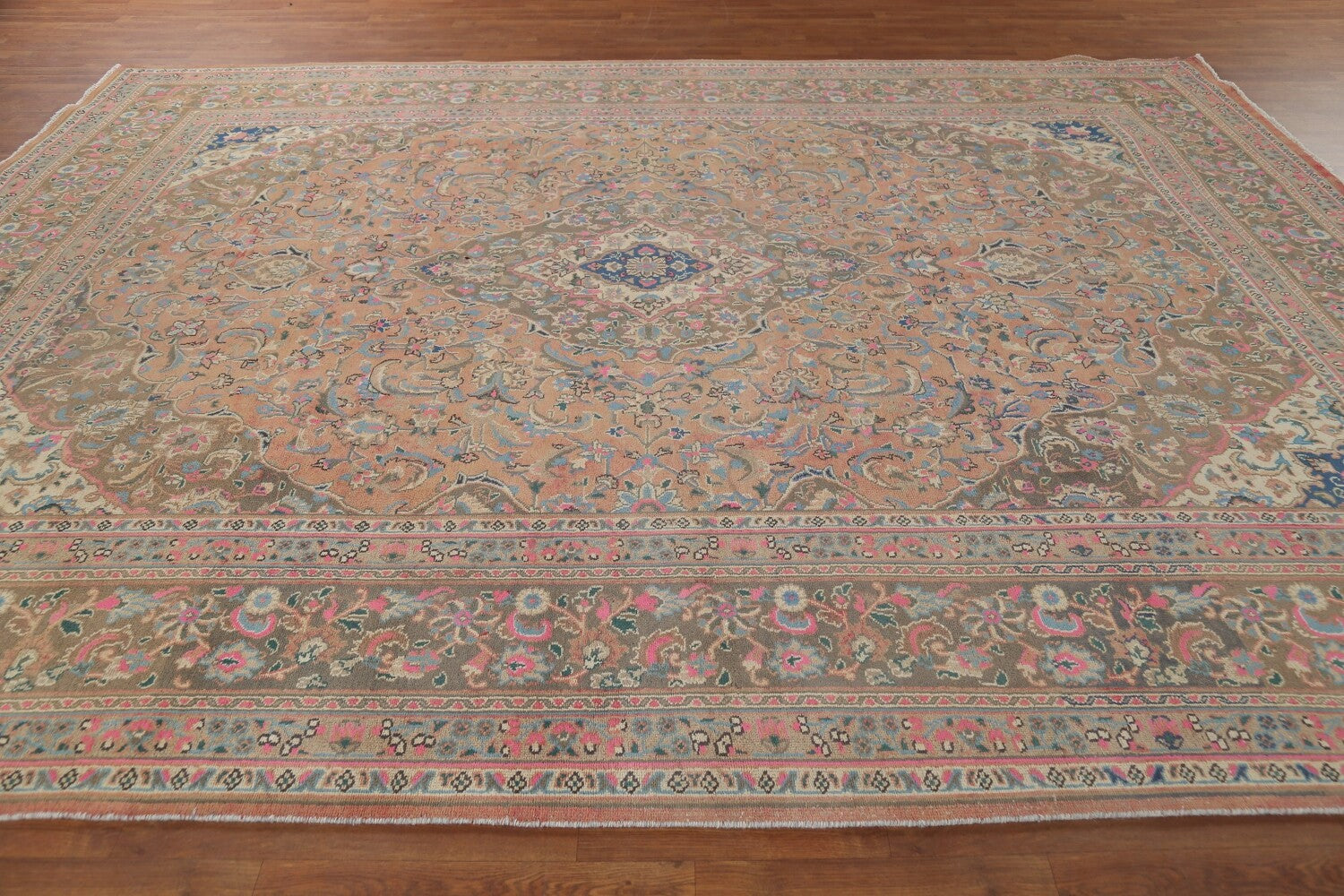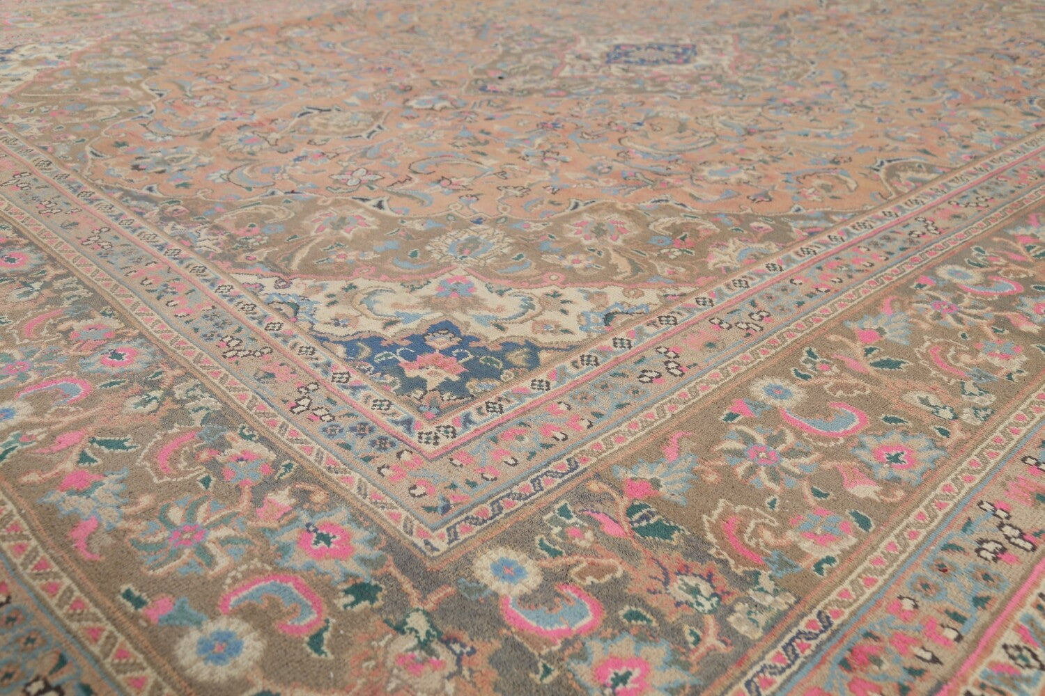 A Beautiful Genuine Persia ( Persia ) Mashad rug is Hand Knotted by skillful weavers in Persia ( Persia ) with 100% Wool Material. This rug is in Very Good (Evenly Low Pile) condition. dimensions are 12' 5'' X 9' 5'' in foot and 378 X 287 in centimeter. the primary color is Coral.