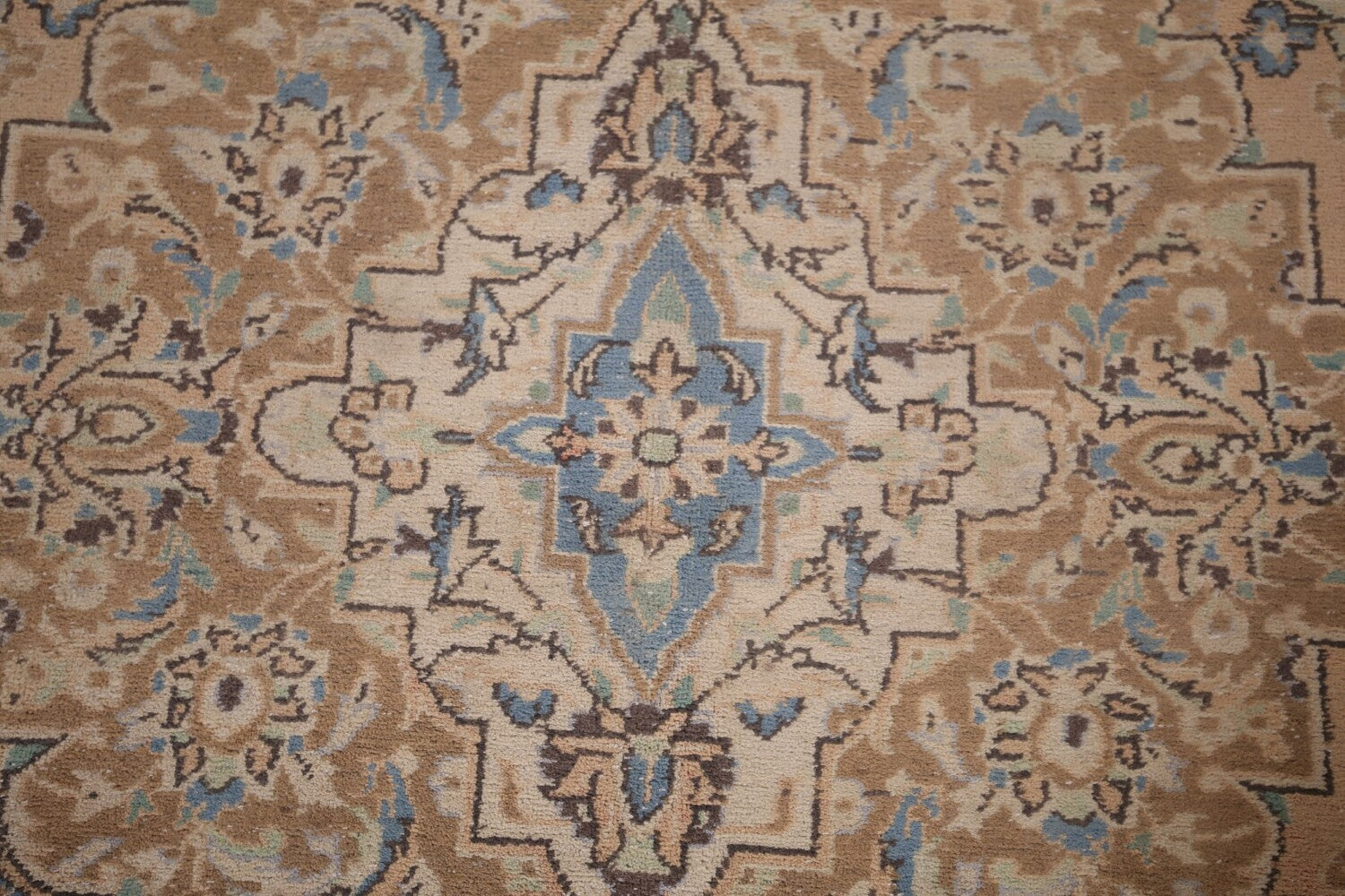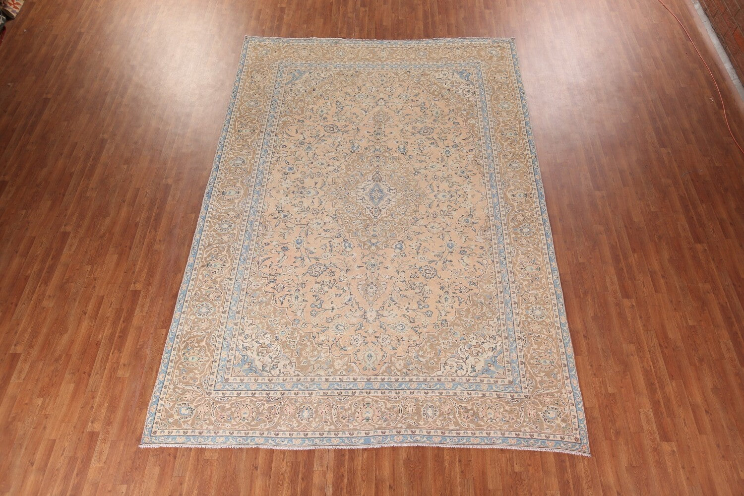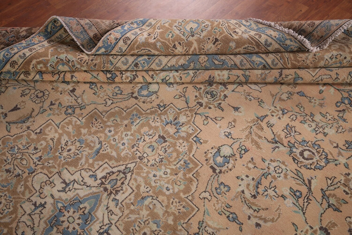 A Beautiful Genuine Persia ( Persia ) Mashad rug is Hand Knotted by skillful weavers in Persia ( Persia ) with 100% Wool Material. This rug is in Very Good (Evenly Low Pile) condition. dimensions are 13' 1'' X 9' 1'' in foot and 399 X 277 in centimeter. the primary color is Peach.