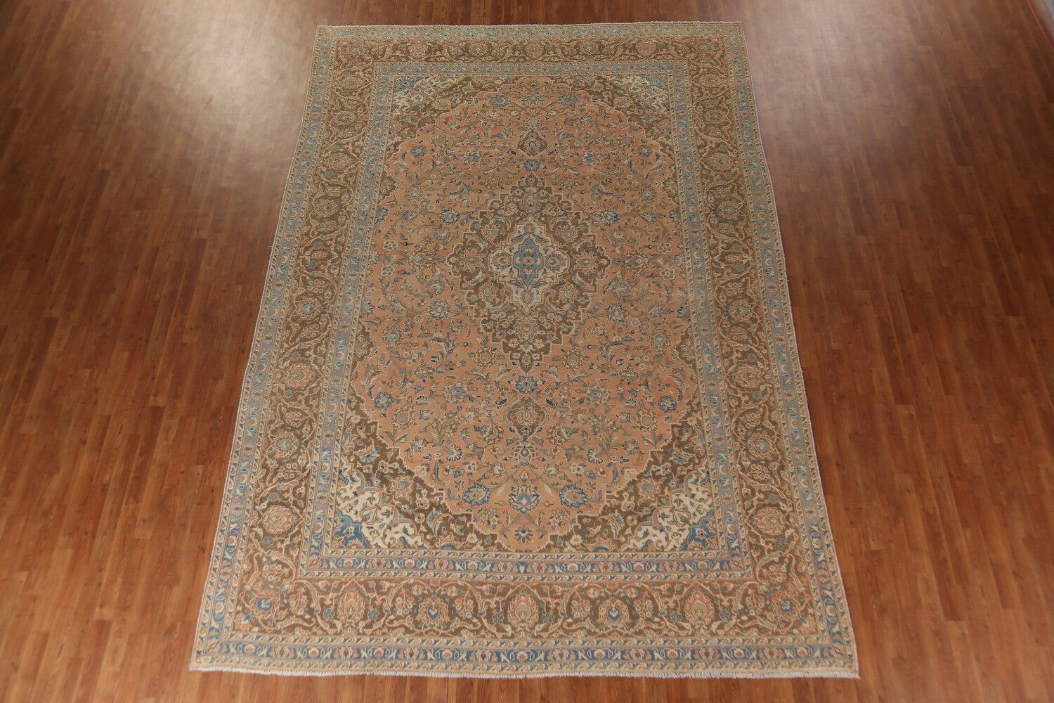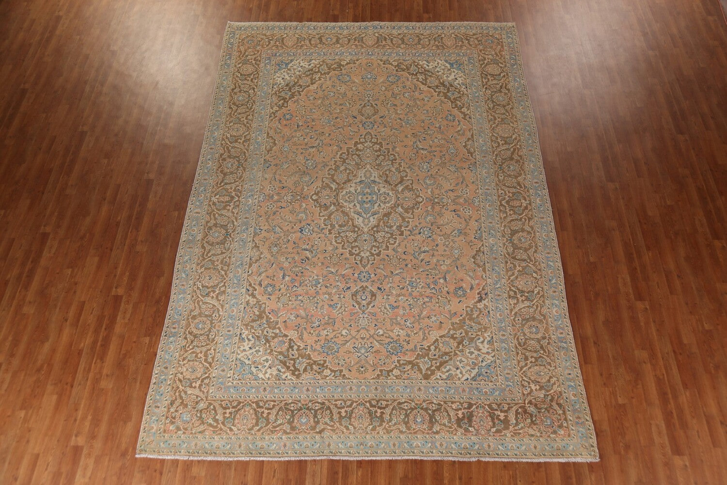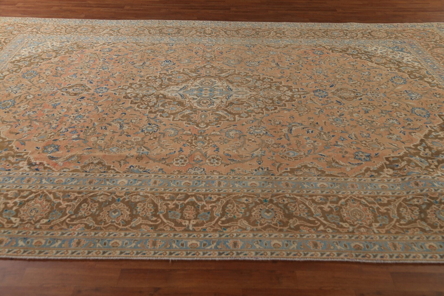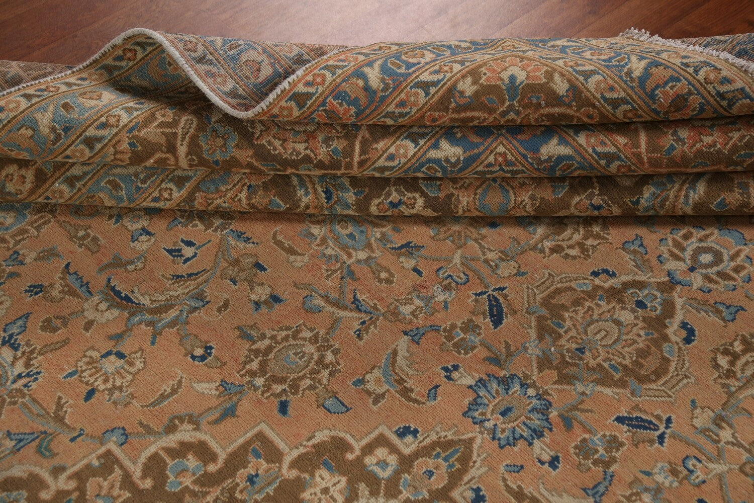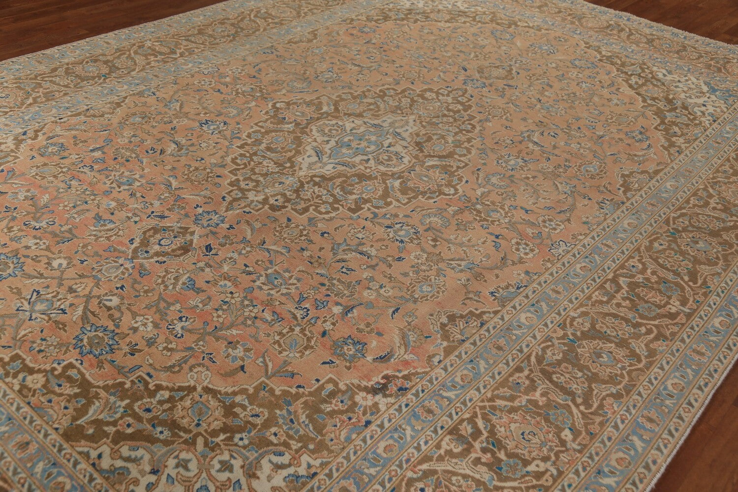 A Beautiful Genuine Persia ( Persia ) Mashad rug is Hand Knotted by skillful weavers in Persia ( Persia ) with 100% Wool Material. This rug is in Very Good (Evenly Low Pile) condition. dimensions are 12' 9'' X 8' 10'' in foot and 389 X 269 in centimeter. the primary color is Oranges & Rust.