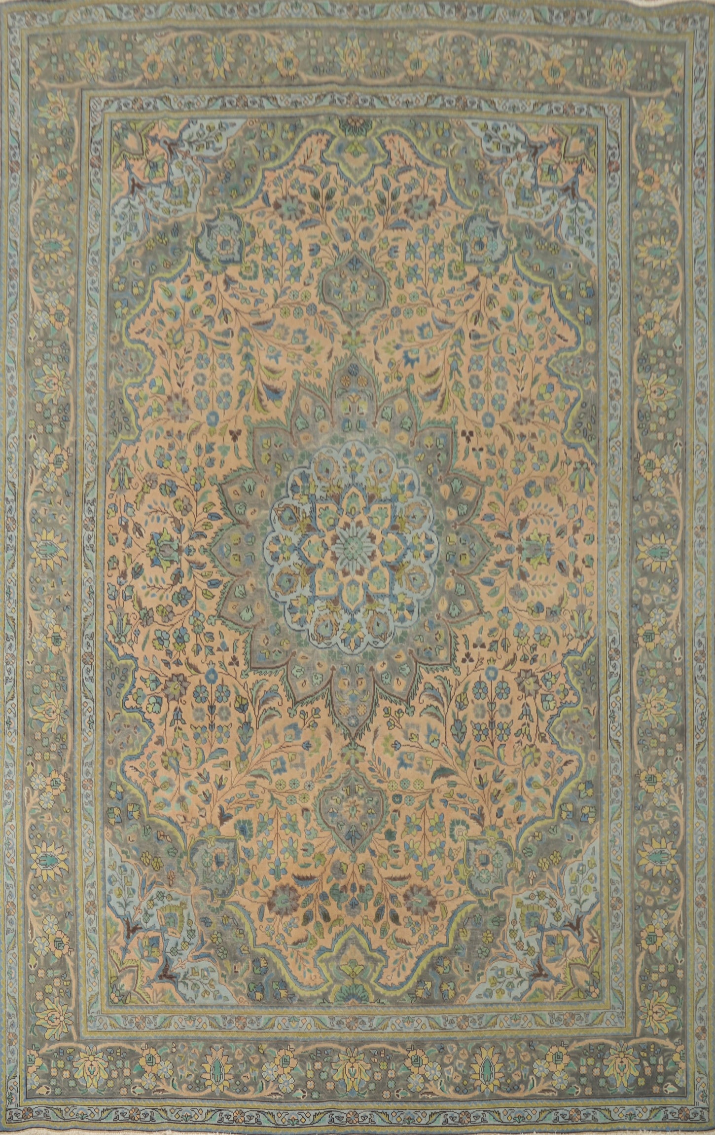 A Beautiful Genuine Persia ( Persia ) Tabriz rug is Hand Knotted by skillful weavers in Persia ( Persia ) with 100% Wool Material. This rug is in Very Good (Evenly Low Pile) condition. dimensions are 11' 8'' X 8' 11'' in foot and 356 X 272 in centimeter. the primary color is Peach.