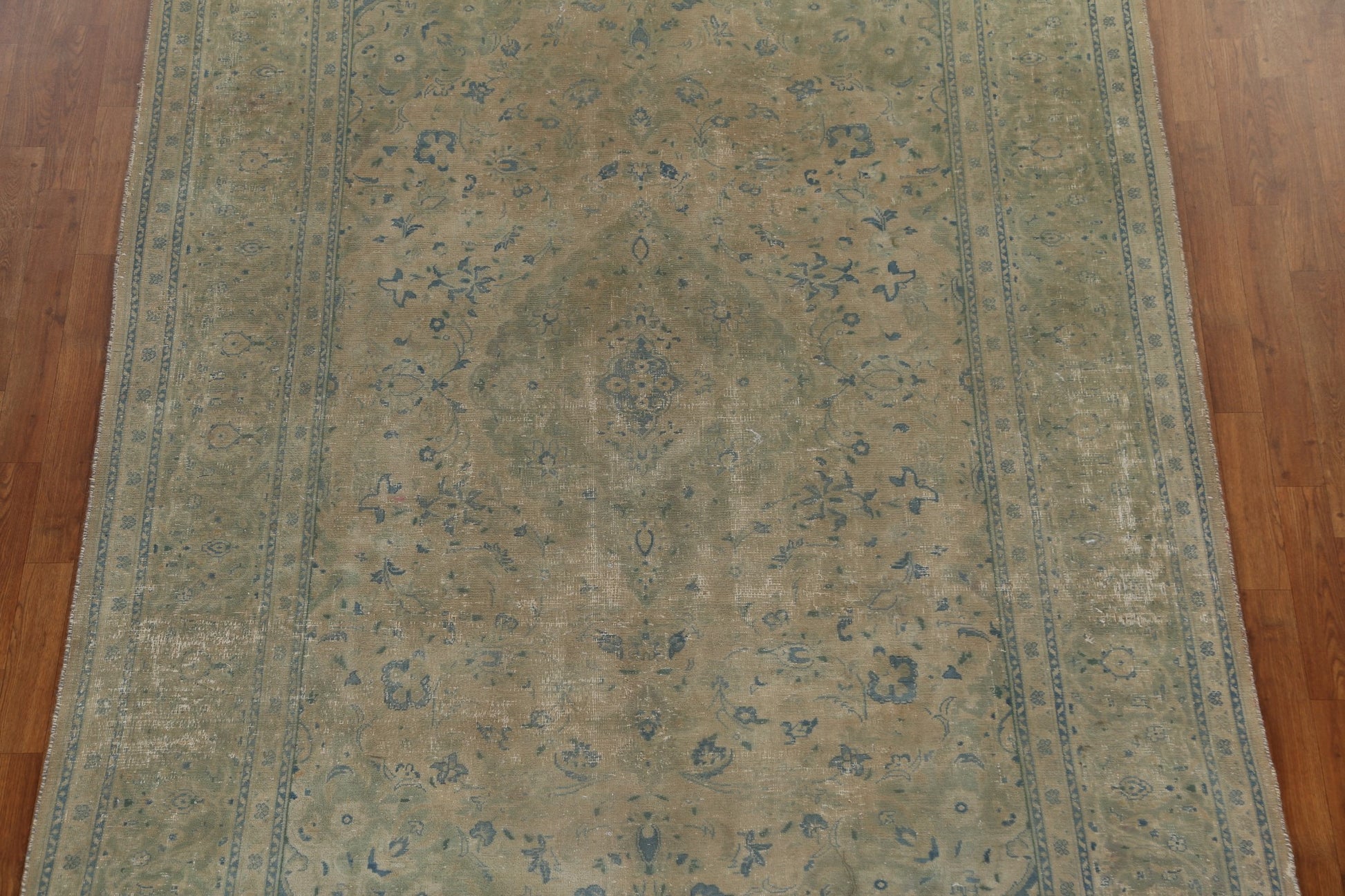 A Beautiful Genuine Persia ( Persia ) Mashad rug is Hand Knotted by skillful weavers in Persia ( Persia ) with 100% Wool Material. This rug is in Good (Evenly Low Pile) condition. dimensions are 9' 4'' X 6' 5'' in foot and 284 X 196 in centimeter. the primary color is Beige & Ivories.