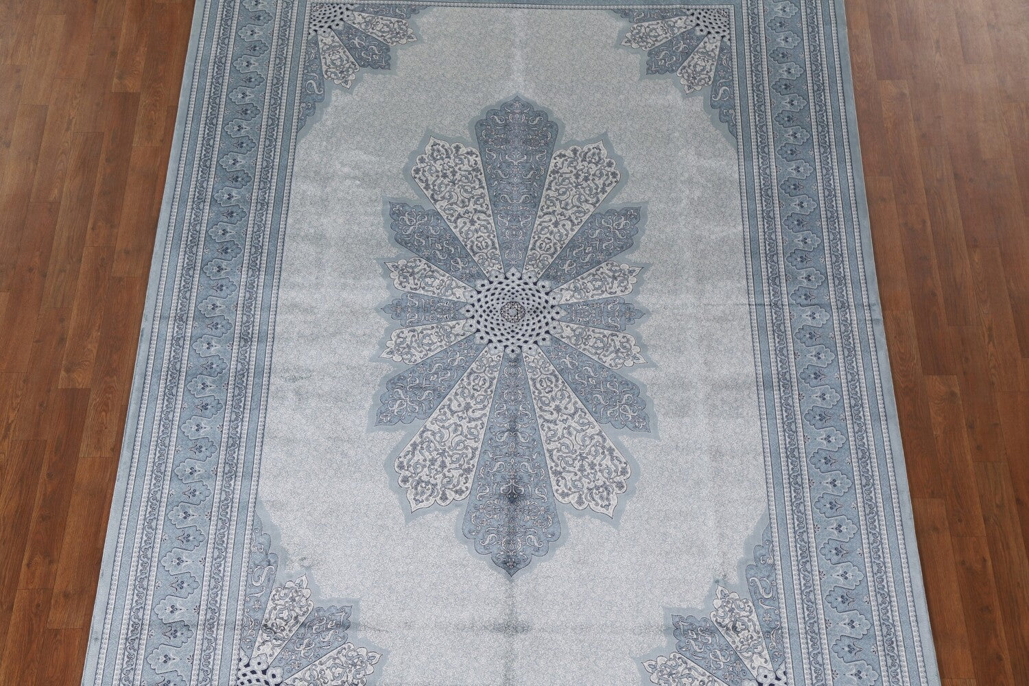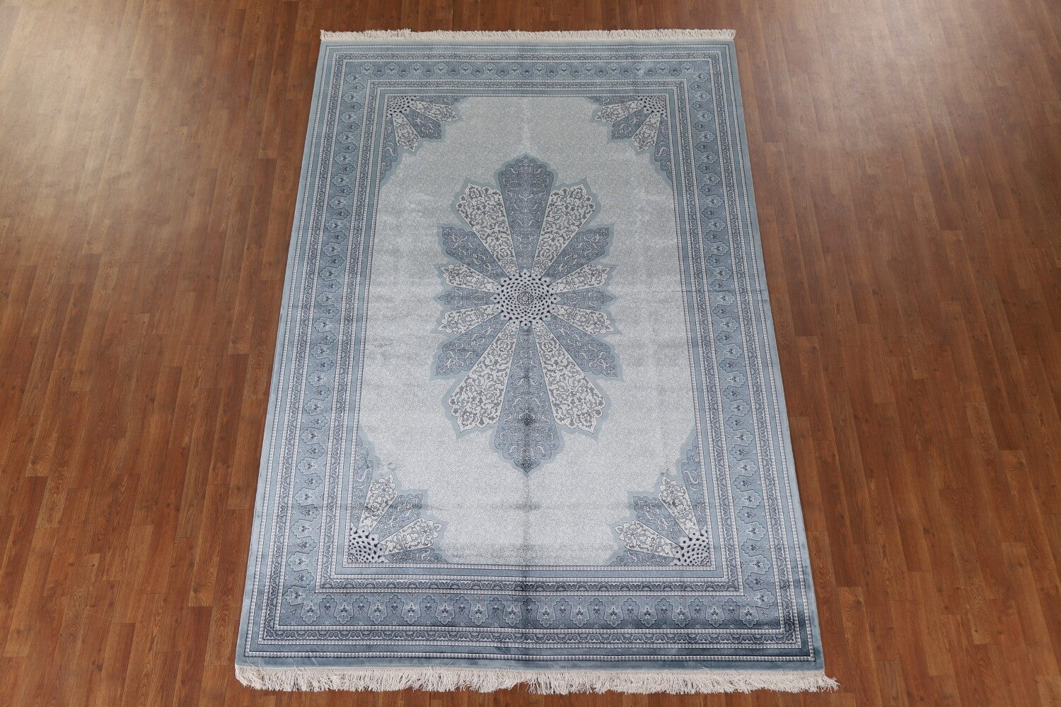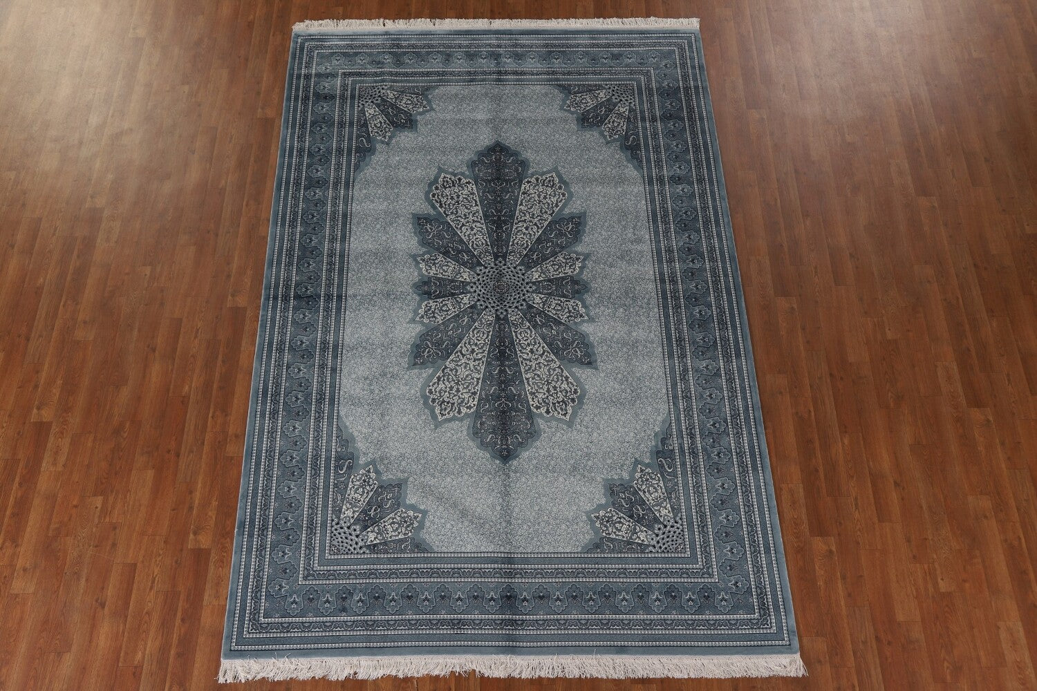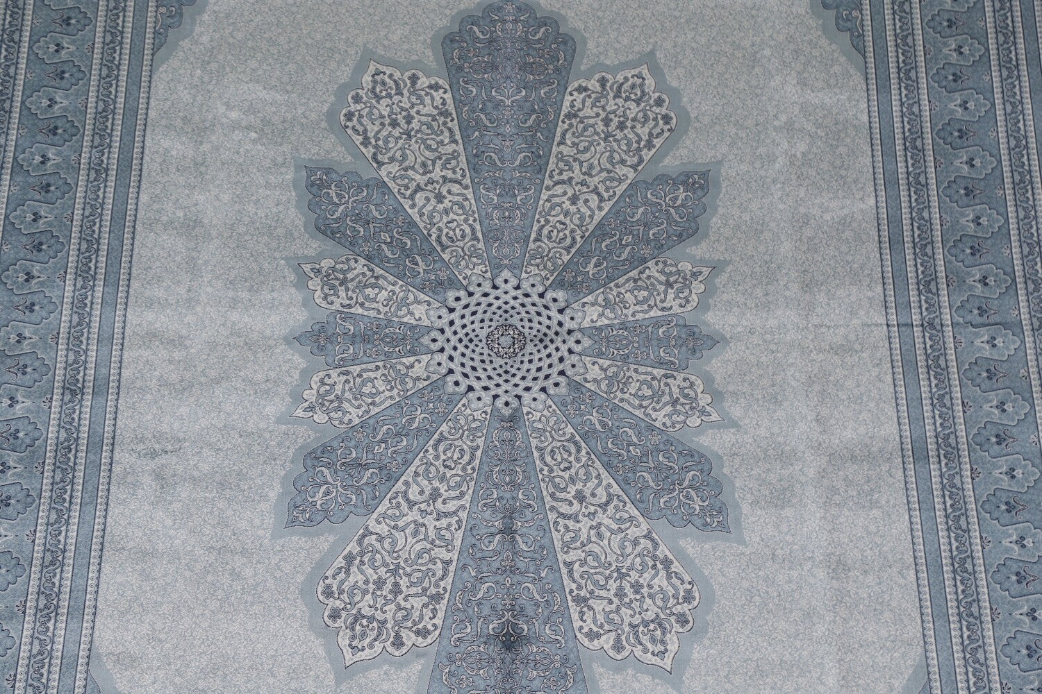 A Beautiful Genuine Turkey Hereke rug is Machine Made by skillful weavers in Turkey with 90% Silk - 10% Polyester Material. This rug is in New, First Quality condition. dimensions are 9' 7'' X 6' 5'' in foot and 292 X 196 in centimeter. the primary color is Greys & Charcoal.