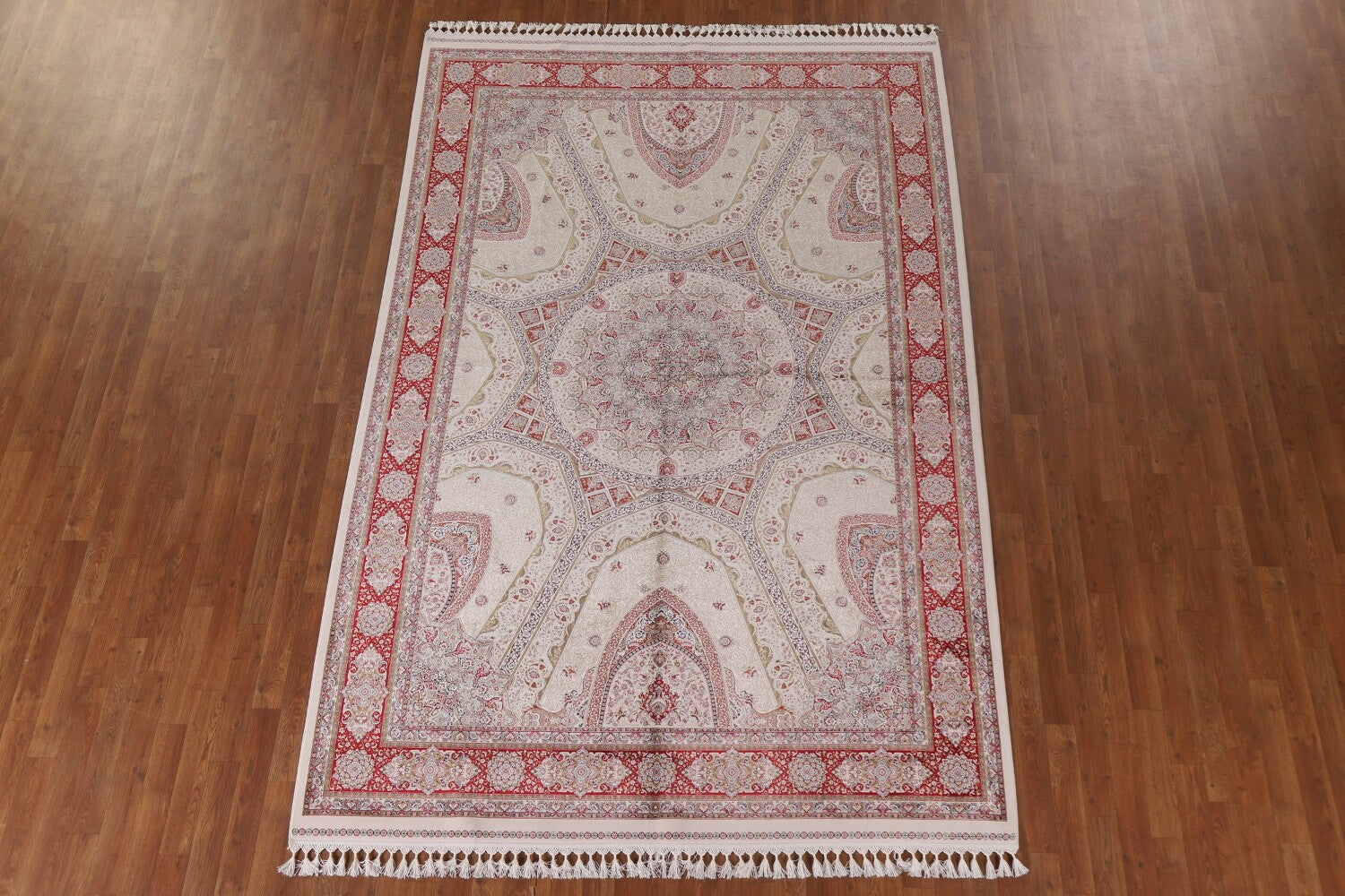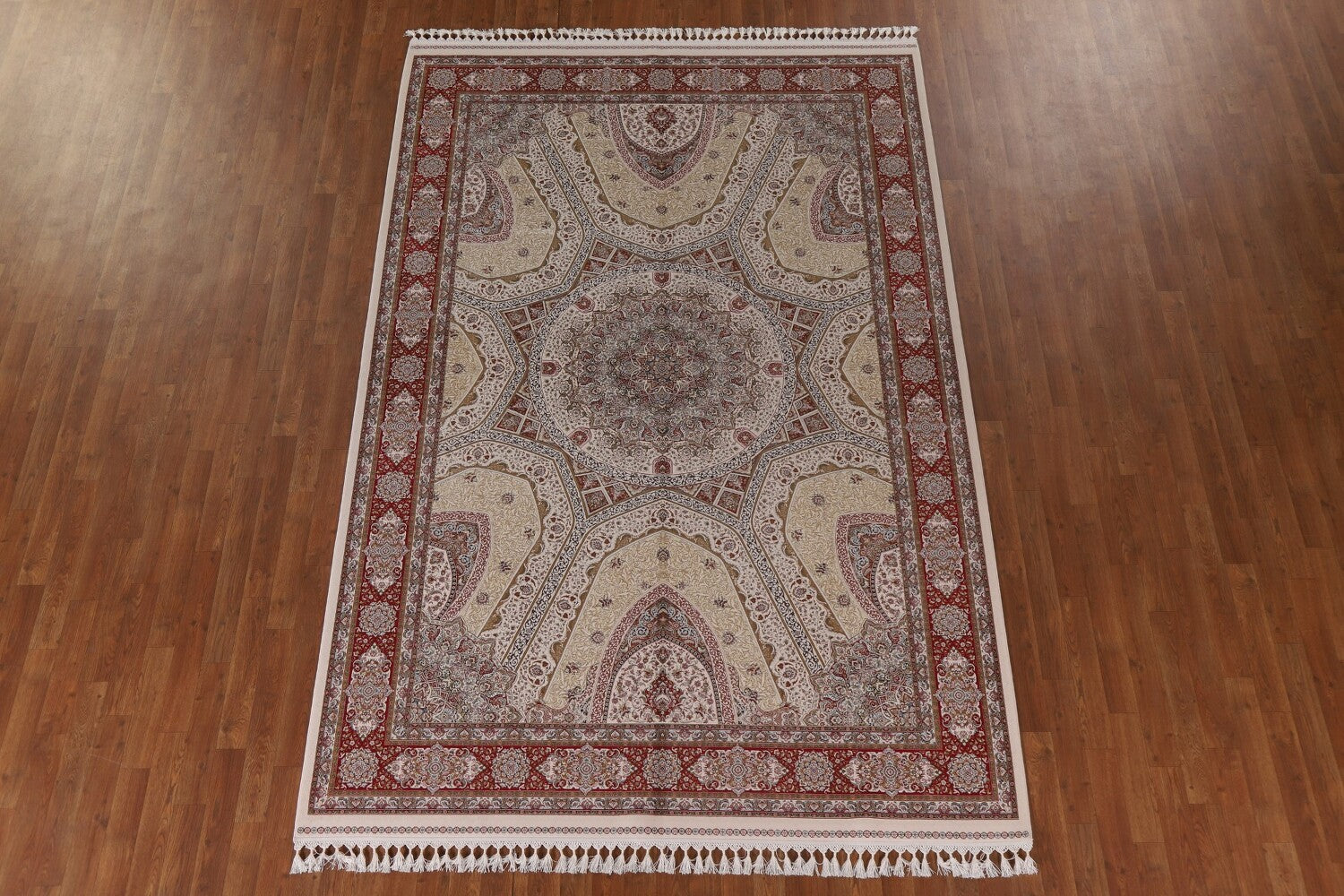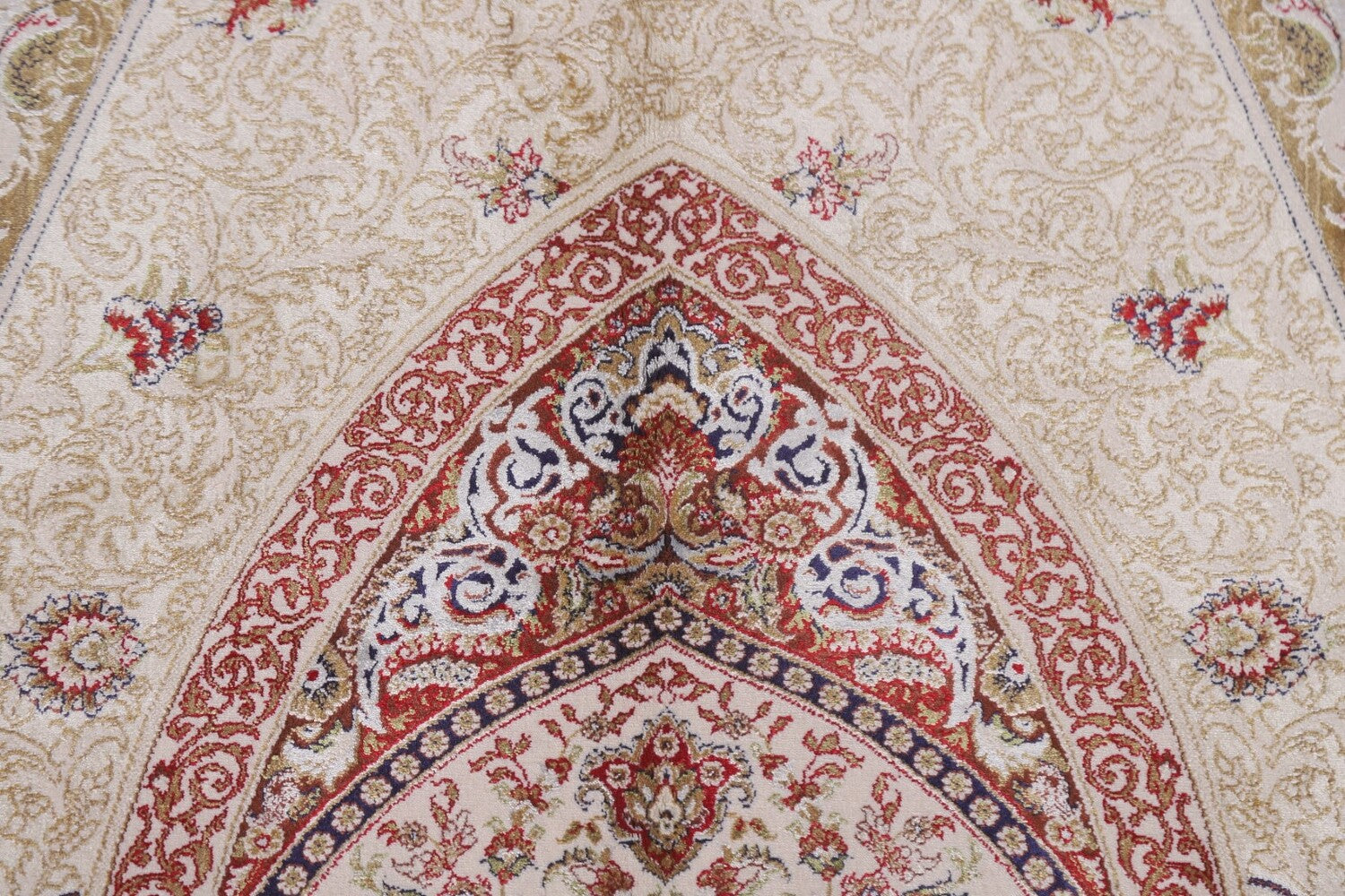 Traditional Ivory Qum Turkish Area Rug 6x10