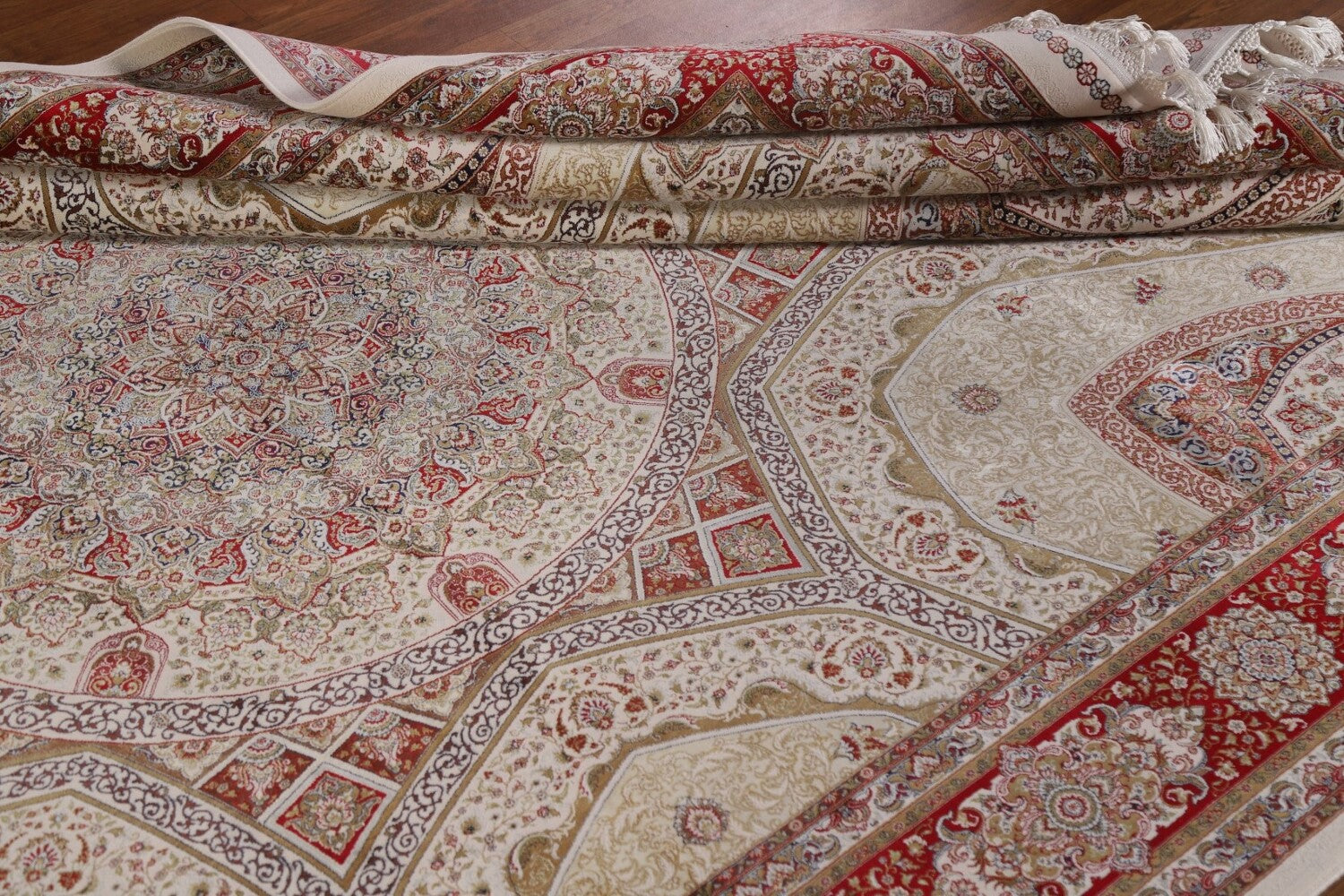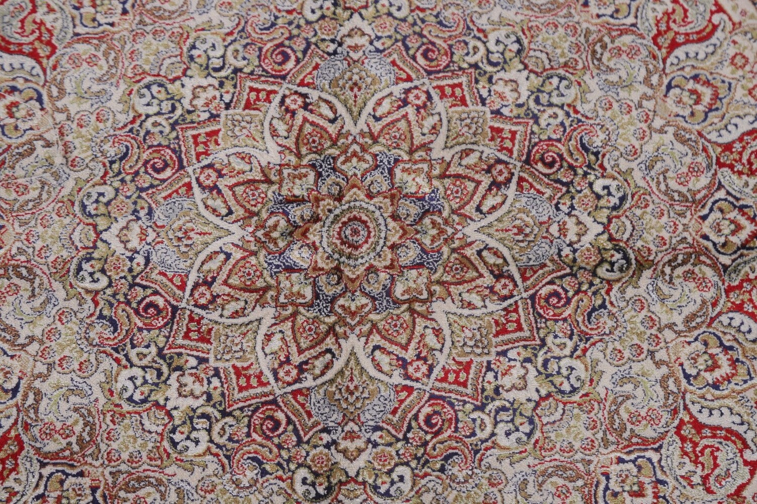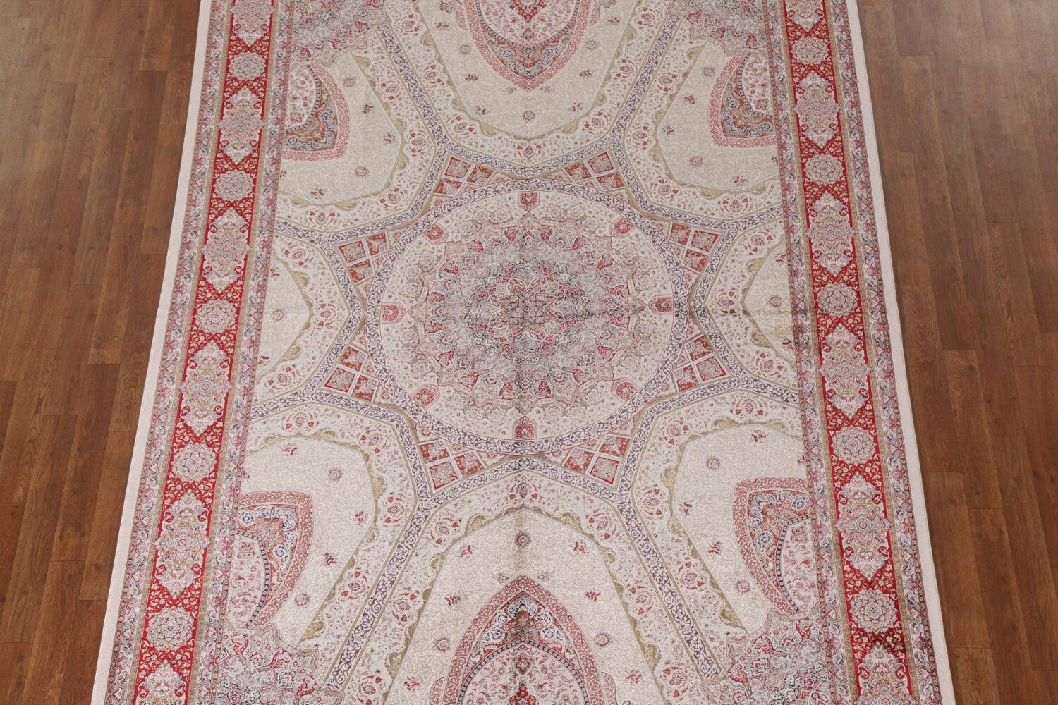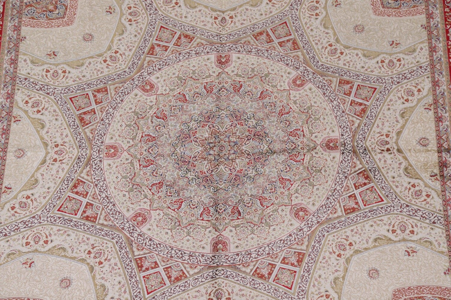 Traditional Ivory Qum Turkish Area Rug 6x10