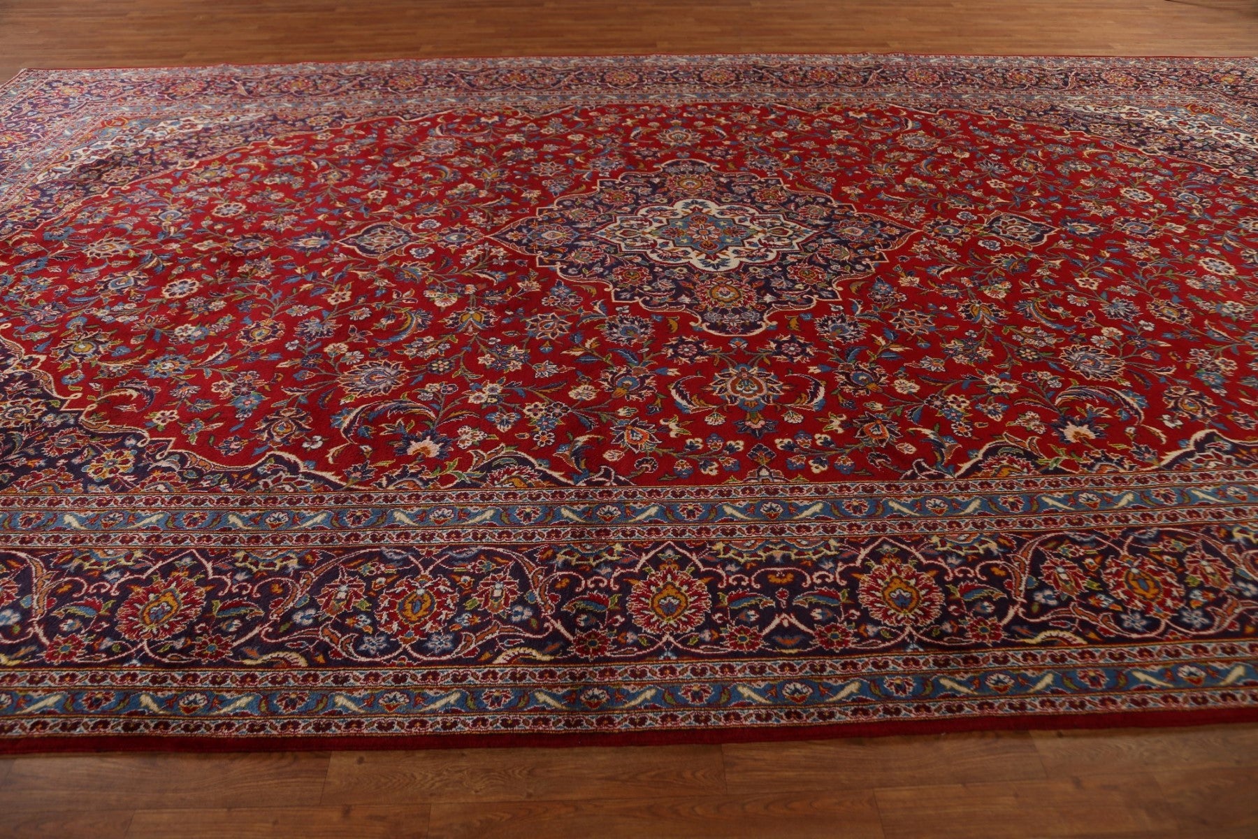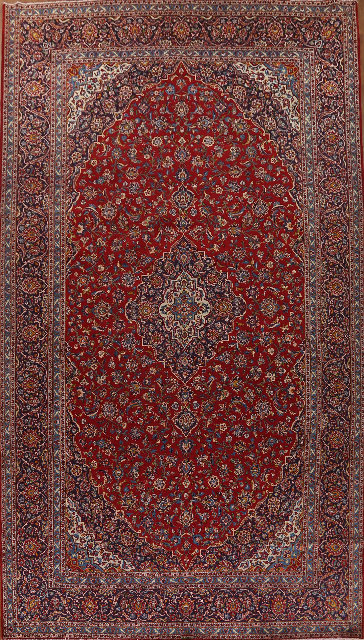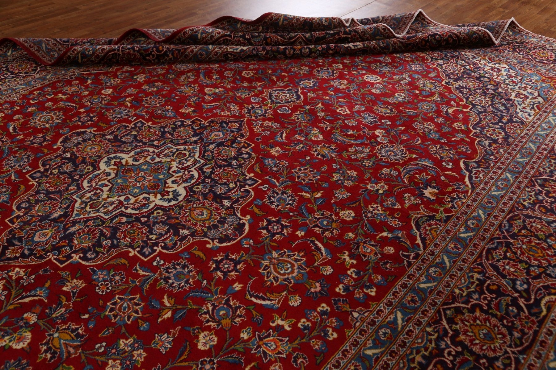A Beautiful Genuine Persia ( Persia ) Kashan (Signed) rug is Hand Knotted by skillful weavers in Persia ( Persia ) with 100% Wool Material. This rug is in Excellent condition. dimensions are 17' 0'' X 10' 3'' in foot and 518 X 312 in centimeter. the primary color is Red.
