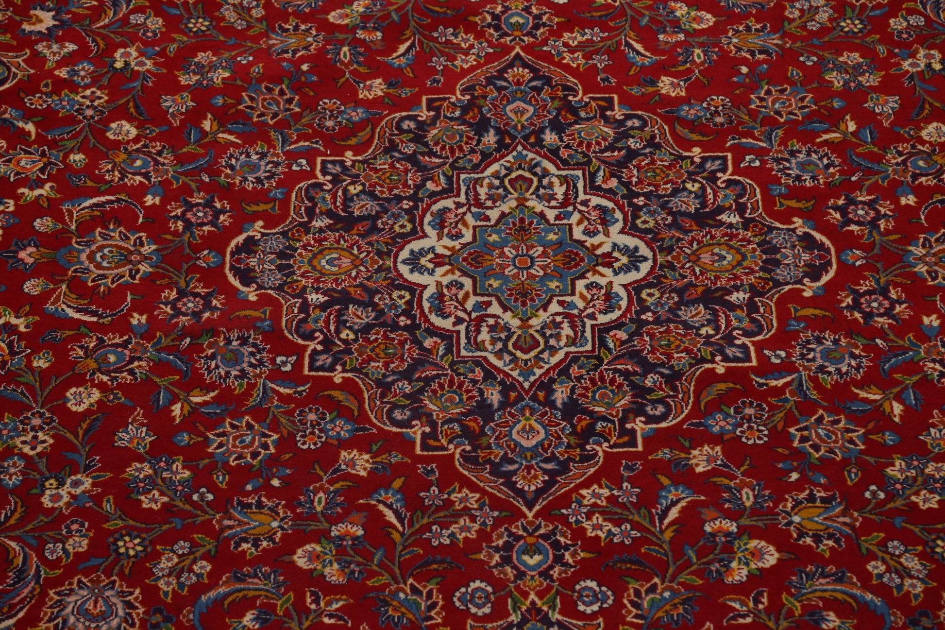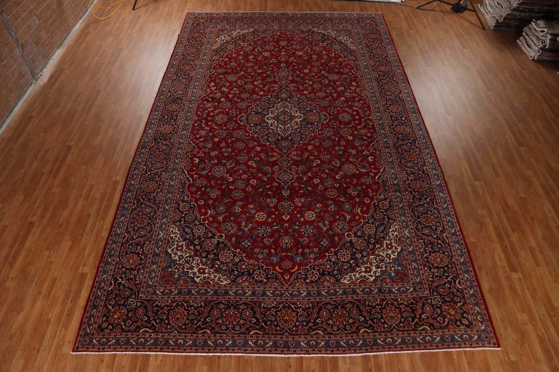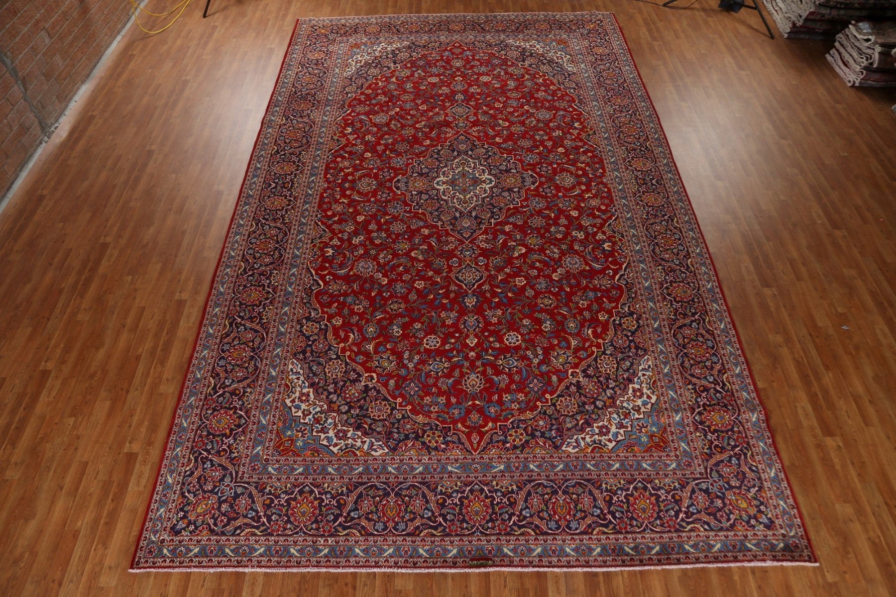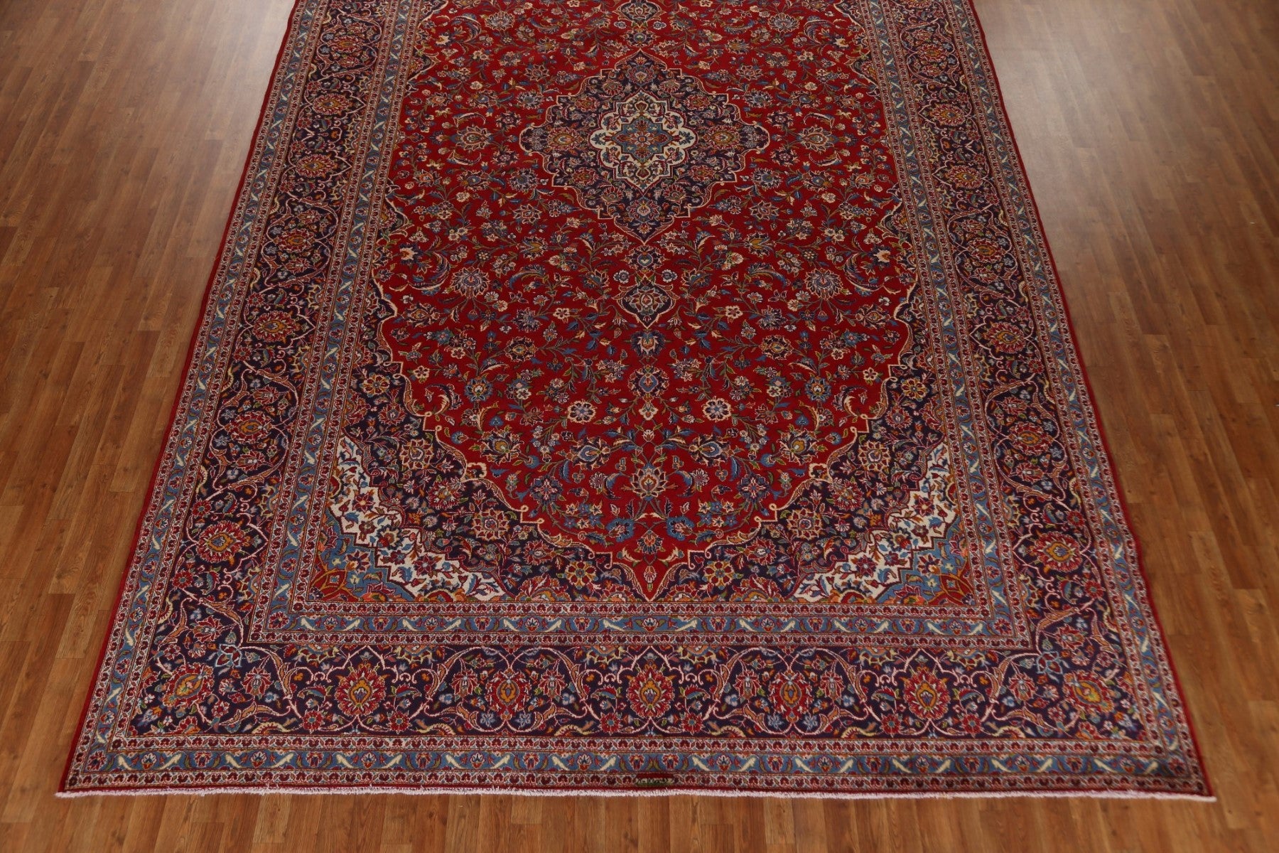 A Beautiful Genuine Persia ( Persia ) Kashan (Signed) rug is Hand Knotted by skillful weavers in Persia ( Persia ) with 100% Wool Material. This rug is in Excellent condition. dimensions are 17' 0'' X 10' 3'' in foot and 518 X 312 in centimeter. the primary color is Red.