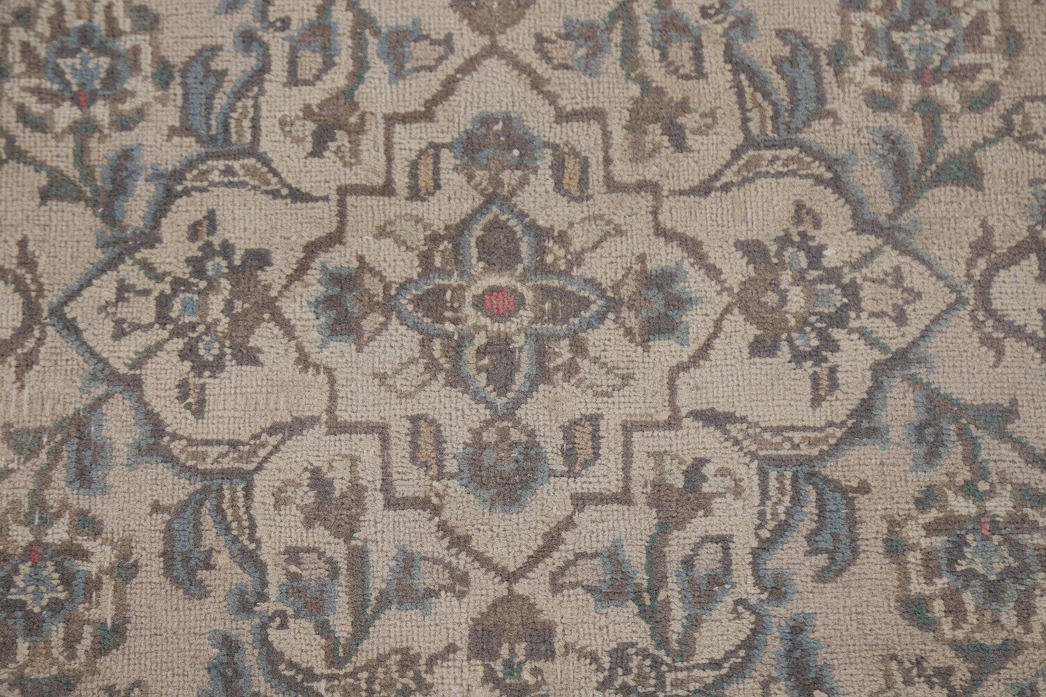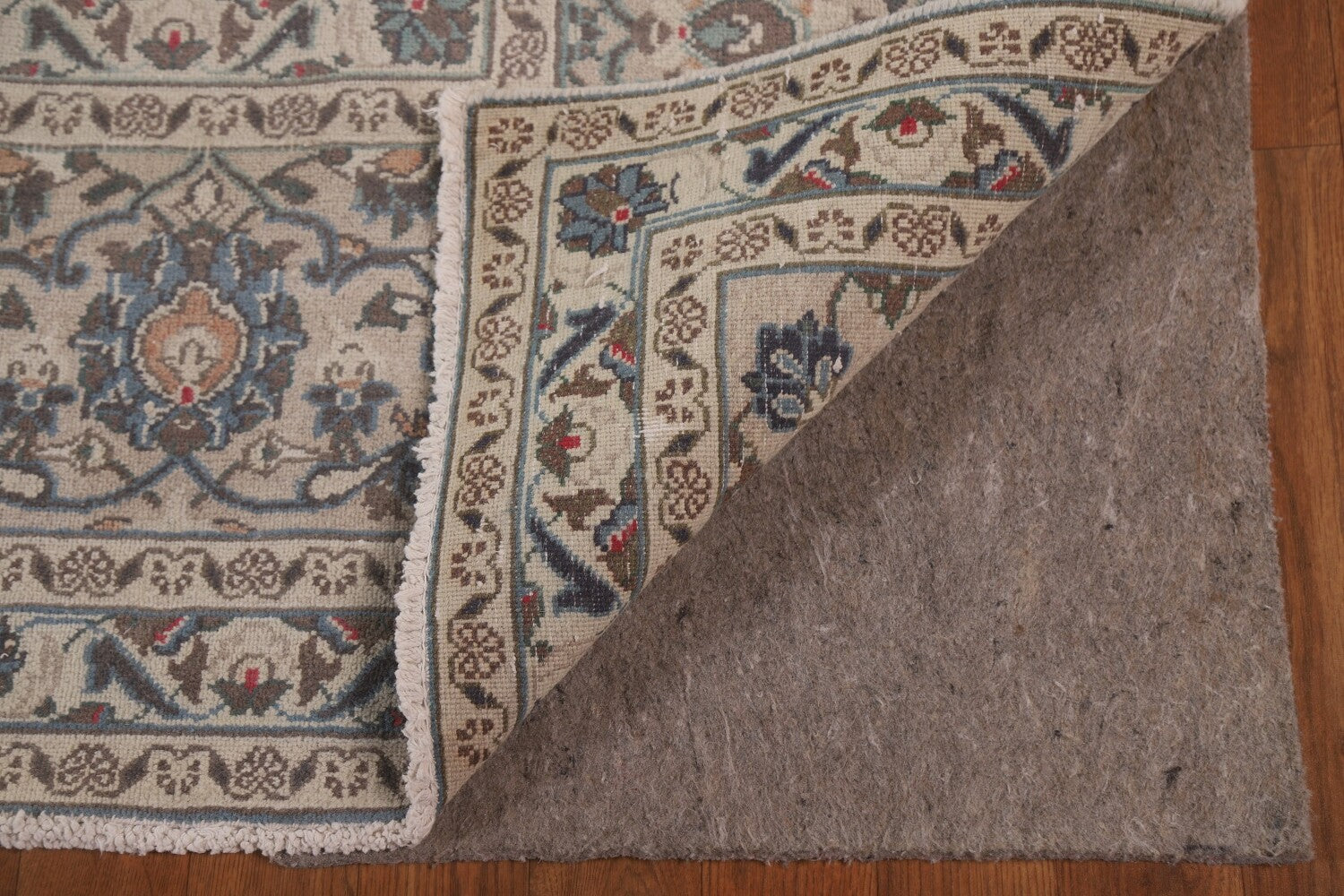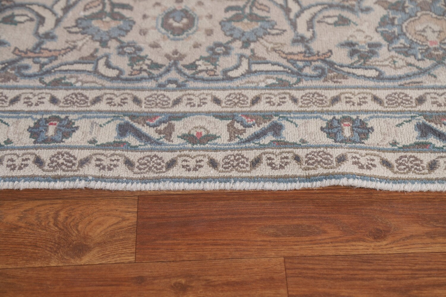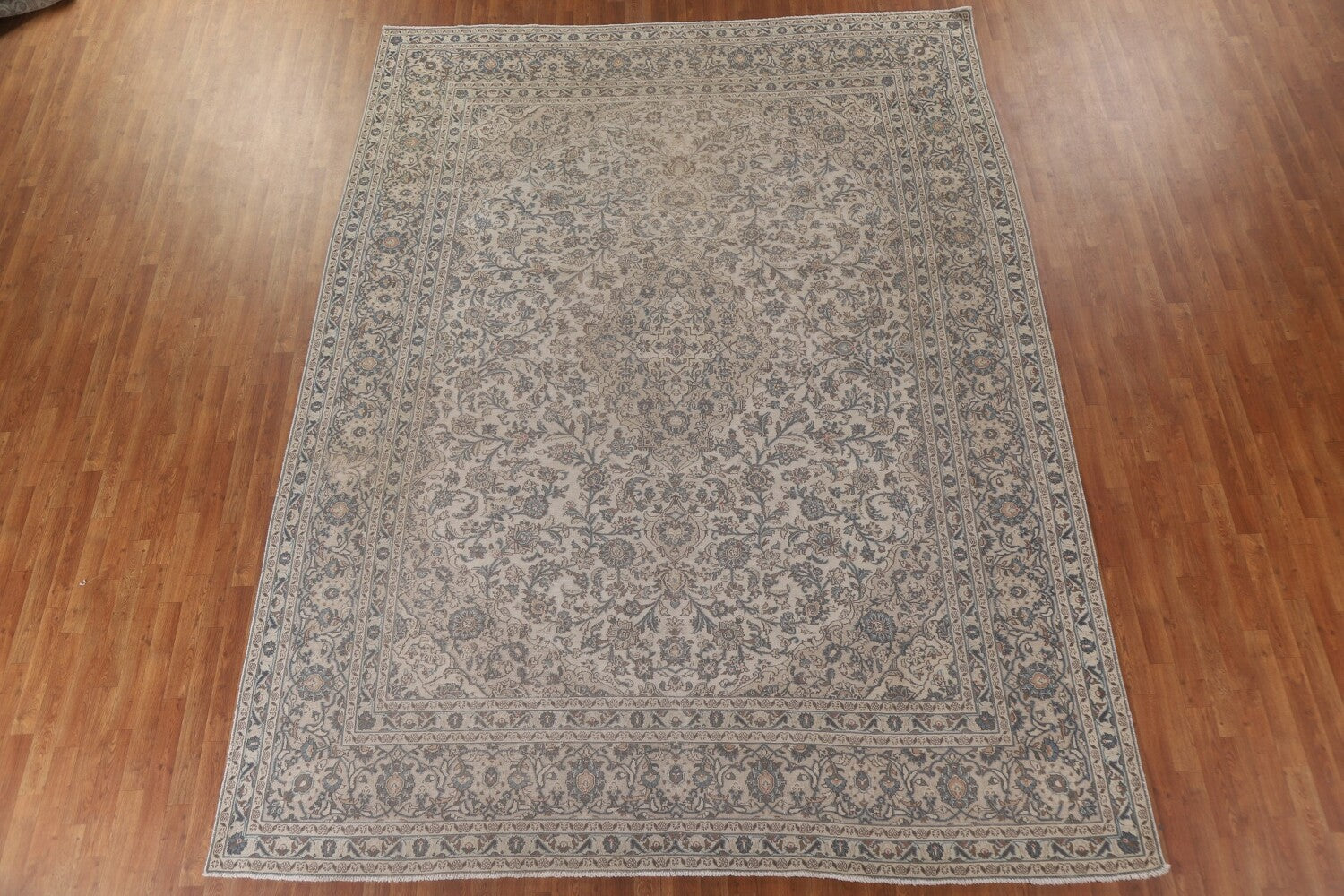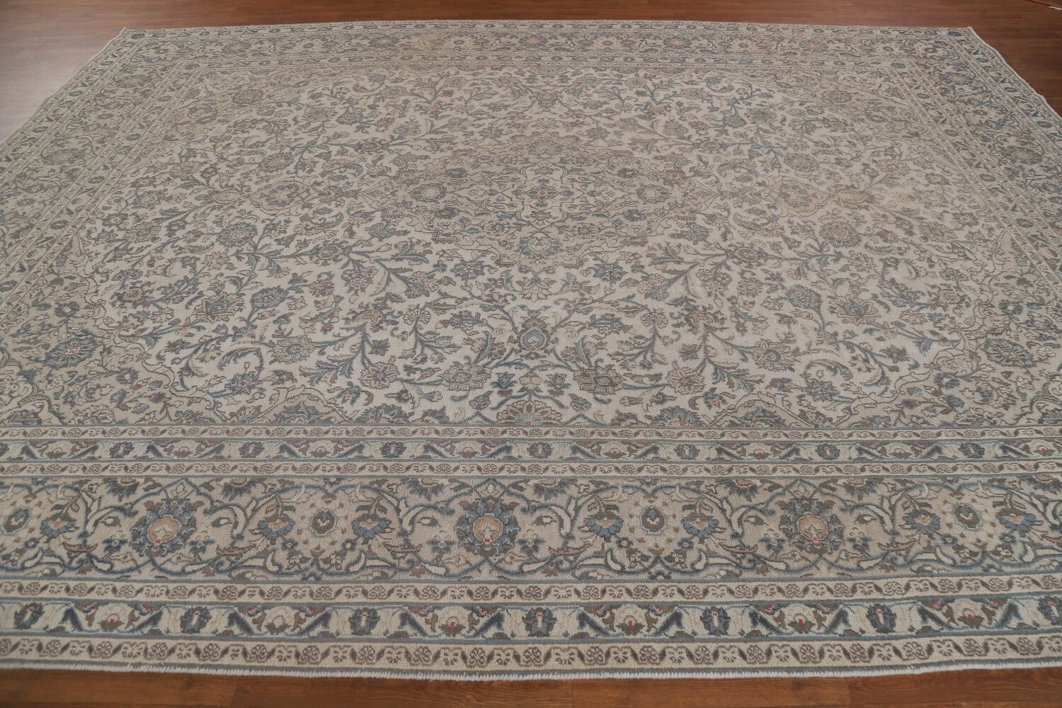 A Beautiful Genuine Persia ( Persia ) Kashan rug is Hand Knotted by skillful weavers in Persia ( Persia ) with 100% Wool Material. This rug is in Very Good (Evenly Low Pile) condition. dimensions are 12' 5'' X 9' 8'' in foot and 378 X 295 in centimeter. the primary color is Beige & Ivories.
