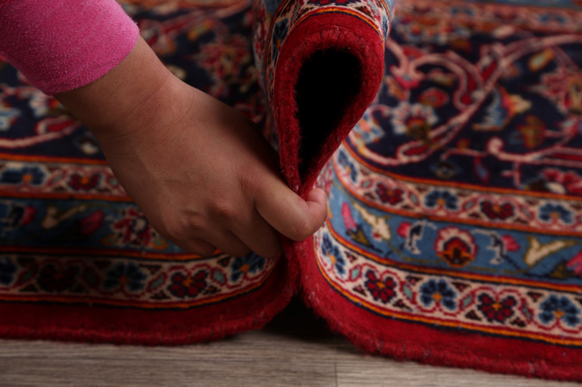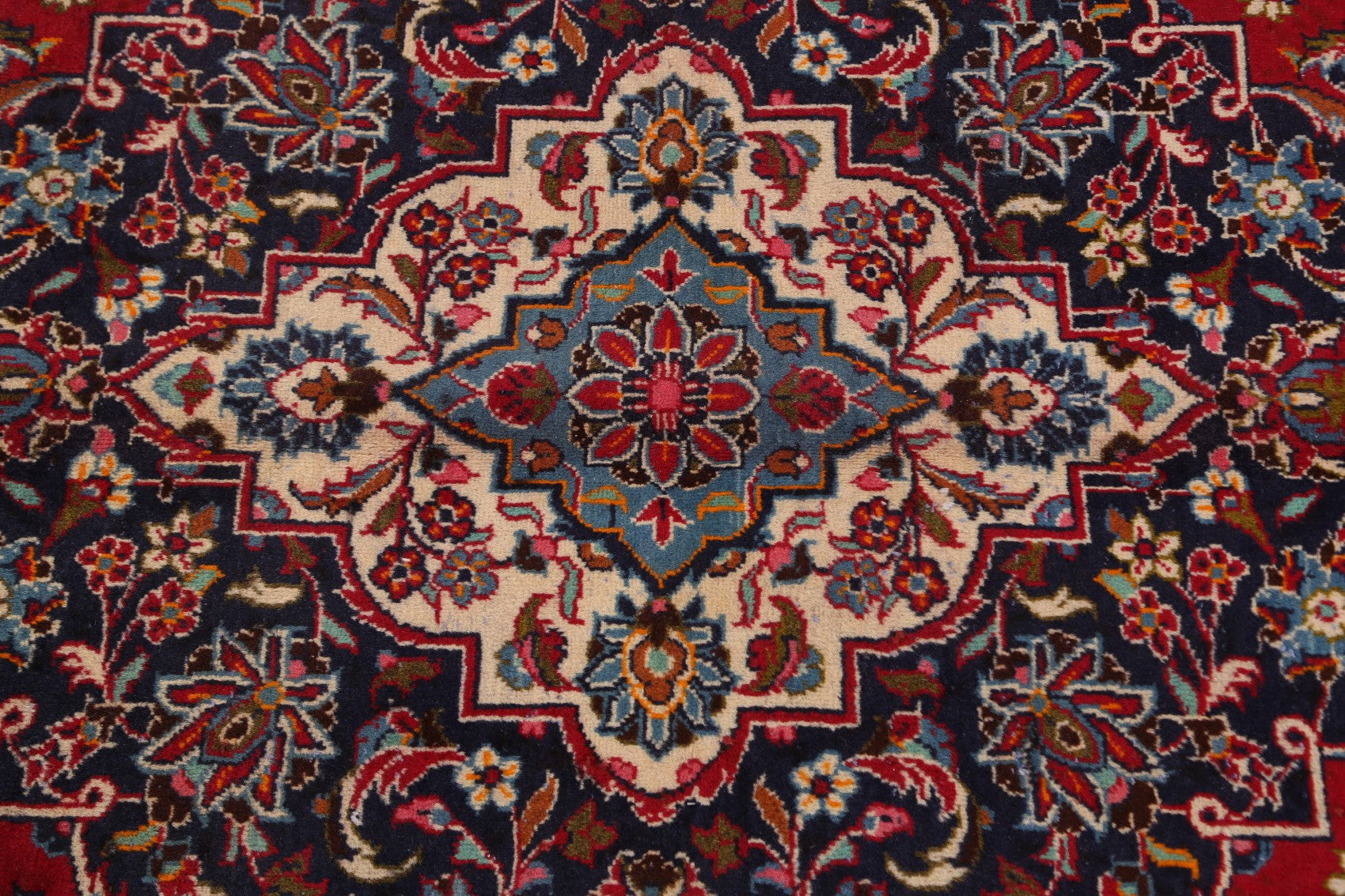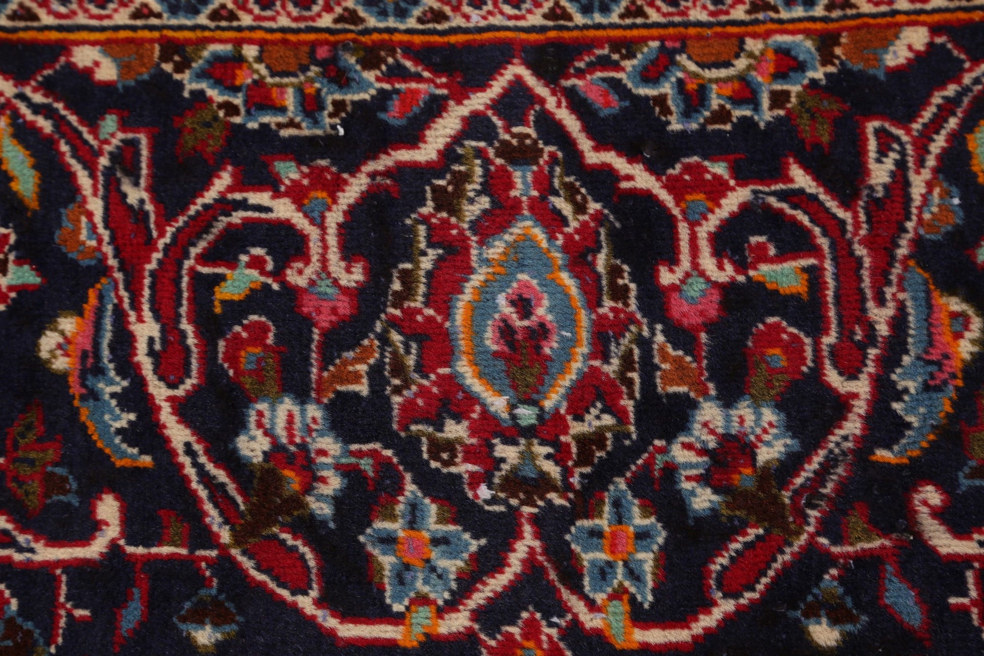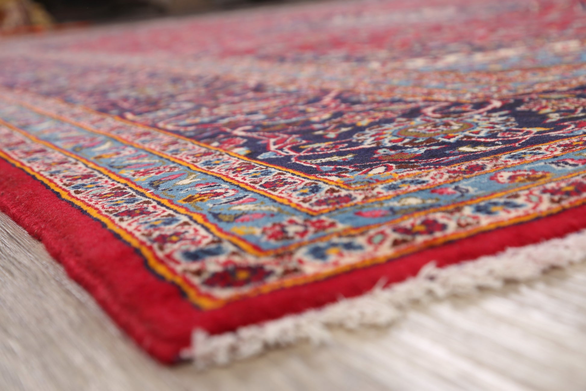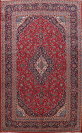 A Beautiful Genuine Persia ( Persia ) Kashan rug is Hand Knotted by skillful weavers in Persia ( Persia ) with 100% Wool Material. This rug is in Very Good ( Low Pile ) condition. dimensions are 13' 5'' X 9' 7'' in foot and 409 X 292 in centimeter. the primary color is Red.