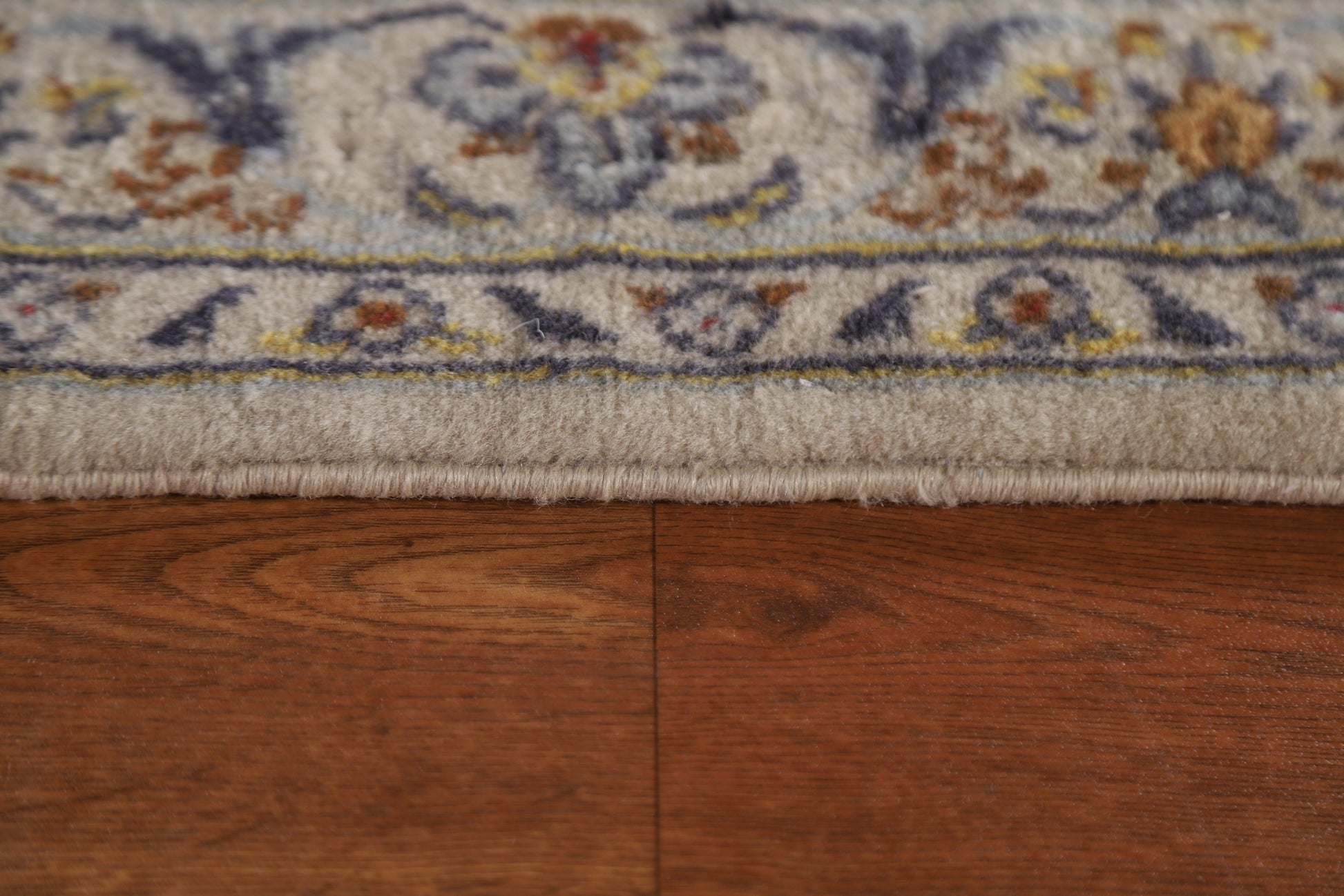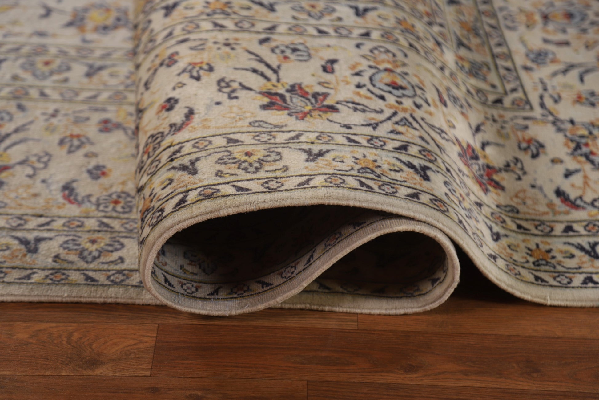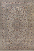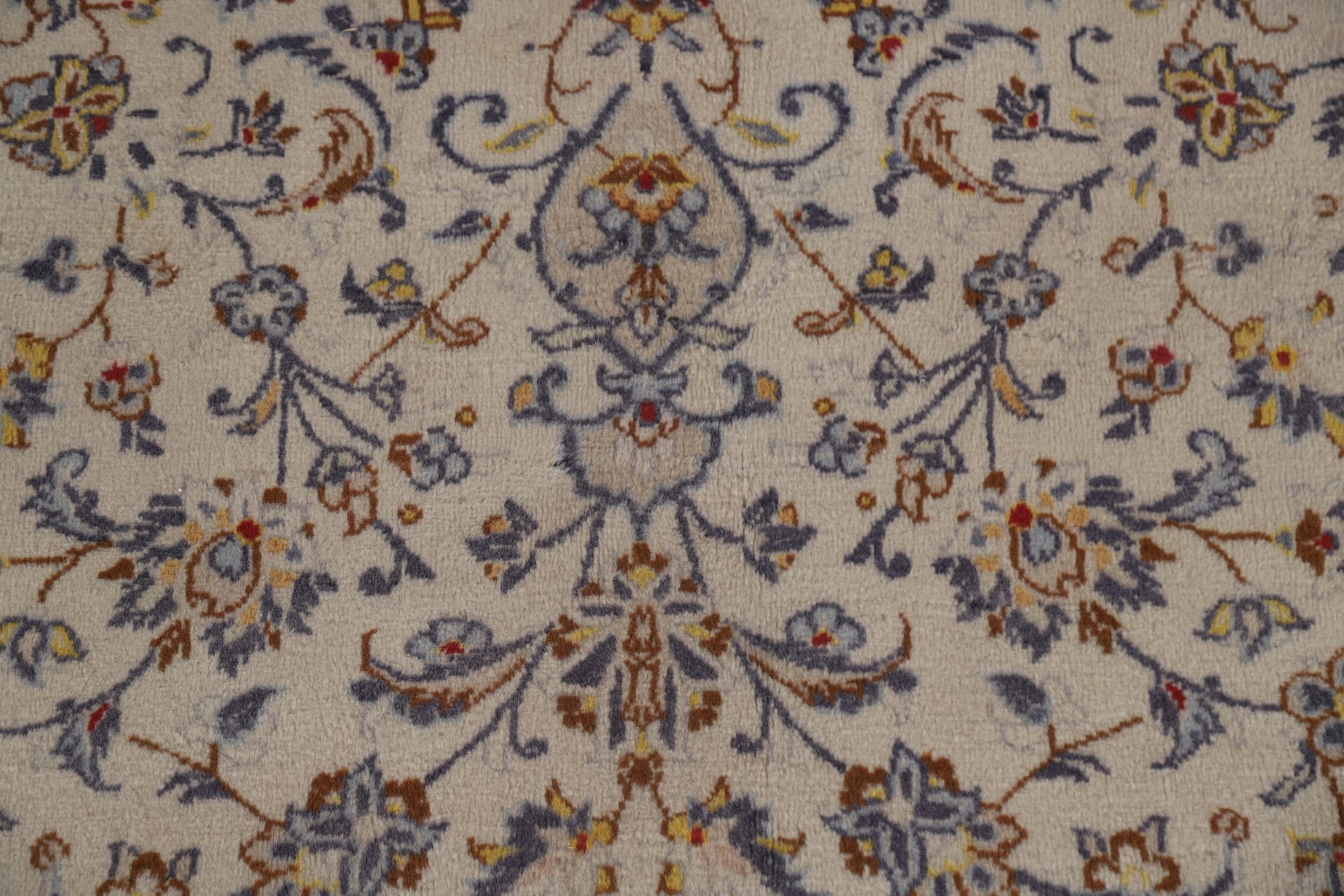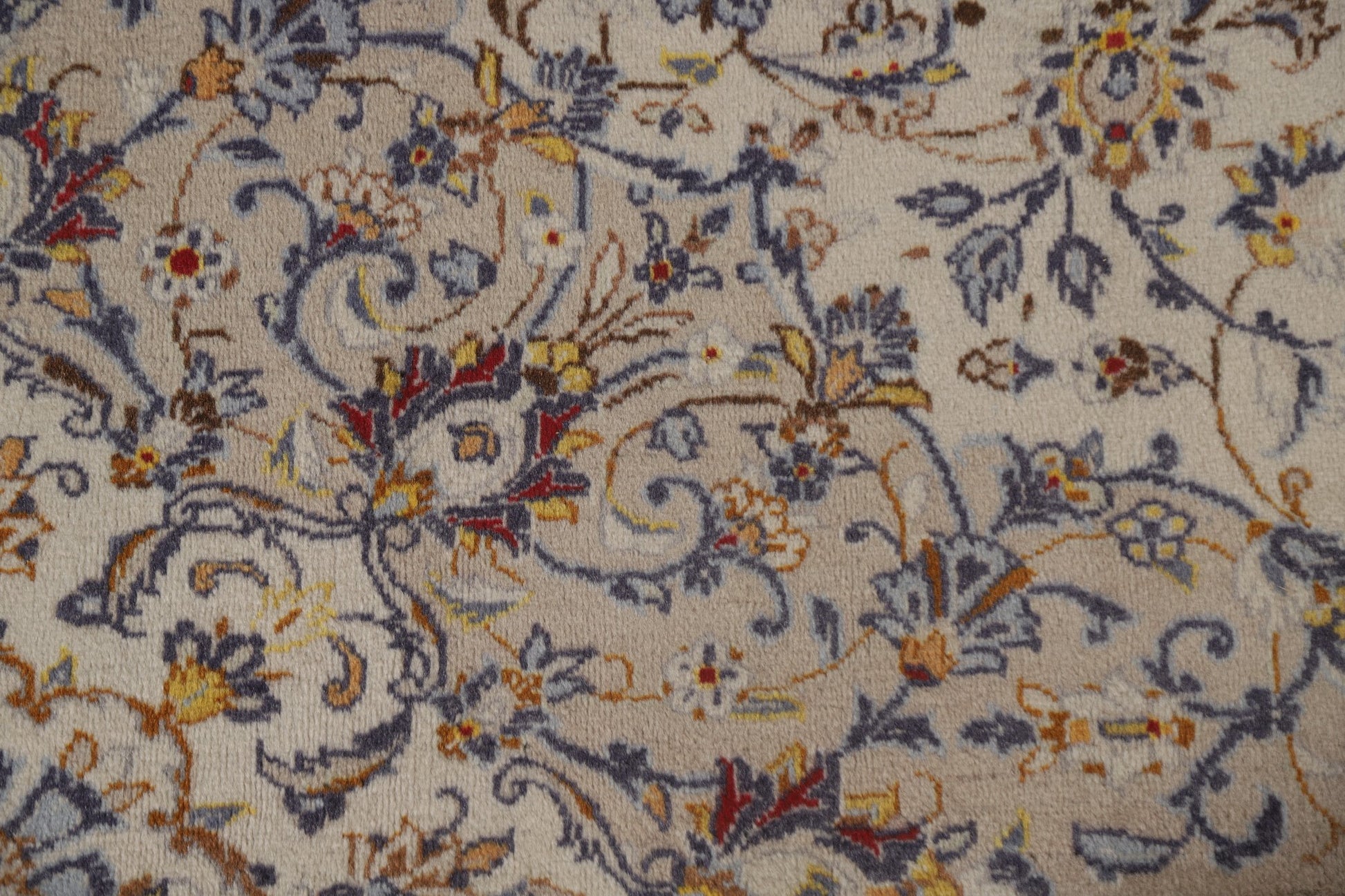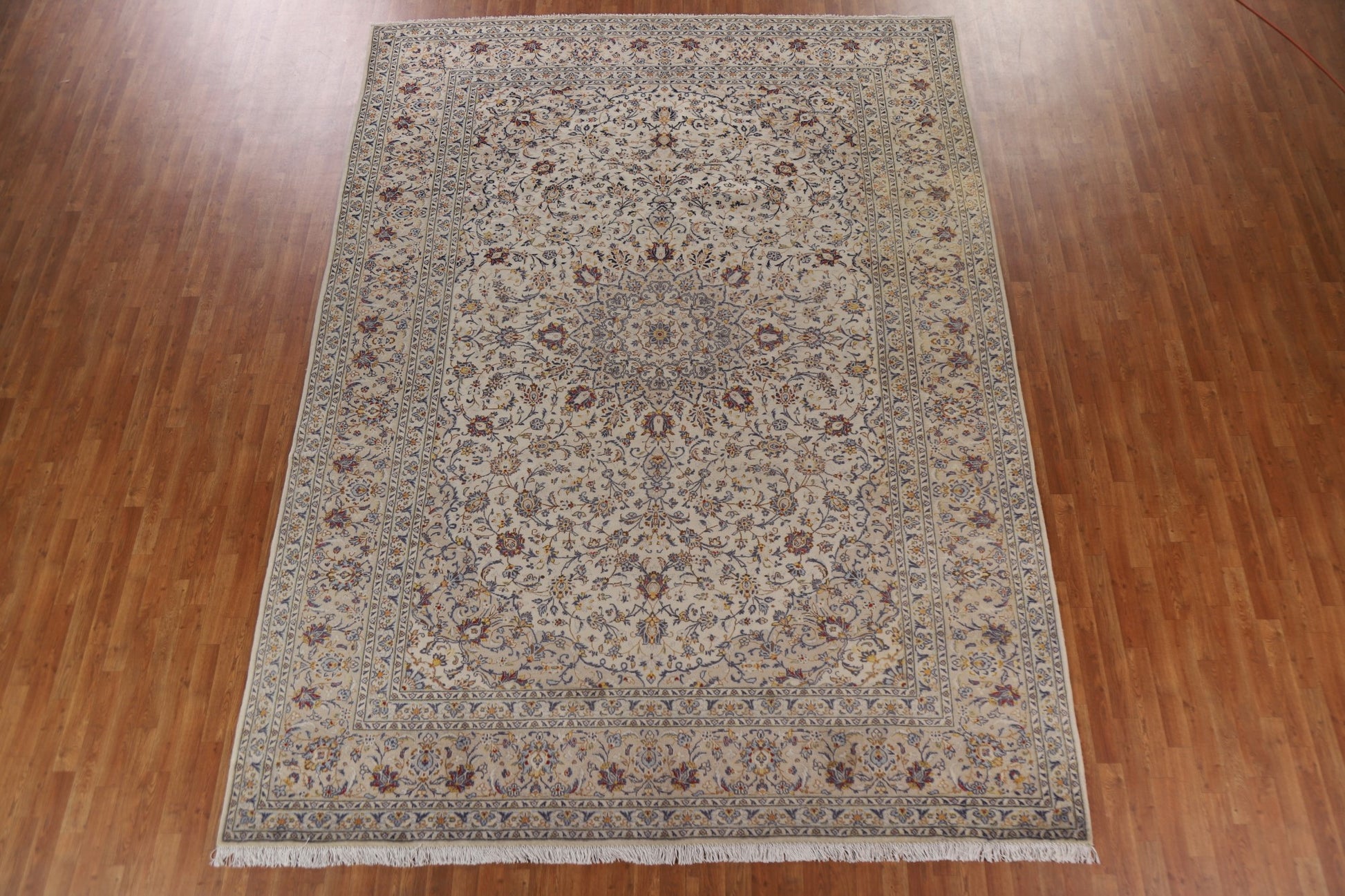 A Beautiful Genuine Persia ( Persia ) Kashan rug is Hand Knotted by skillful weavers in Persia ( Persia ) with 100% Wool Material. This rug is in Very Good (Abrash) condition. dimensions are 12' 11'' X 9' 6'' in foot and 394 X 290 in centimeter. the primary color is Beige & Ivories.