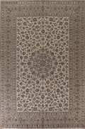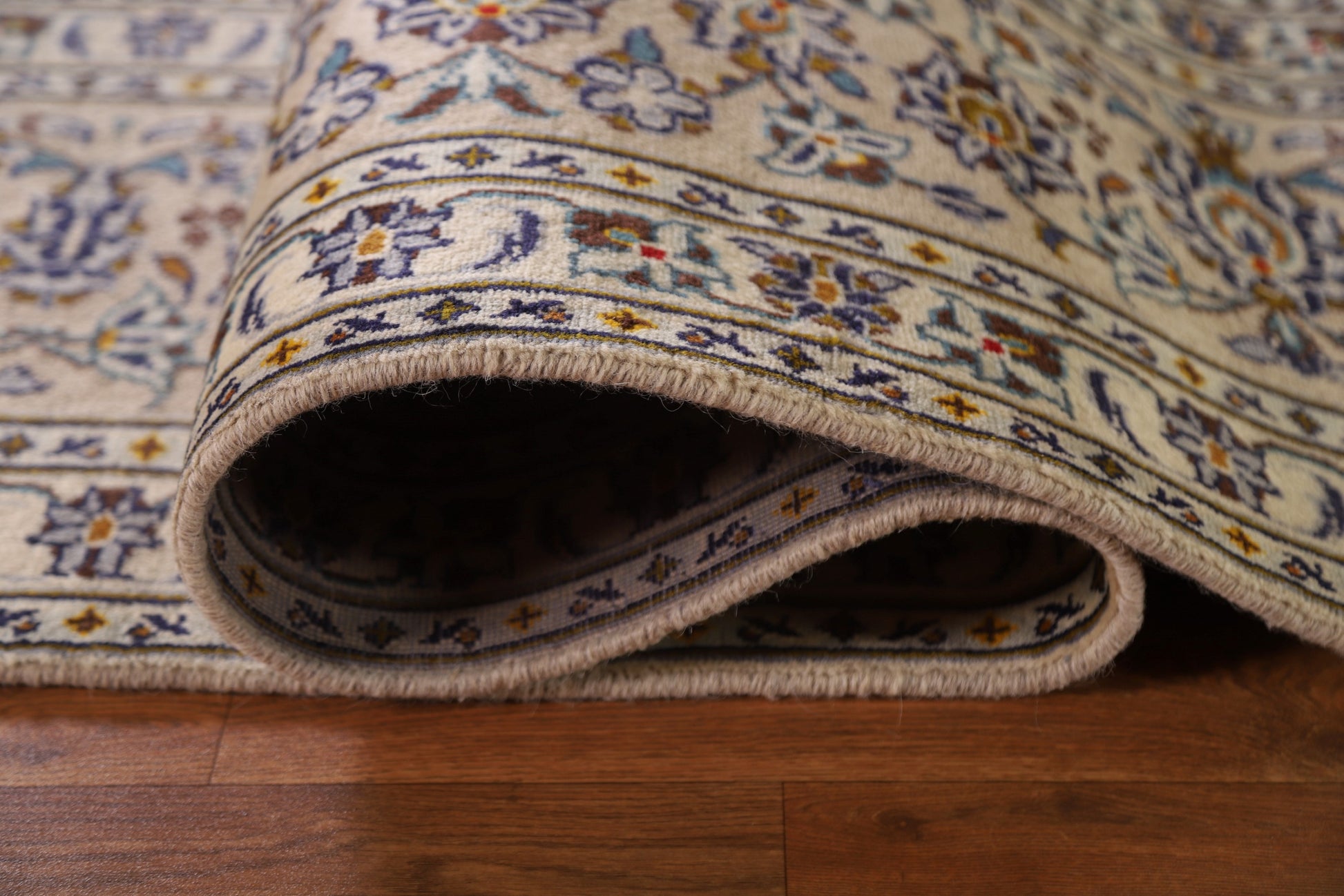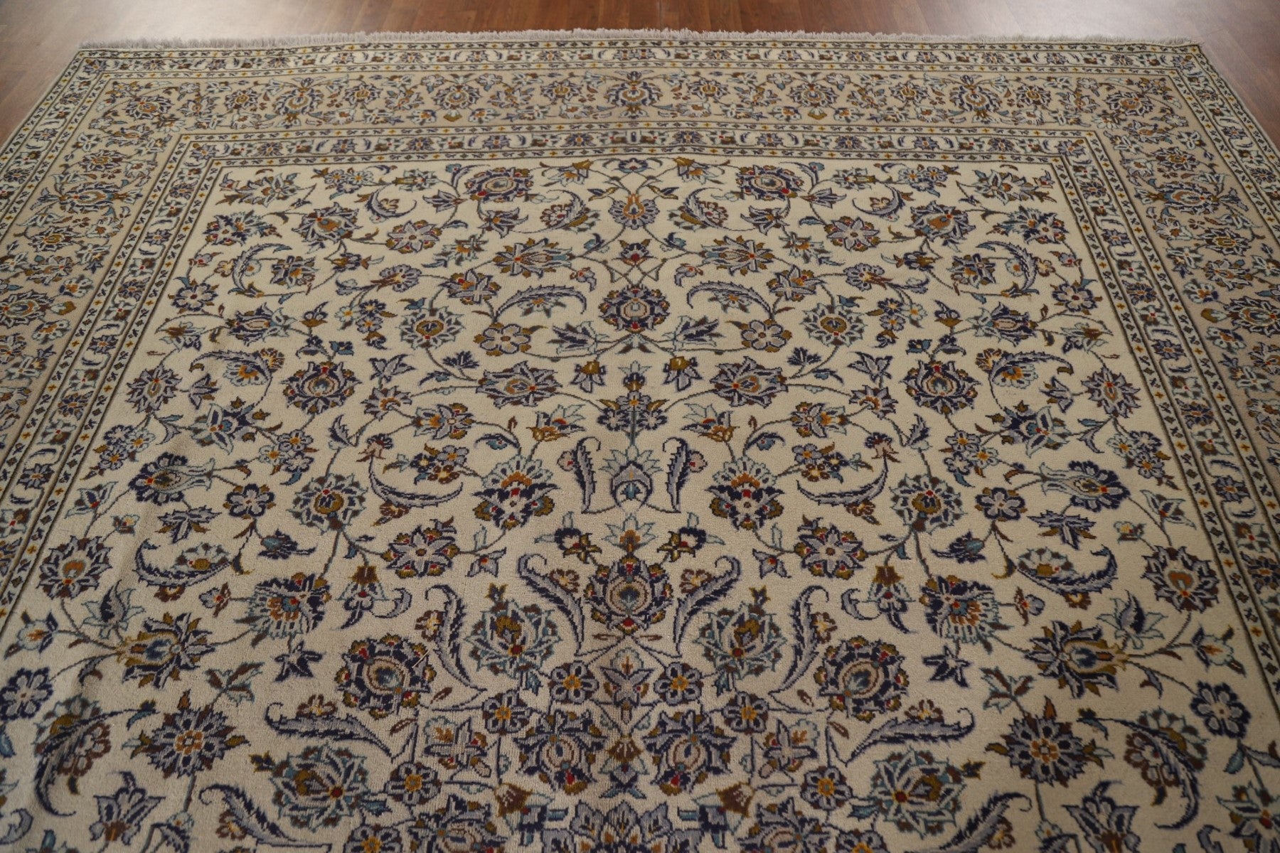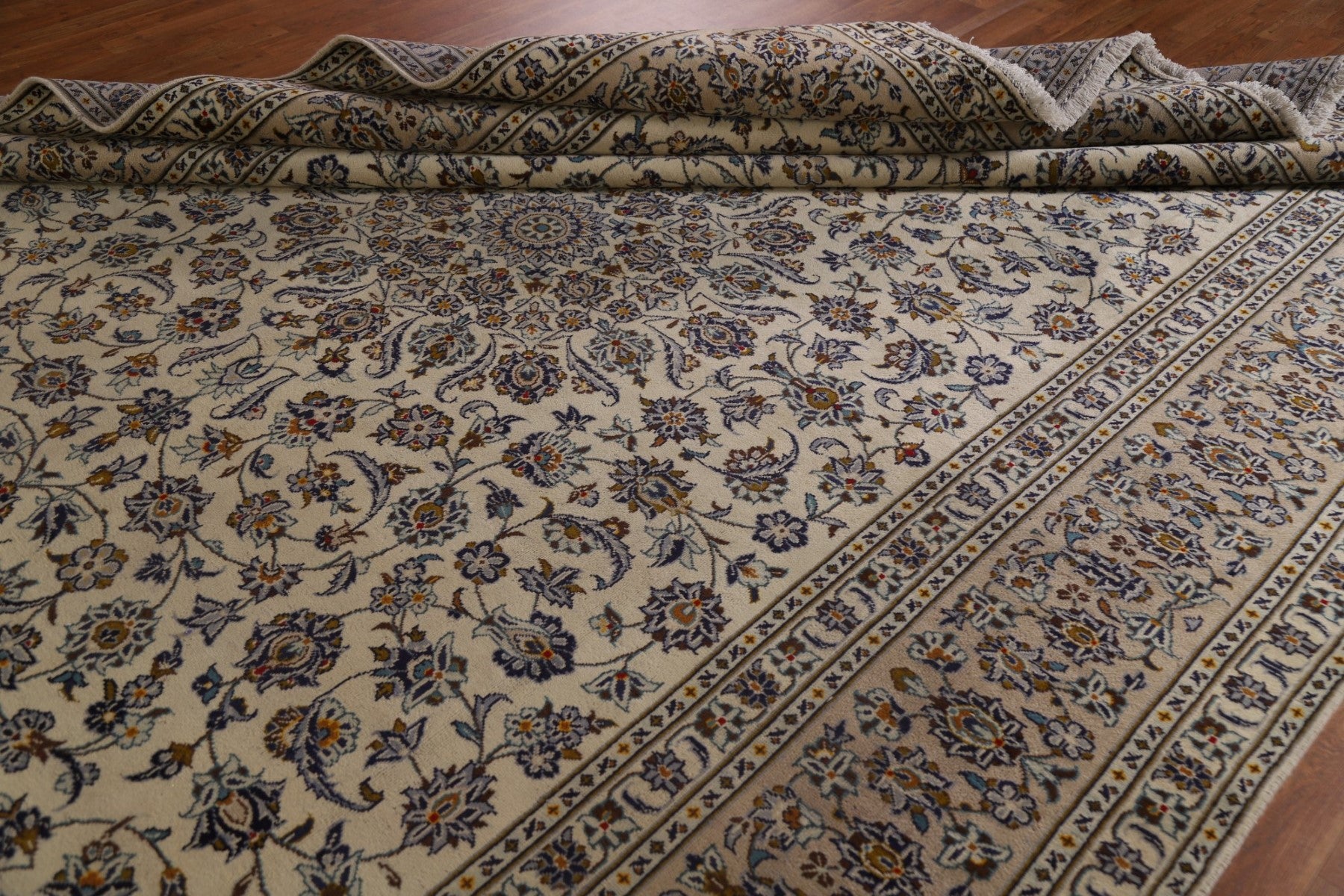 A Beautiful Genuine Persia ( Persia ) Kashan rug is Hand Knotted by skillful weavers in Persia ( Persia ) with 100% Wool Material. This rug is in Very Good condition. dimensions are 13' 3'' X 9' 10'' in foot and 404 X 300 in centimeter. the primary color is Beige & Ivories.