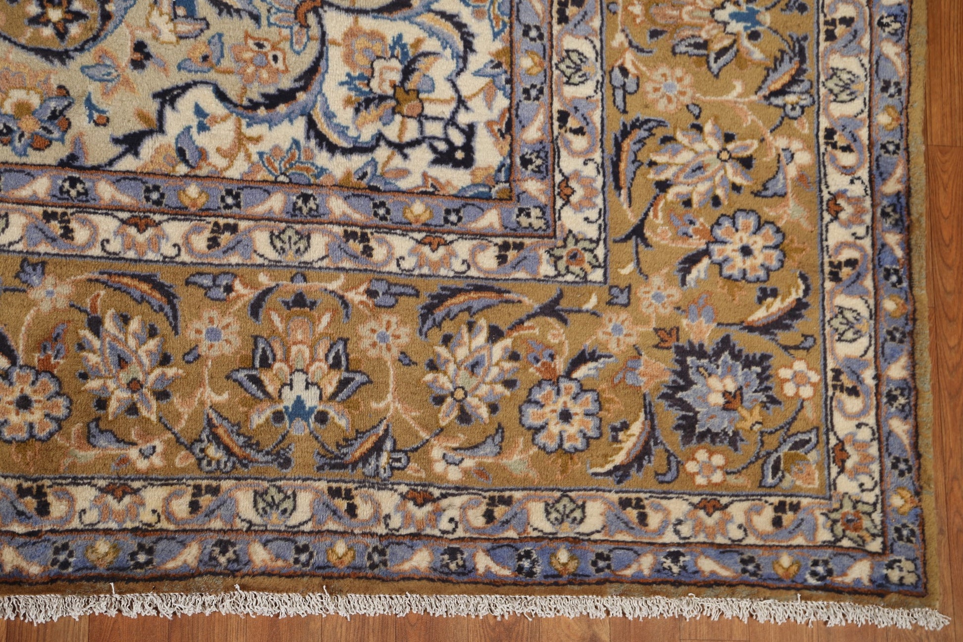 A Beautiful Genuine Persia ( Persia ) Kashan rug is Hand Knotted by skillful weavers in Persia ( Persia ) with 100% Wool Material. This rug is in Very Good condition. dimensions are 12' 6'' X 9' 7'' in foot and 381 X 292 in centimeter. the primary color is Brown.
