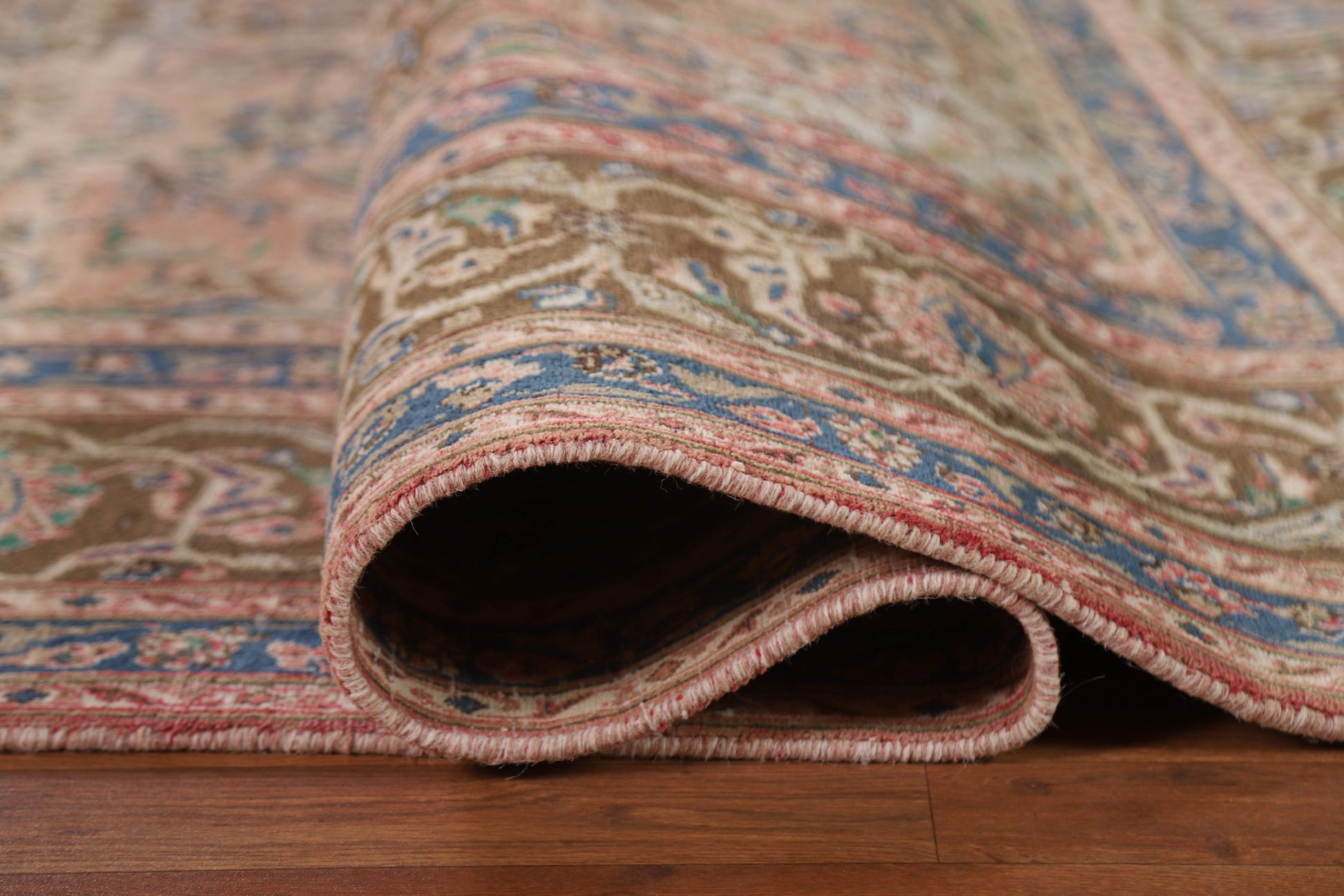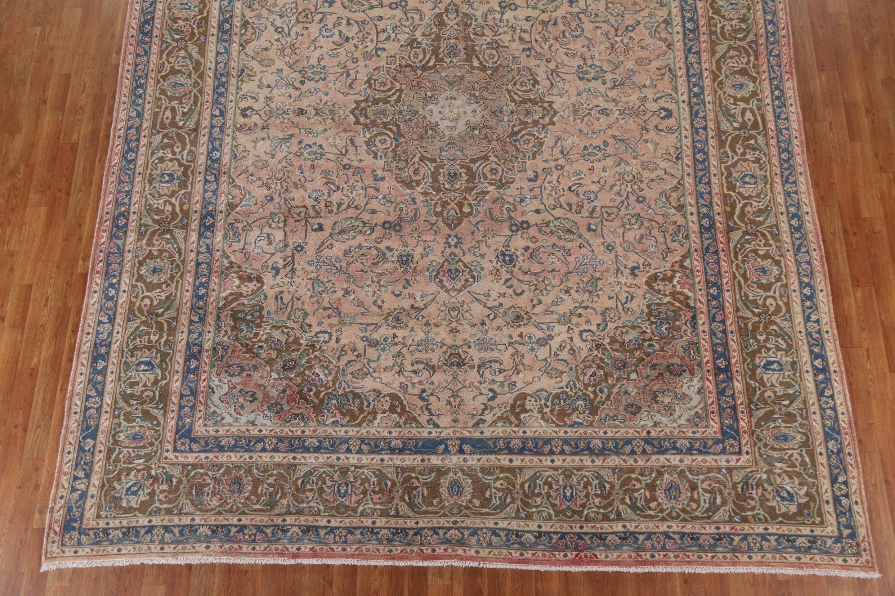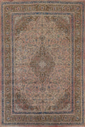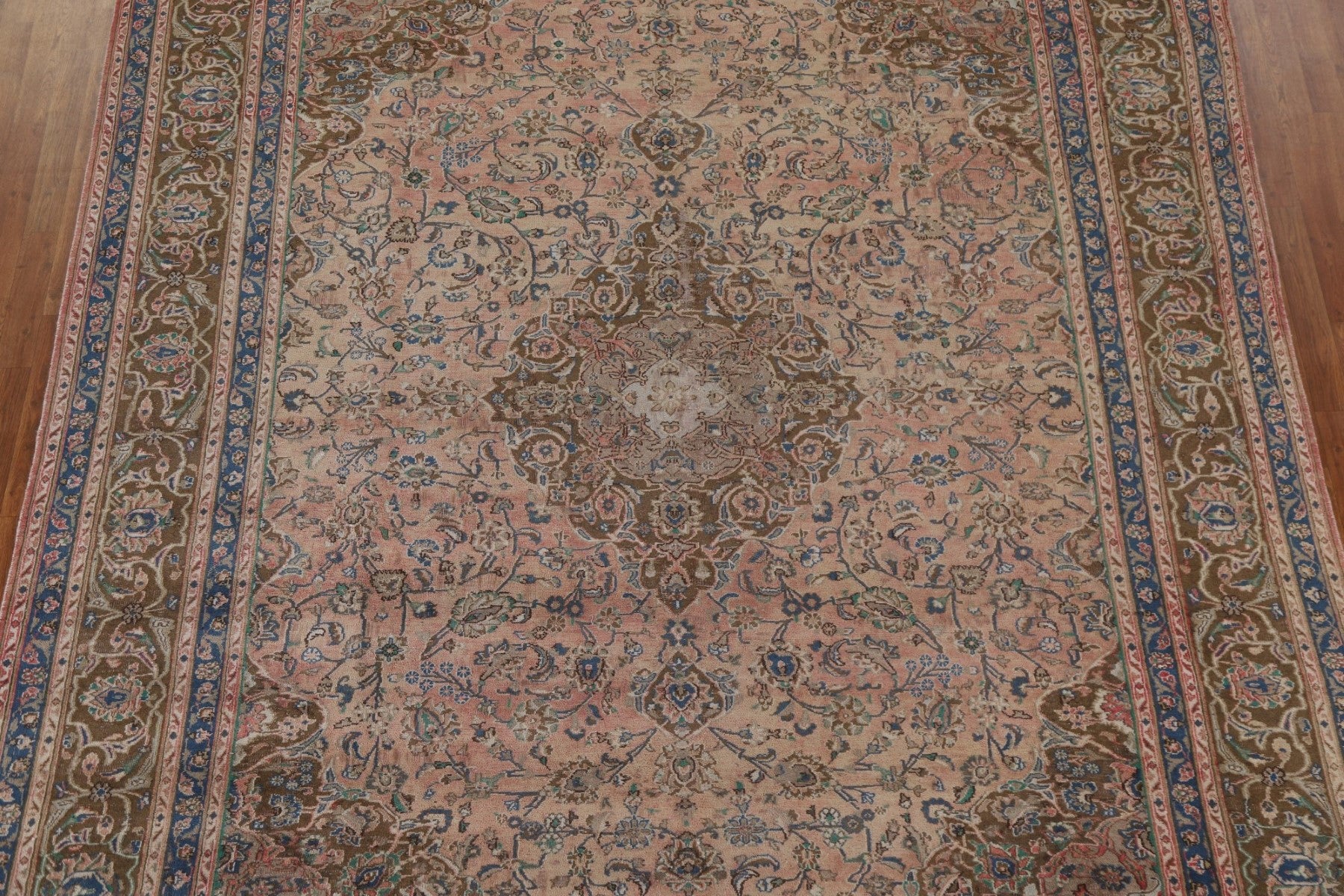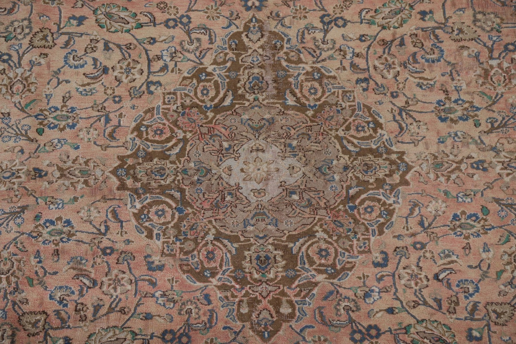 A Beautiful Genuine Persia ( Persia ) Kashan rug is Hand Knotted by skillful weavers in Persia ( Persia ) with 100% Wool Material. This rug is in Very Good ( Low Pile ) condition. dimensions are 12' 8'' X 9' 7'' in foot and 386 X 292 in centimeter. the primary color is Pink.