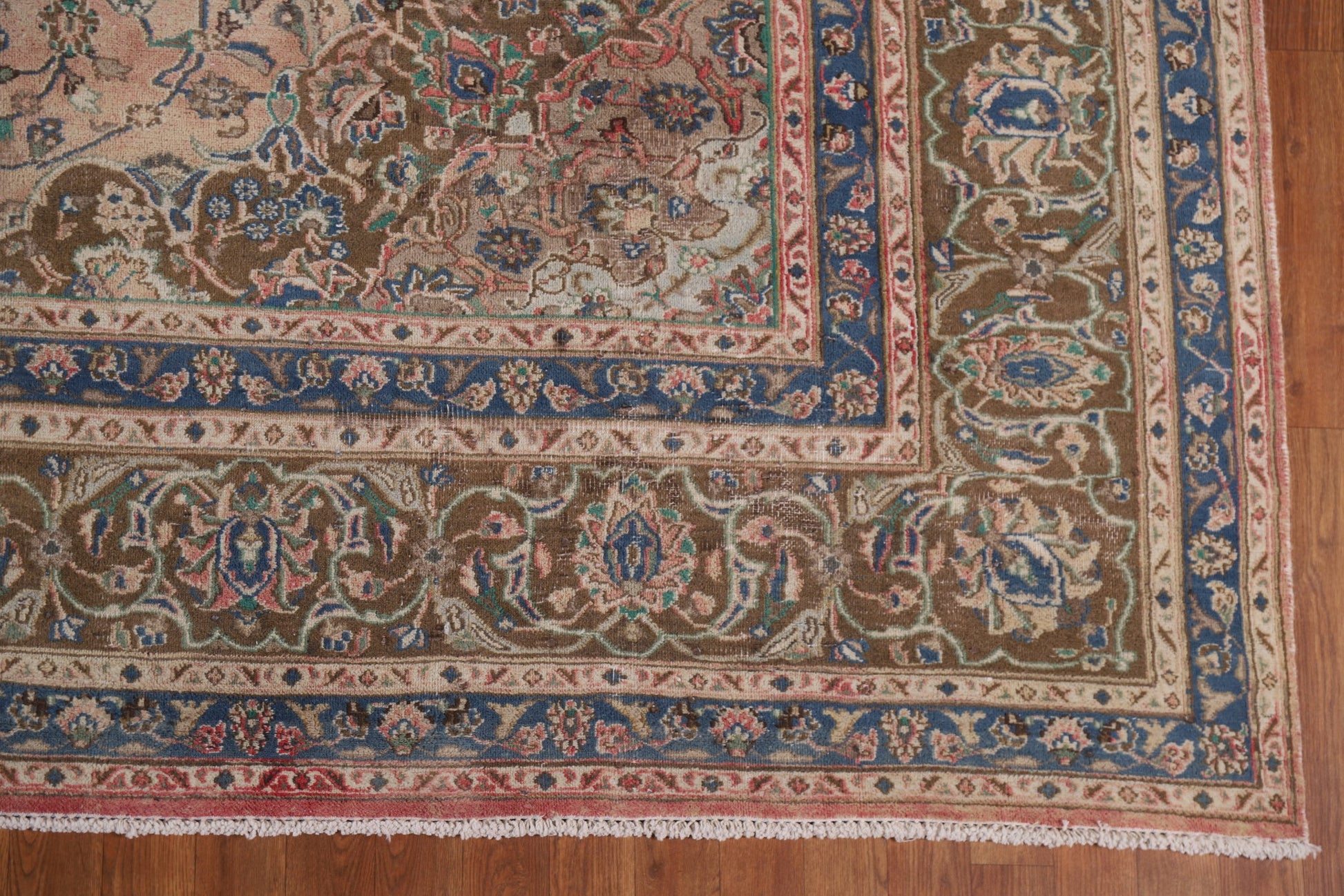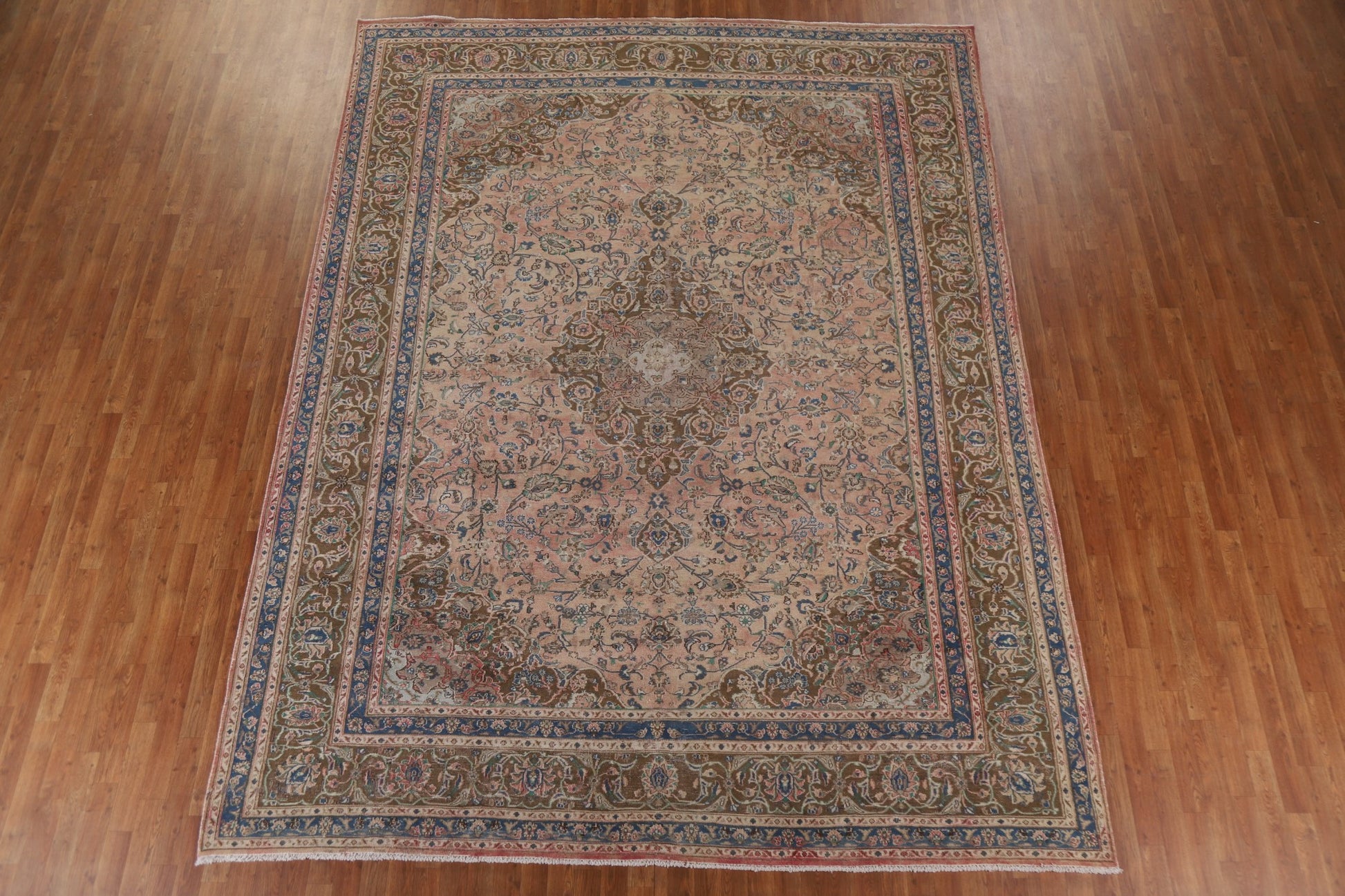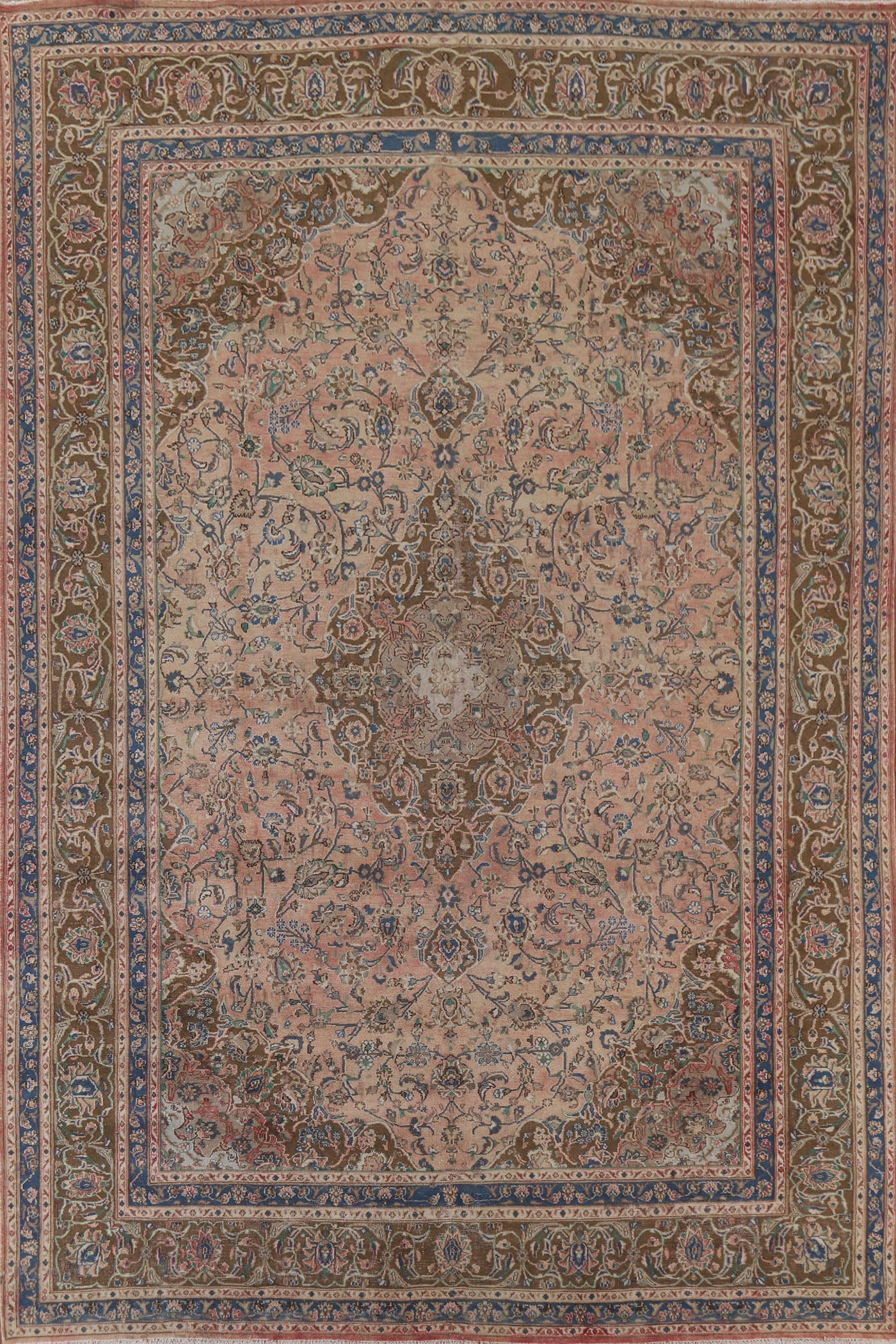A Beautiful Genuine Persia ( Persia ) Kashan rug is Hand Knotted by skillful weavers in Persia ( Persia ) with 100% Wool Material. This rug is in Very Good ( Low Pile ) condition. dimensions are 12' 8'' X 9' 7'' in foot and 386 X 292 in centimeter. the primary color is Pink.