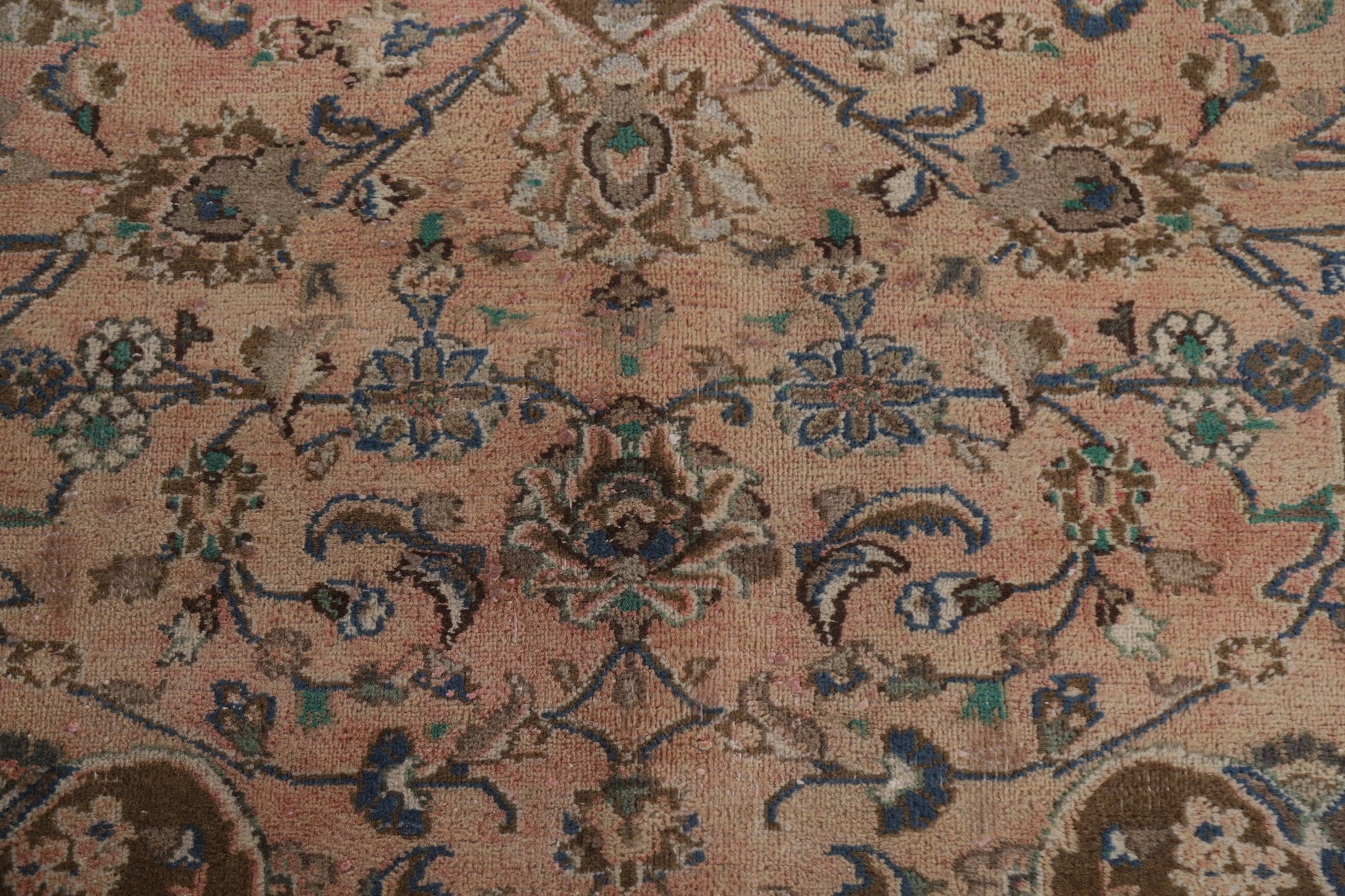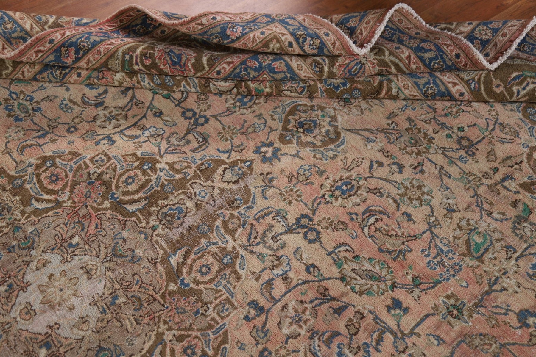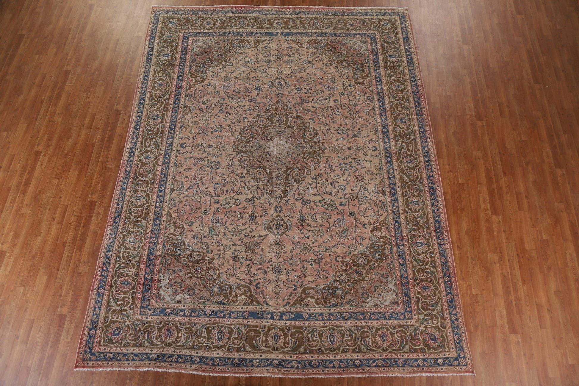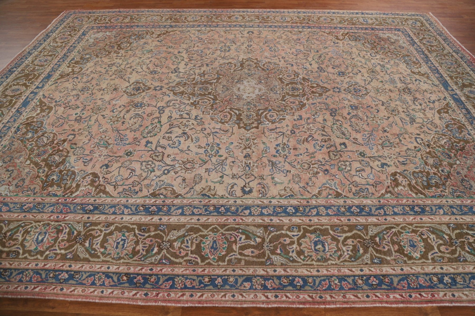 A Beautiful Genuine Persia ( Persia ) Kashan rug is Hand Knotted by skillful weavers in Persia ( Persia ) with 100% Wool Material. This rug is in Very Good ( Low Pile ) condition. dimensions are 12' 8'' X 9' 7'' in foot and 386 X 292 in centimeter. the primary color is Pink.