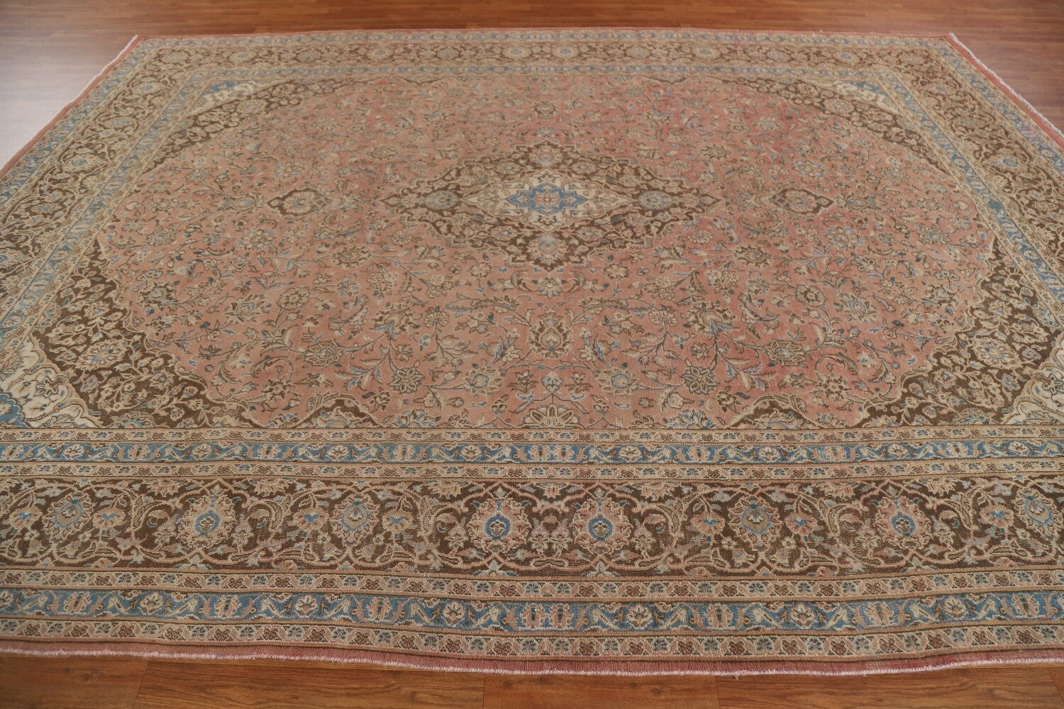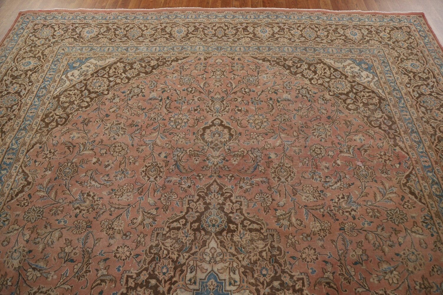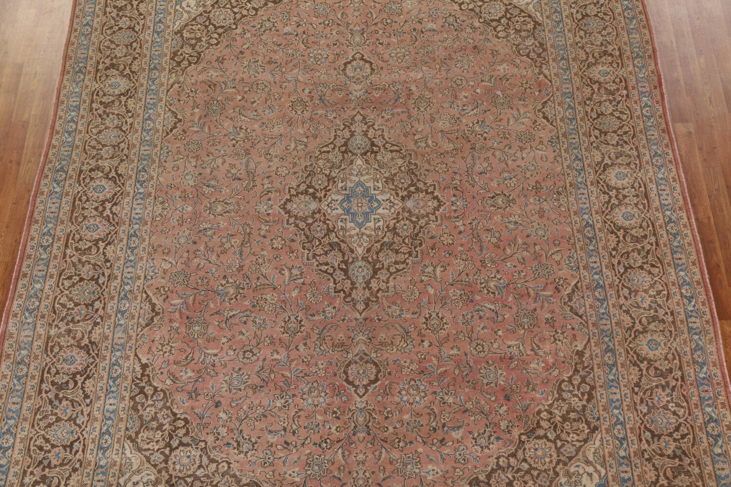 A Beautiful Genuine Persia ( Persia ) Kashan rug is Hand Knotted by skillful weavers in Persia ( Persia ) with 100% Wool Material. This rug is in Very Good (Evenly Low Pile-Repair) condition. dimensions are 12' 7'' X 9' 6'' in foot and 384 X 290 in centimeter. the primary color is Pink.