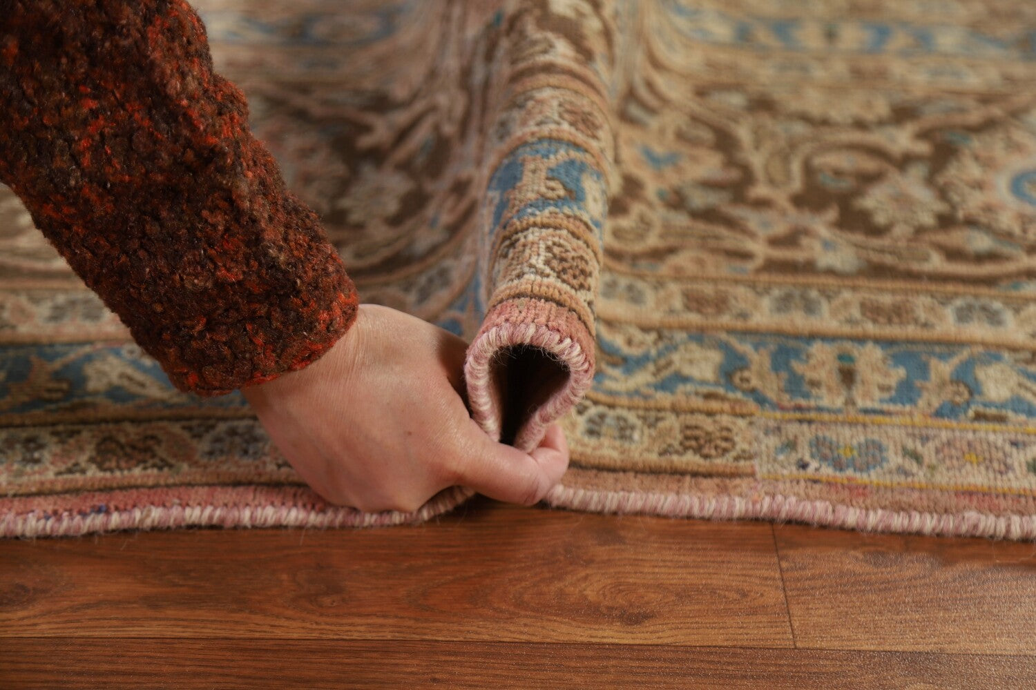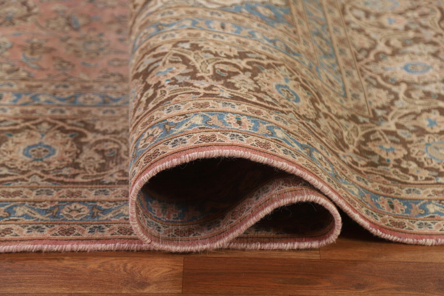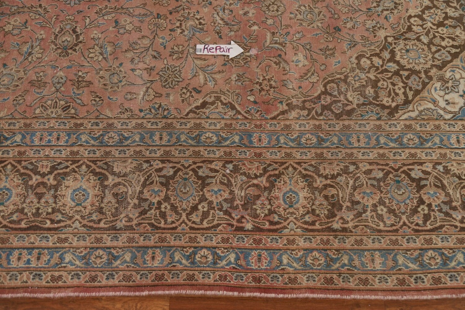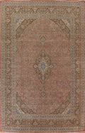 A Beautiful Genuine Persia ( Persia ) Kashan rug is Hand Knotted by skillful weavers in Persia ( Persia ) with 100% Wool Material. This rug is in Very Good (Evenly Low Pile-Repair) condition. dimensions are 12' 7'' X 9' 6'' in foot and 384 X 290 in centimeter. the primary color is Pink.