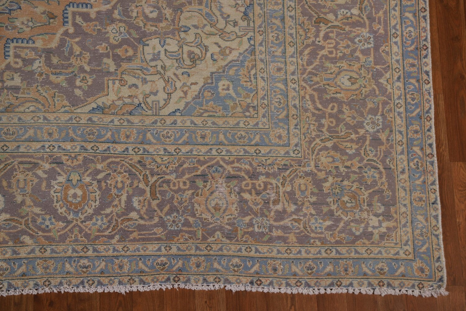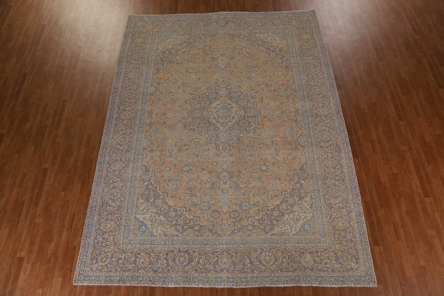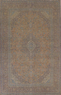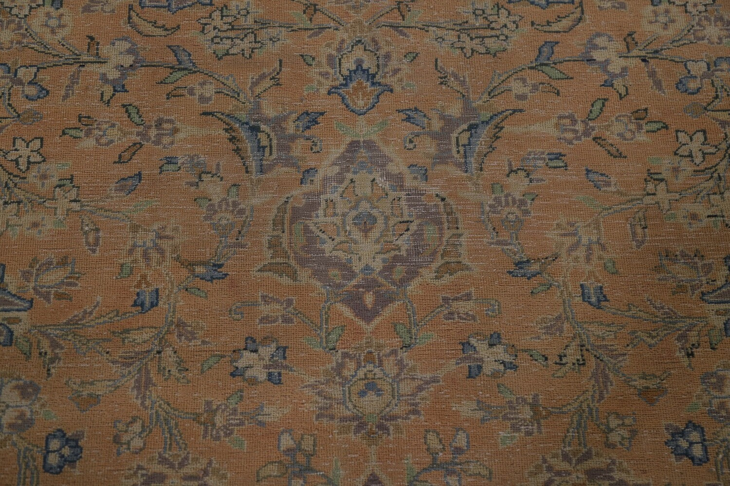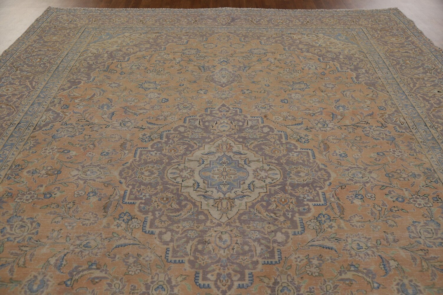A Beautiful Genuine Persia ( Persia ) Kashan rug is Hand Knotted by skillful weavers in Persia ( Persia ) with 100% Wool Material. This rug is in Very Good (Evenly Low Pile) condition. dimensions are 12' 10'' X 9' 6'' in foot and 391 X 290 in centimeter. the primary color is Coral.