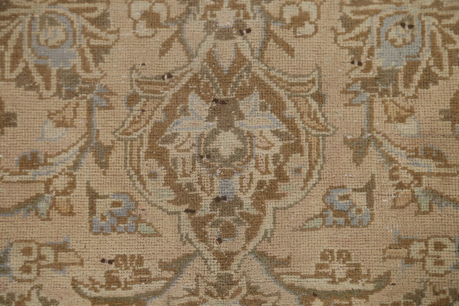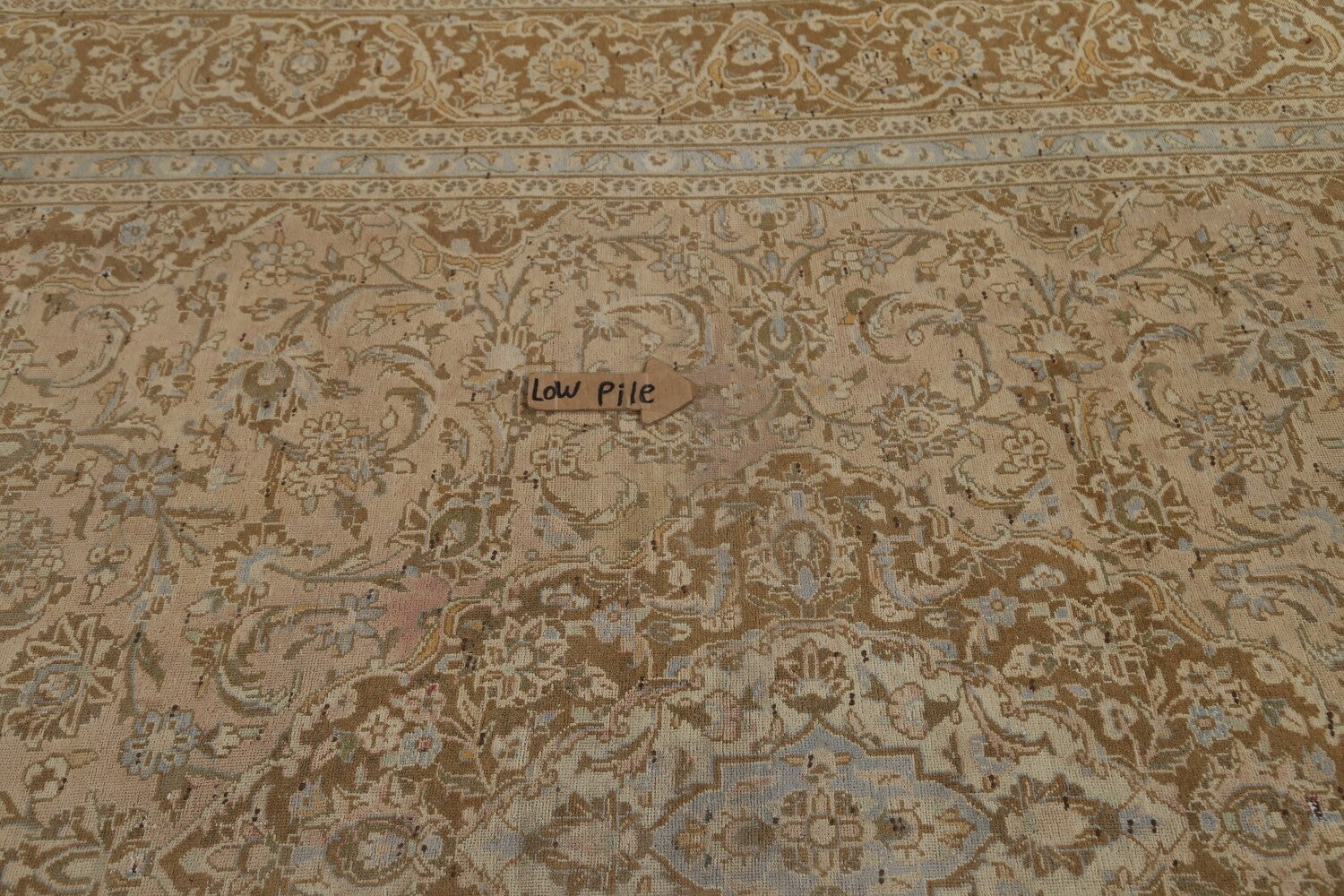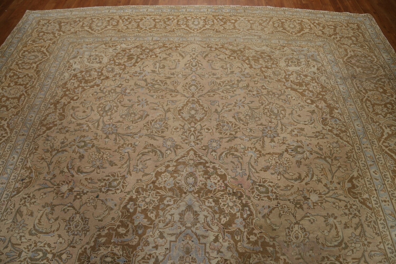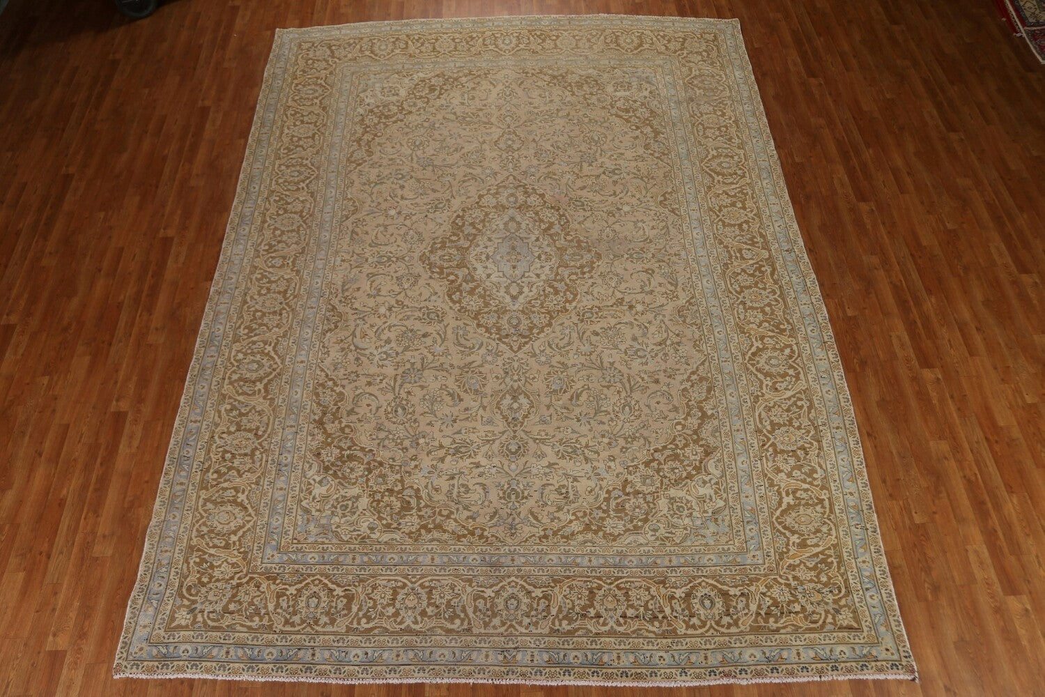 A Beautiful Genuine Persia ( Persia ) Kashan rug is Hand Knotted by skillful weavers in Persia ( Persia ) with 100% Wool Material. This rug is in Very Good (Low Pile-Repair) condition. dimensions are 12' 9'' X 9' 6'' in foot and 389 X 290 in centimeter. the primary color is Peach.