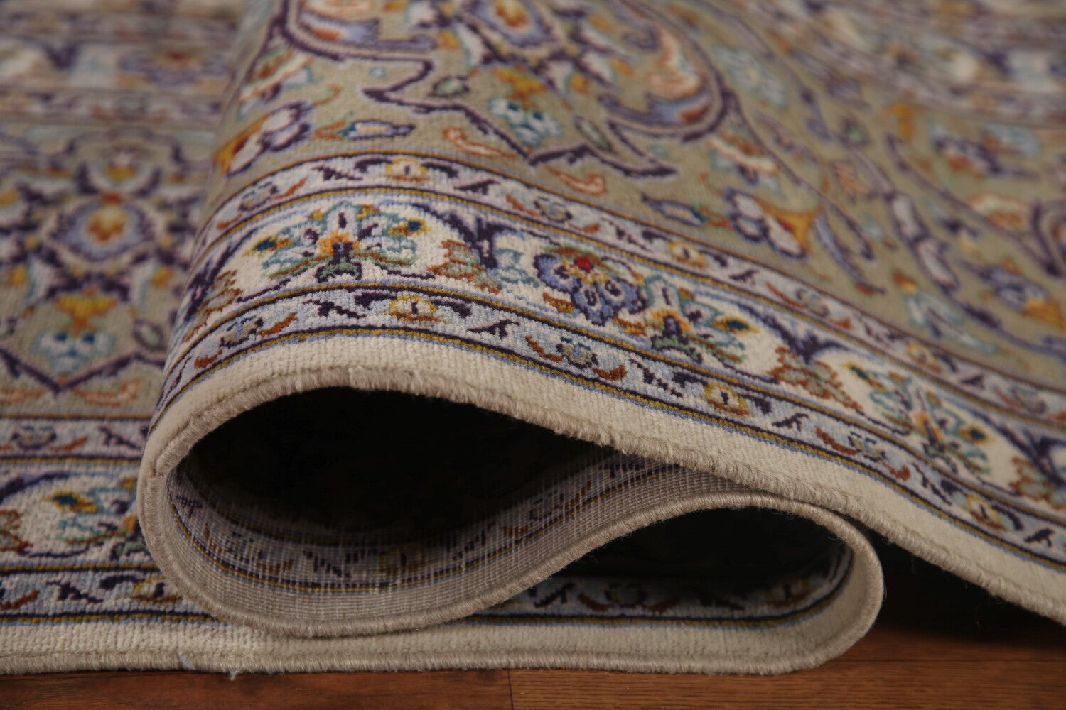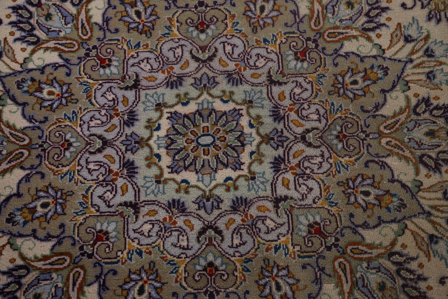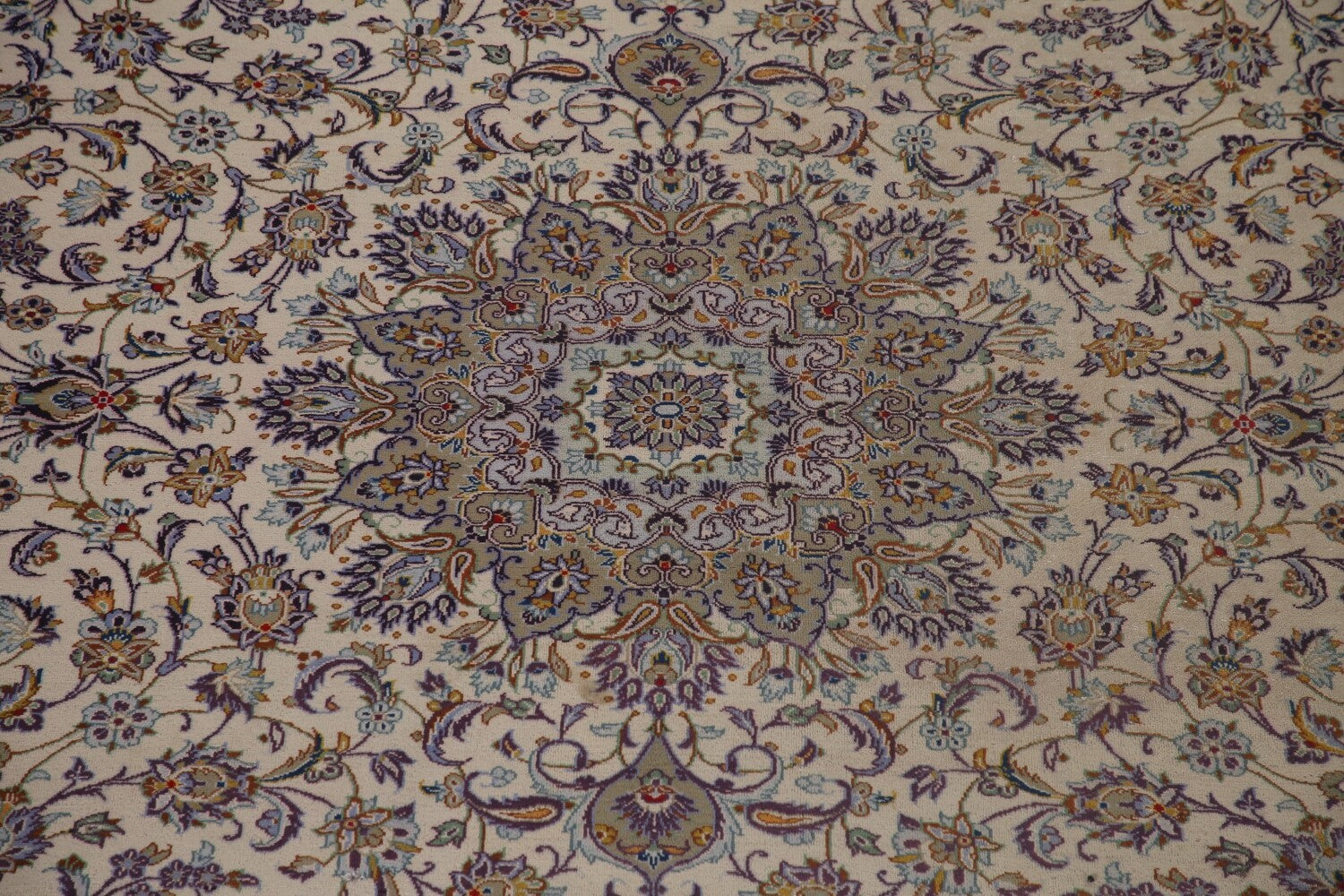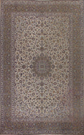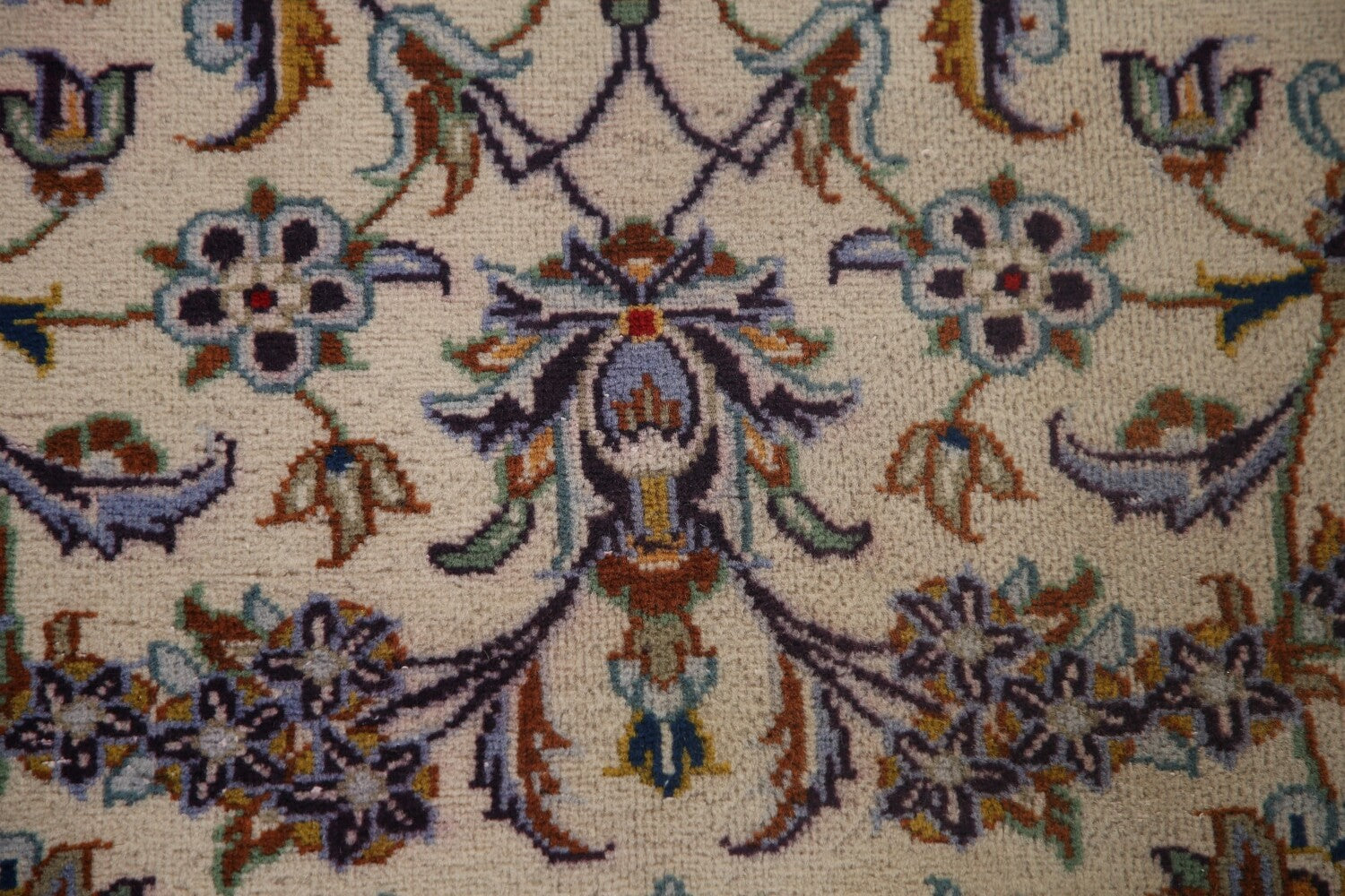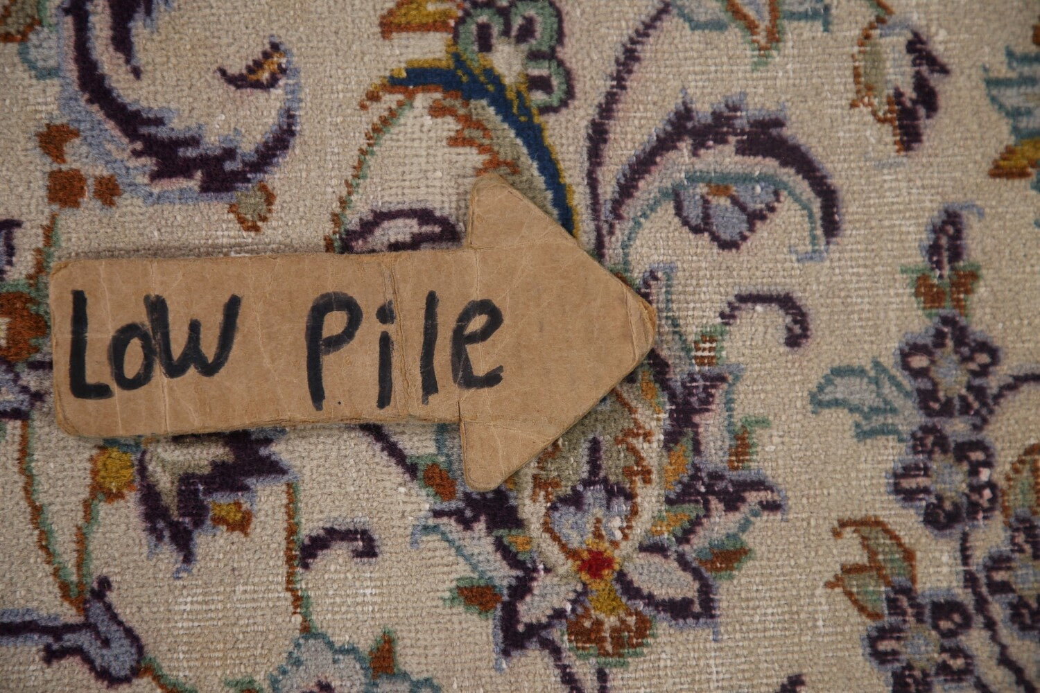 A Beautiful Genuine Persia ( Persia ) Kashan rug is Hand Knotted by skillful weavers in Persia ( Persia ) with 100% Wool Material. This rug is in Very Good (Low Pile-Bleeding) condition. dimensions are 13' 5'' X 9' 9'' in foot and 409 X 297 in centimeter. the primary color is Beige & Ivories.