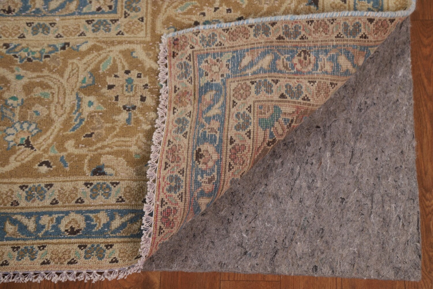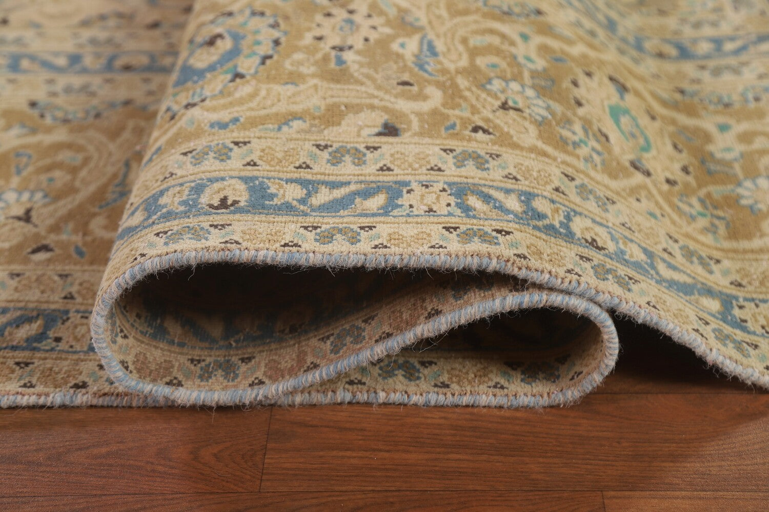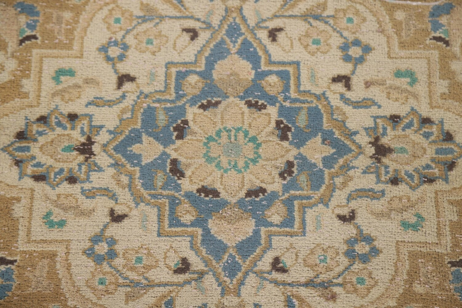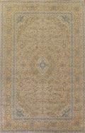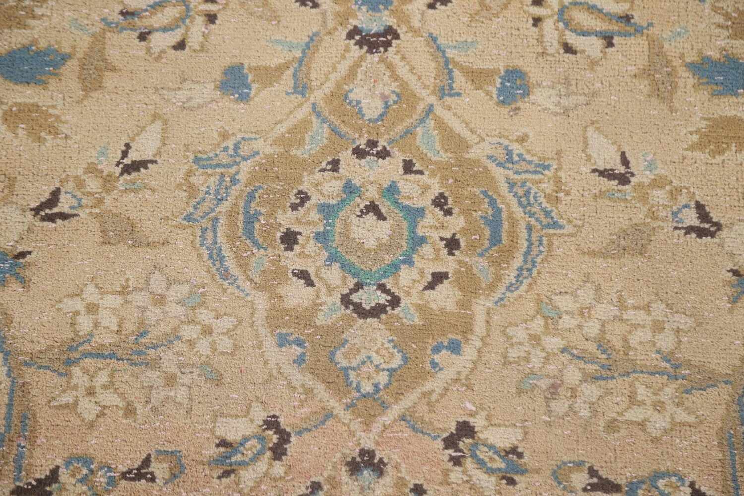 A Beautiful Genuine Persia ( Persia ) Kashan rug is Hand Knotted by skillful weavers in Persia ( Persia ) with 100% Wool Material. This rug is in Very Good (Low Pile) condition. dimensions are 13' 3'' X 9' 8'' in foot and 404 X 295 in centimeter. the primary color is Beige & Ivories.