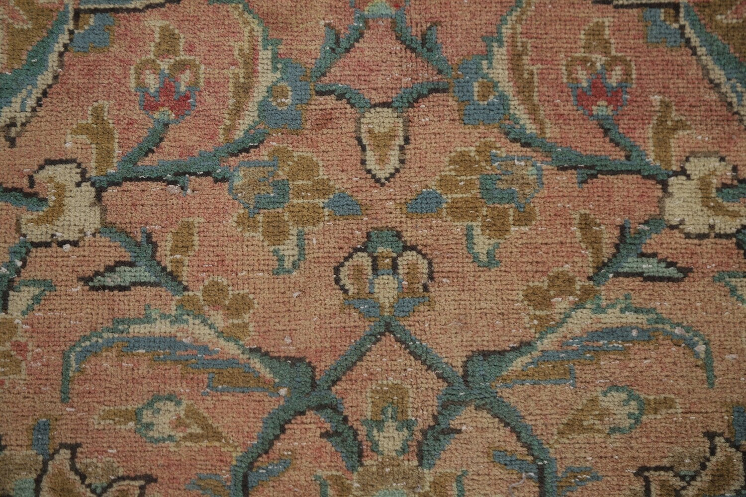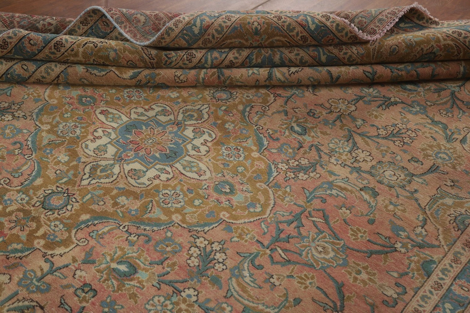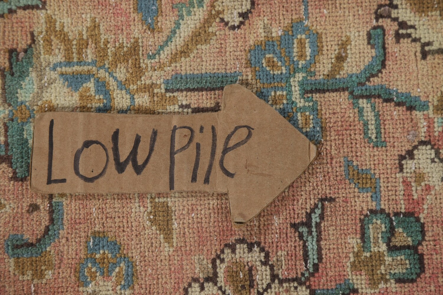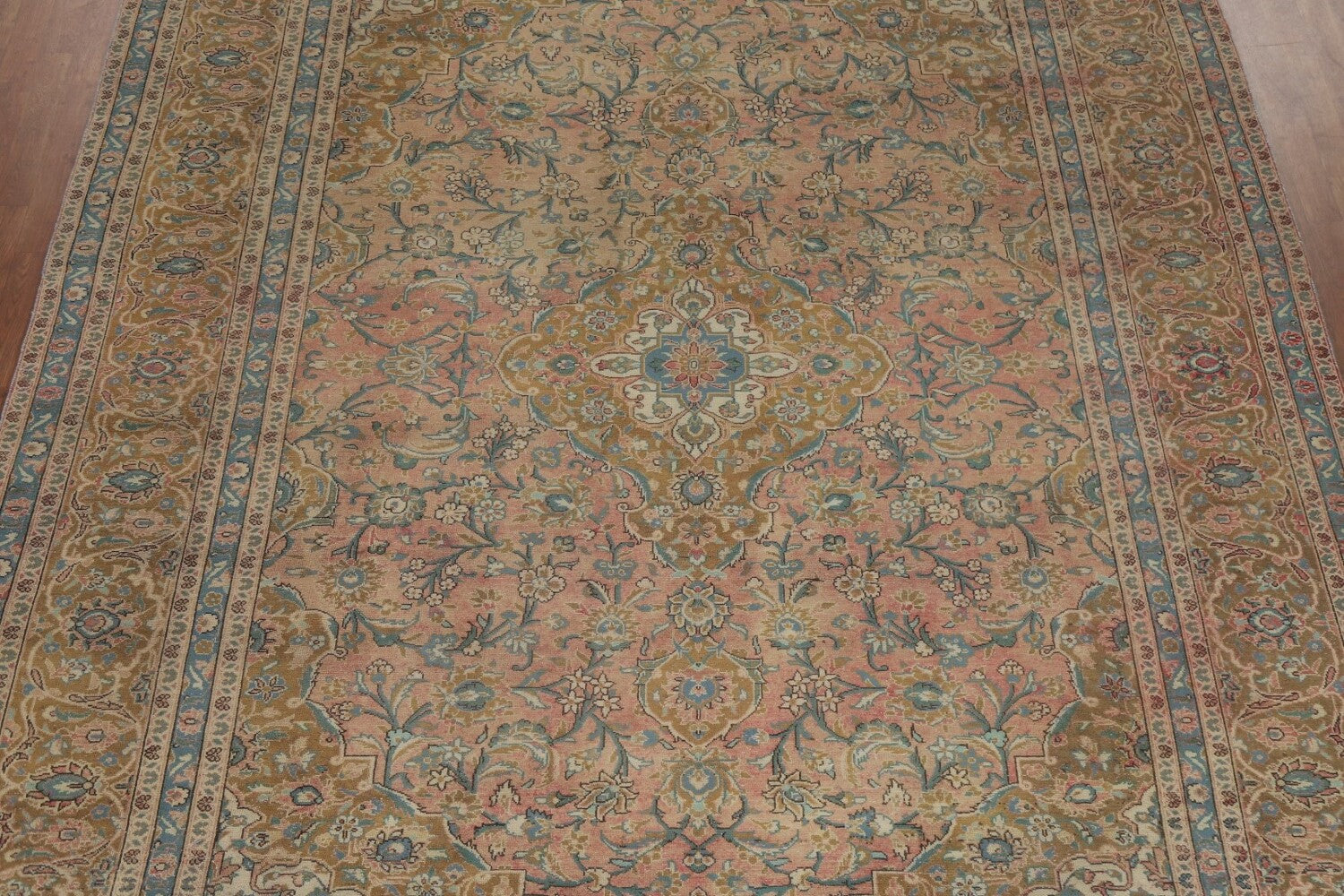A Beautiful Genuine Persia ( Persia ) Kashan rug is Hand Knotted by skillful weavers in Persia ( Persia ) with 100% Wool Material. This rug is in Very Good (Low Pile-Abrash) condition. dimensions are 13' 1'' X 9' 8'' in foot and 399 X 295 in centimeter. the primary color is Pink.