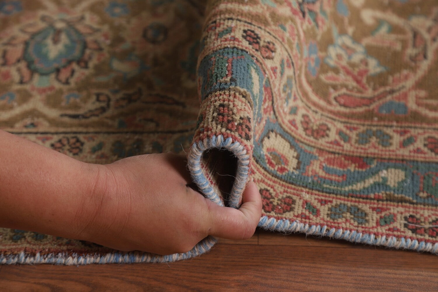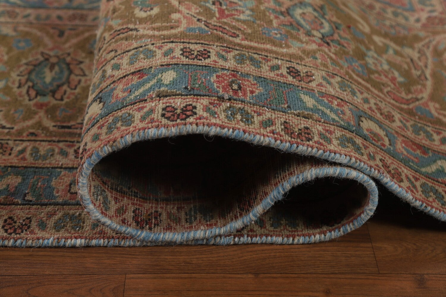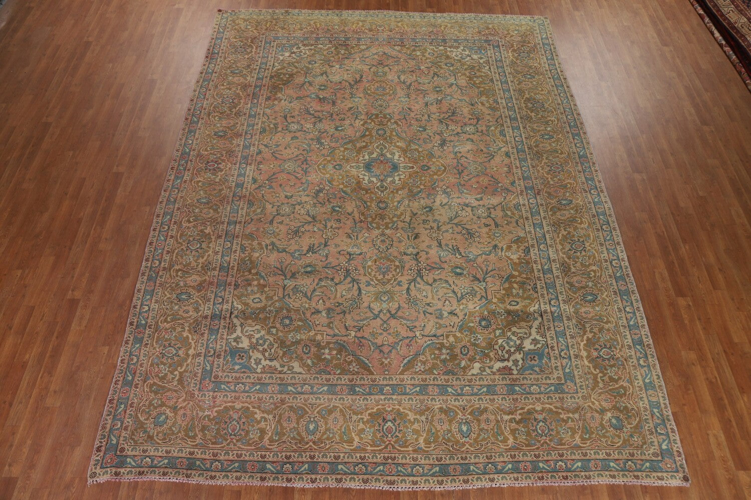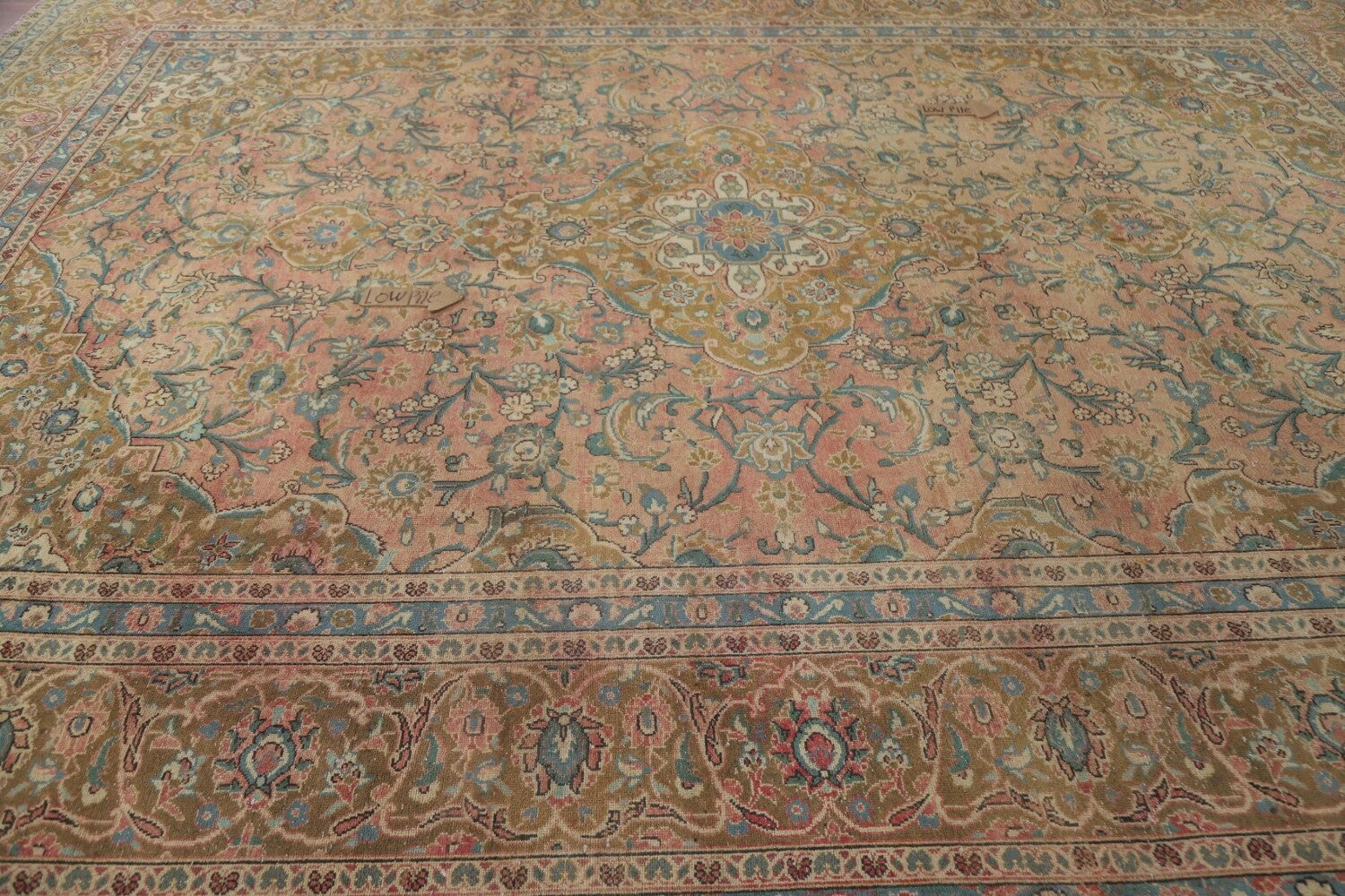 A Beautiful Genuine Persia ( Persia ) Kashan rug is Hand Knotted by skillful weavers in Persia ( Persia ) with 100% Wool Material. This rug is in Very Good (Low Pile-Abrash) condition. dimensions are 13' 1'' X 9' 8'' in foot and 399 X 295 in centimeter. the primary color is Pink.