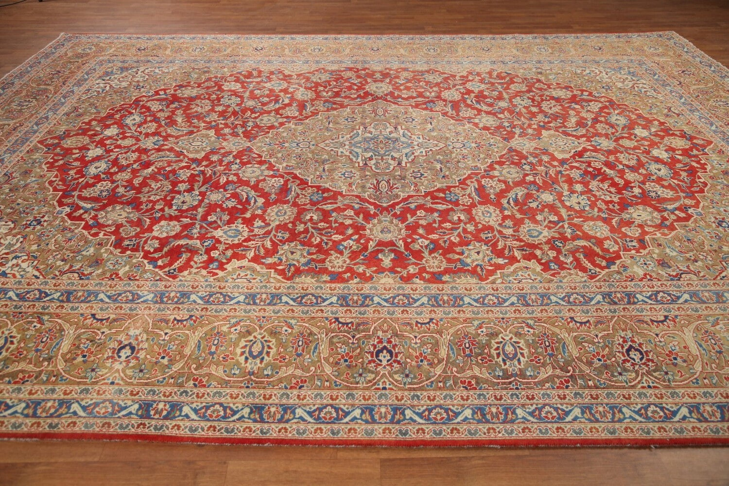 A Beautiful Genuine Persia ( Persia ) Kashan rug is Hand Knotted by skillful weavers in Persia ( Persia ) with 100% Wool Material. This rug is in Very Good (Abrash) condition. dimensions are 13' 4'' X 9' 9'' in foot and 406 X 297 in centimeter. the primary color is Red.