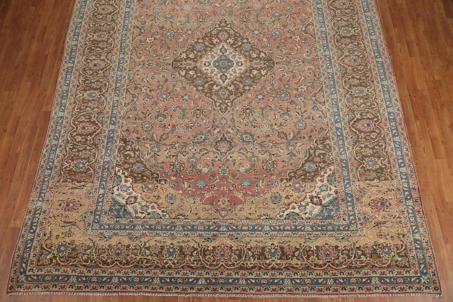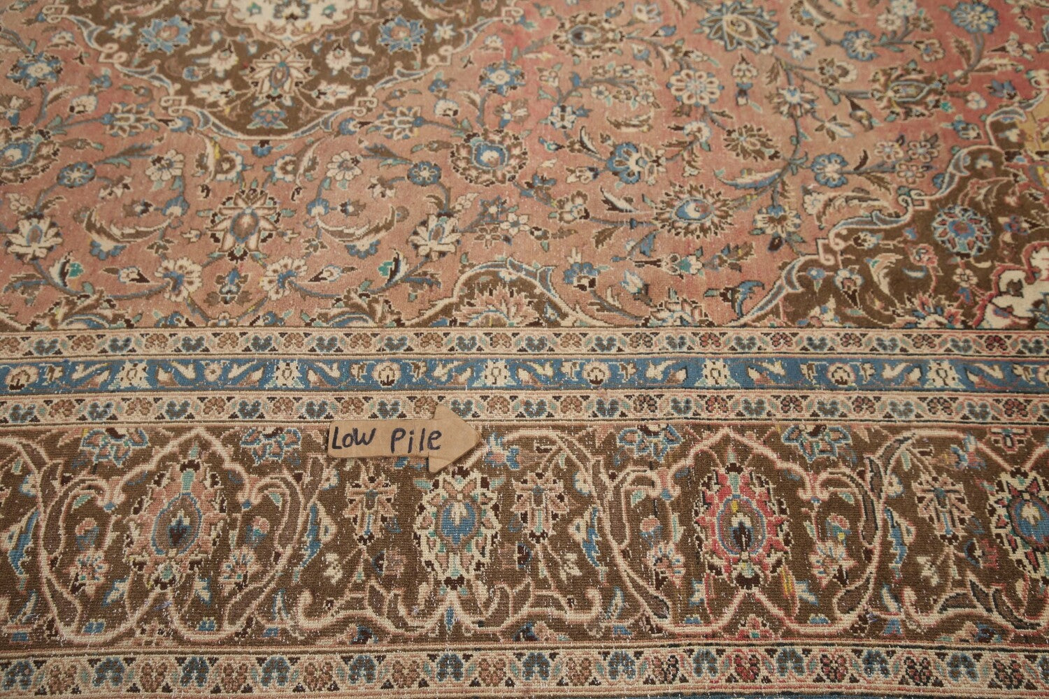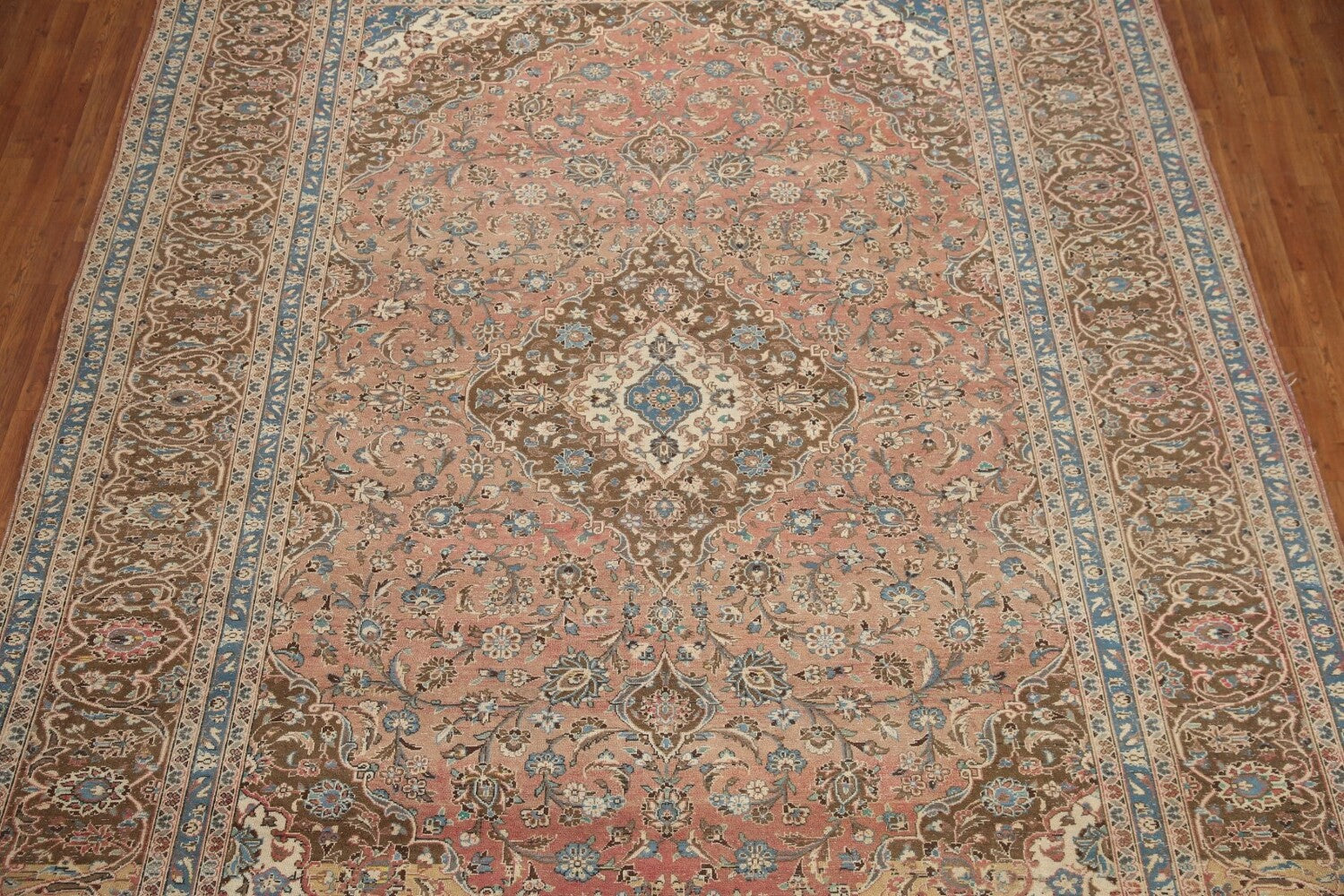 A Beautiful Genuine Persia ( Persia ) Kashan rug is Hand Knotted by skillful weavers in Persia ( Persia ) with 100% Wool Material. This rug is in Very Good (Low Pile-Abrash) condition. dimensions are 12' 11'' X 9' 8'' in foot and 394 X 295 in centimeter. the primary color is Pink.