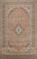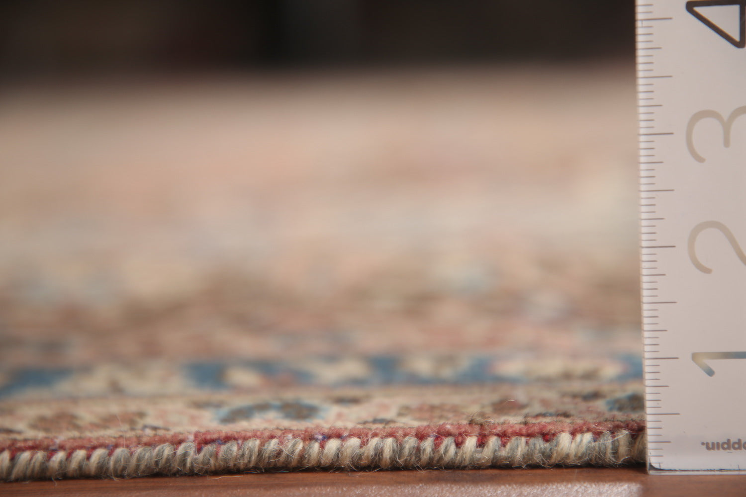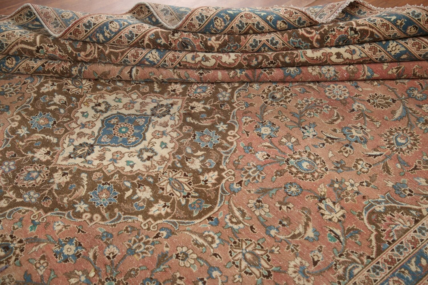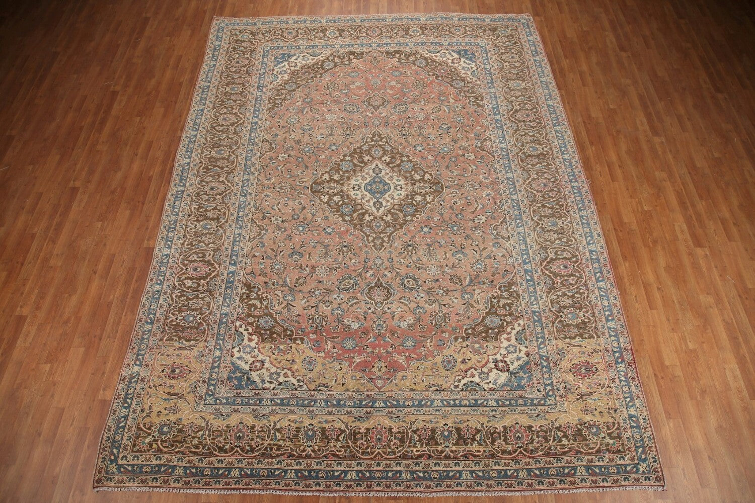 A Beautiful Genuine Persia ( Persia ) Kashan rug is Hand Knotted by skillful weavers in Persia ( Persia ) with 100% Wool Material. This rug is in Very Good (Low Pile-Abrash) condition. dimensions are 12' 11'' X 9' 8'' in foot and 394 X 295 in centimeter. the primary color is Pink.