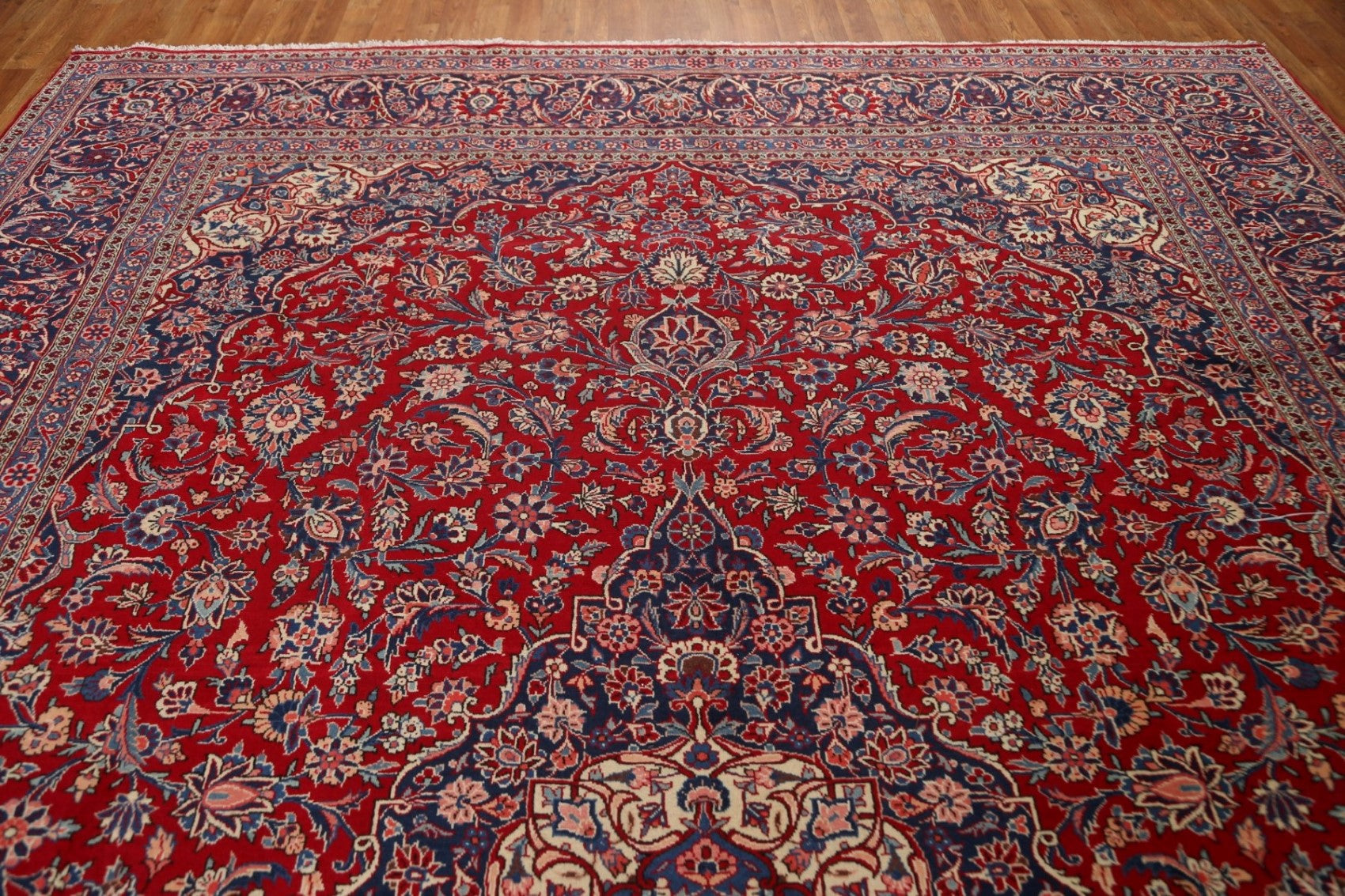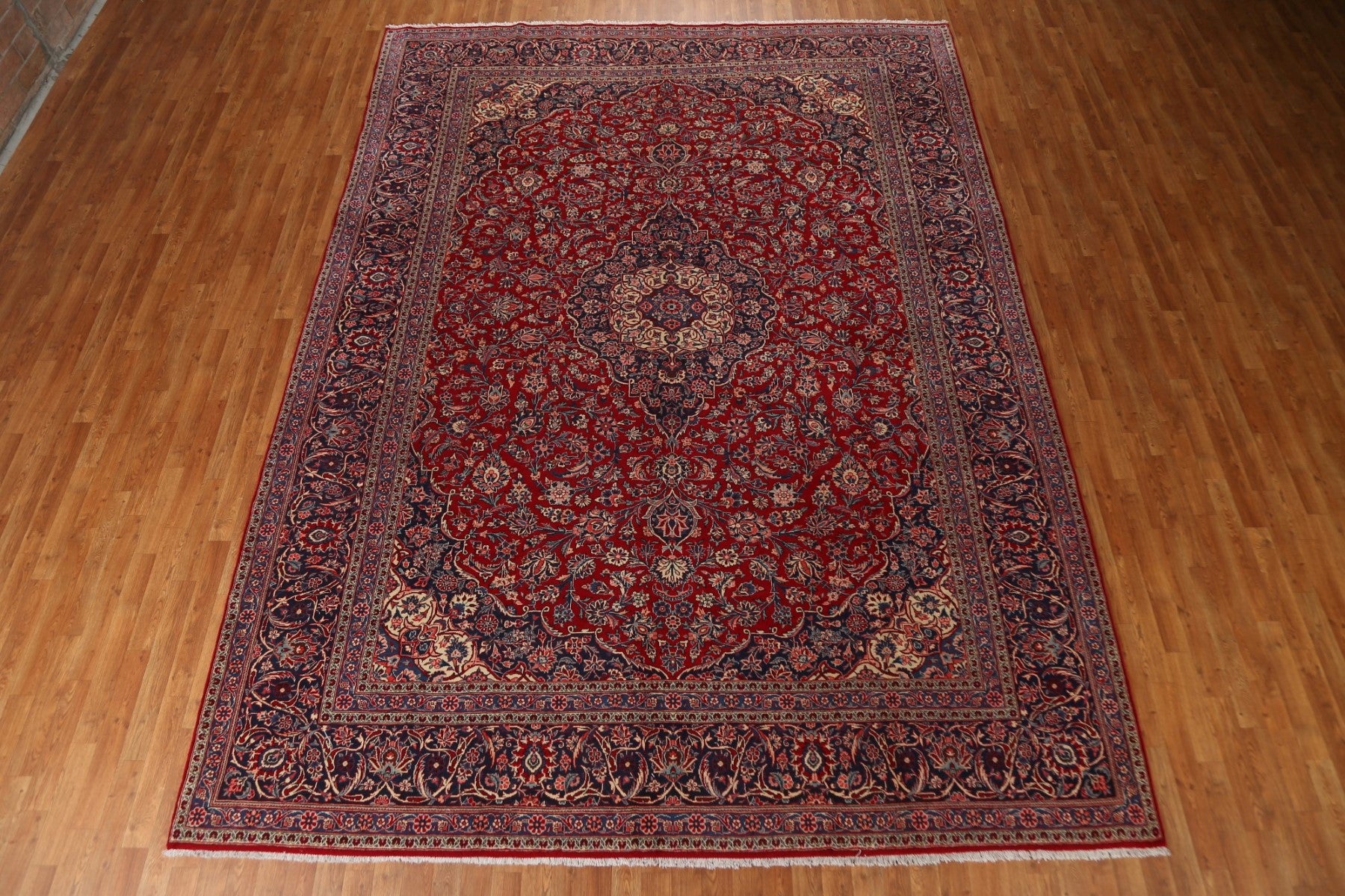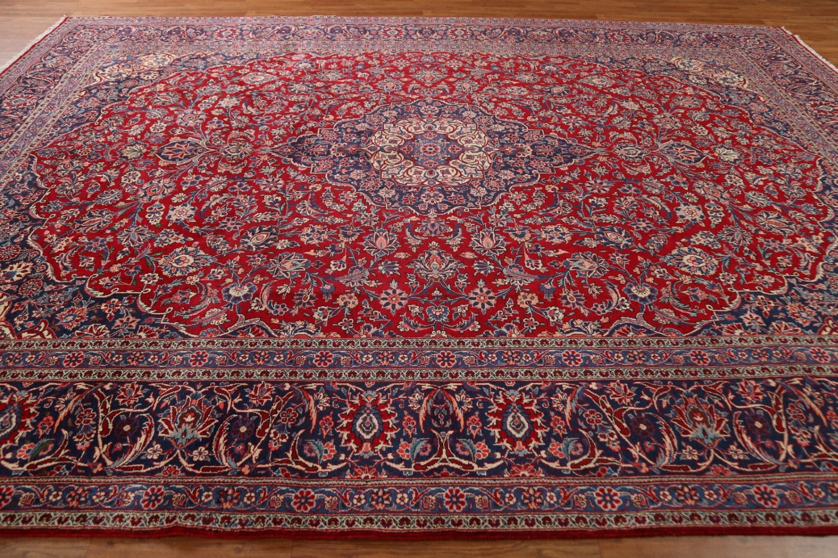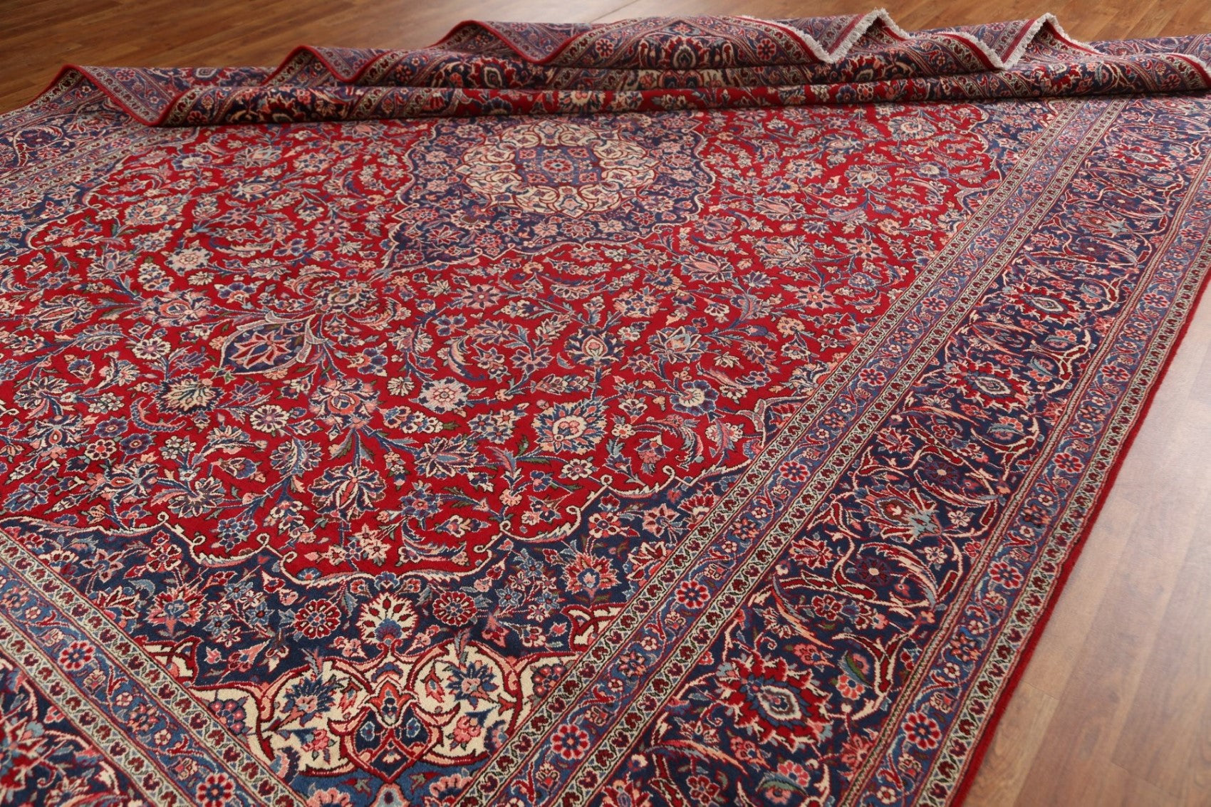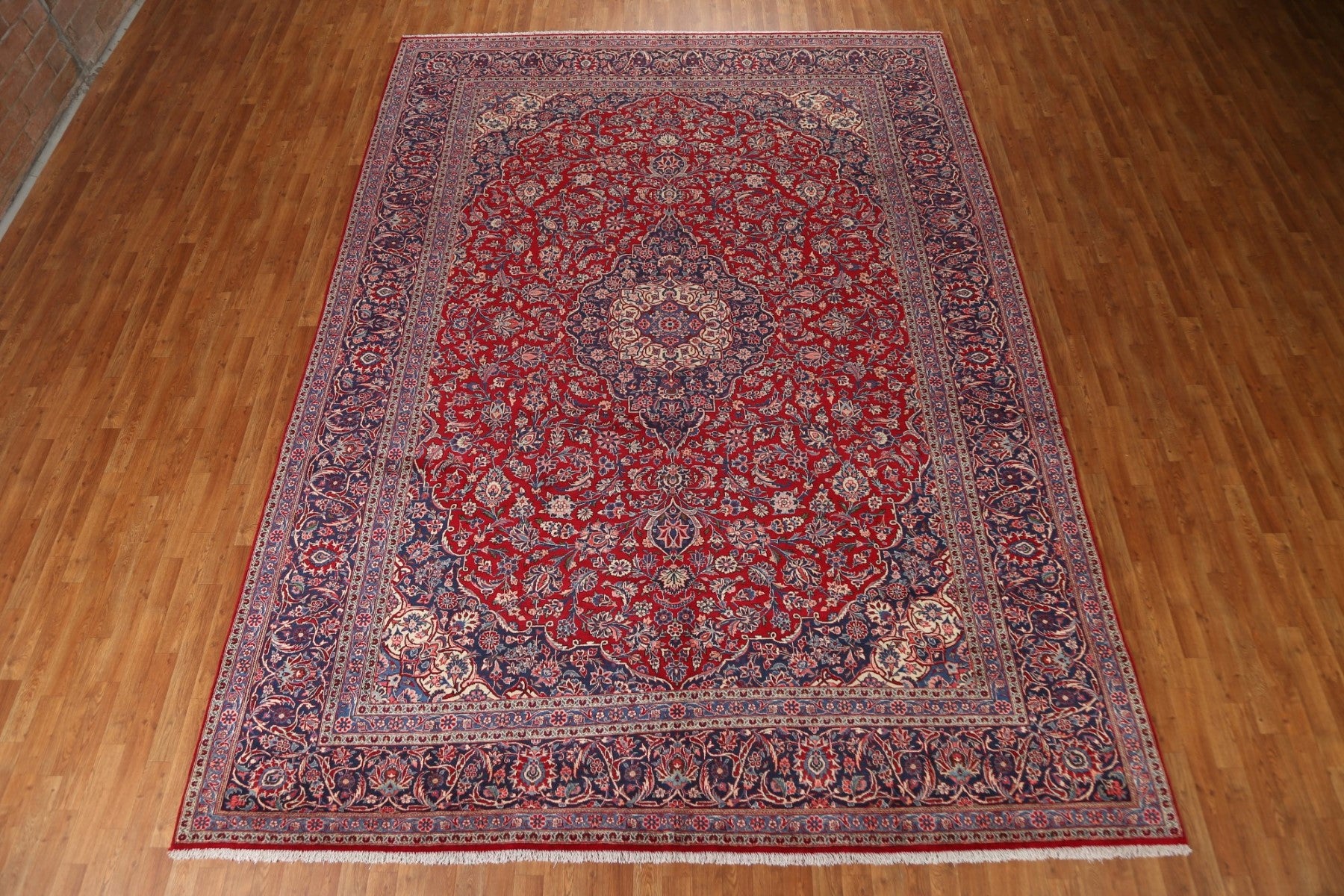 A Beautiful Genuine Persia ( Persia ) Kashan rug is Hand Knotted by skillful weavers in Persia ( Persia ) with 100% Kork Wool Material. This rug is in Very Good condition. dimensions are 13' 4'' X 9' 7'' in foot and 406 X 292 in centimeter. the primary color is Red.