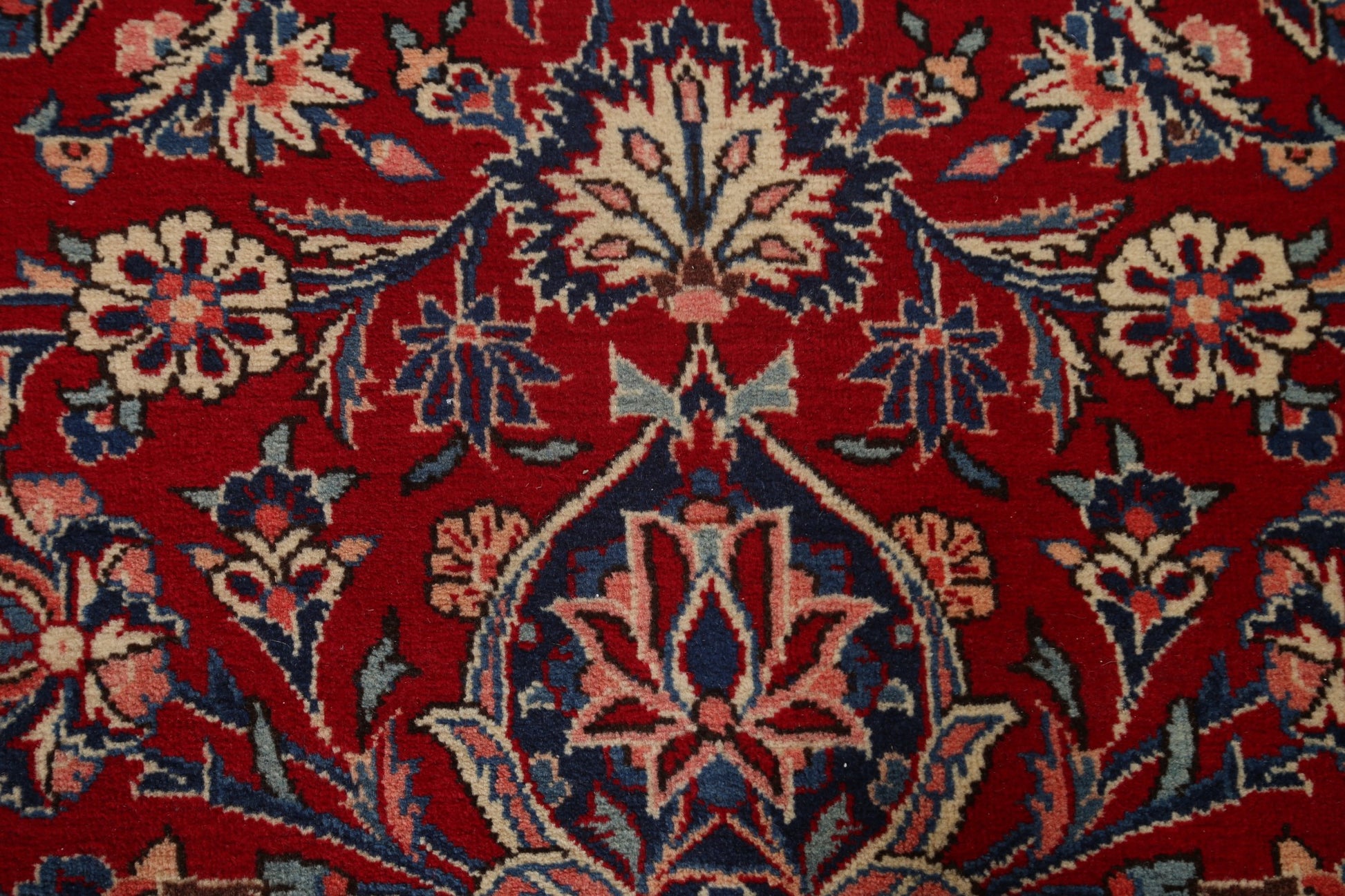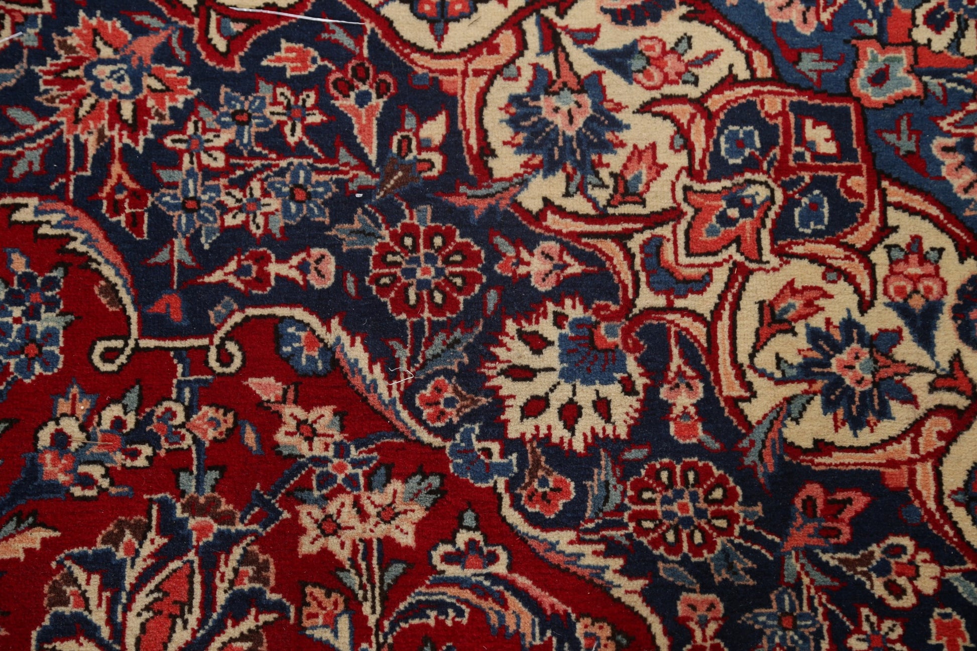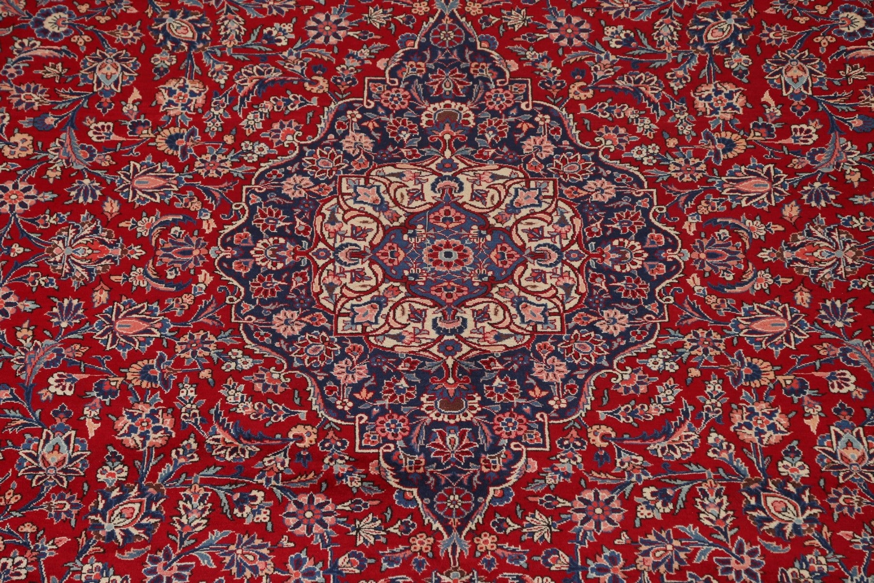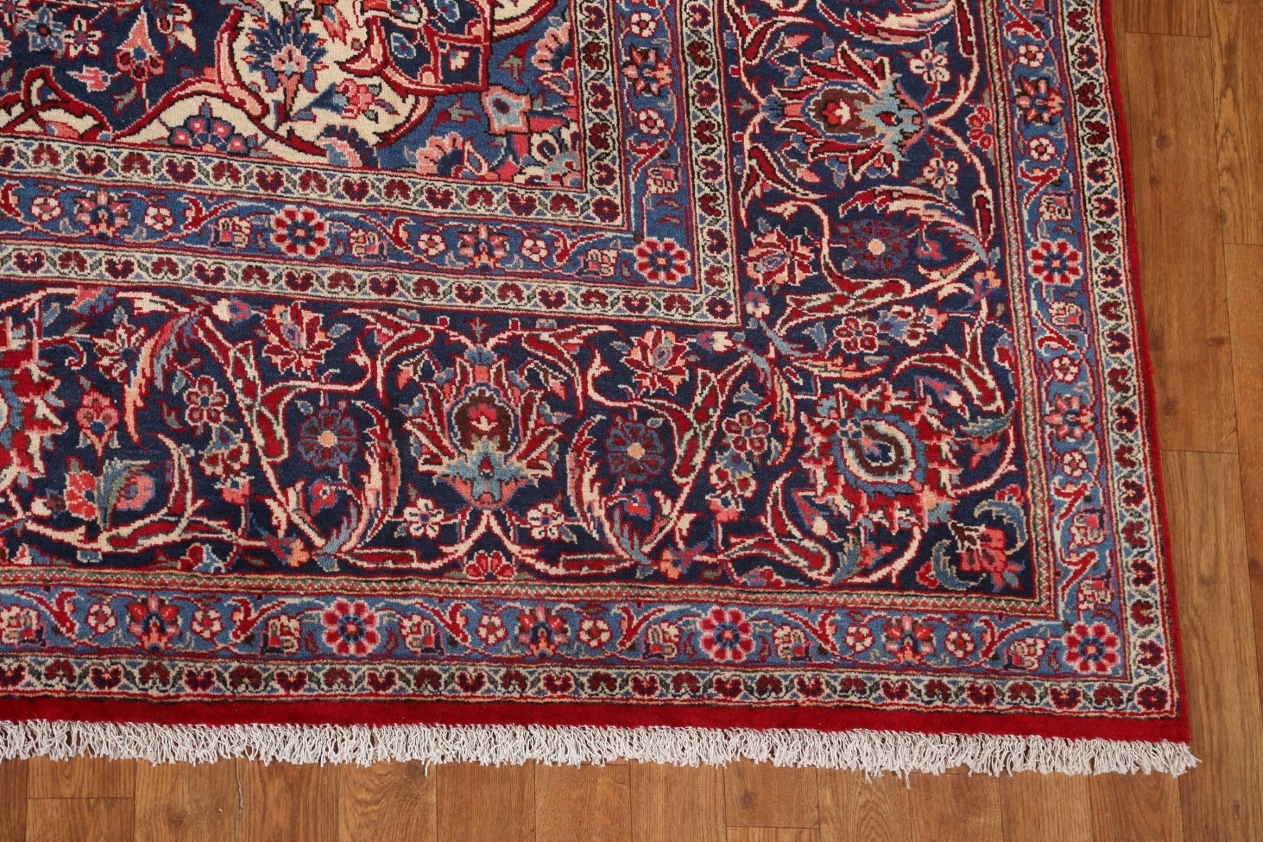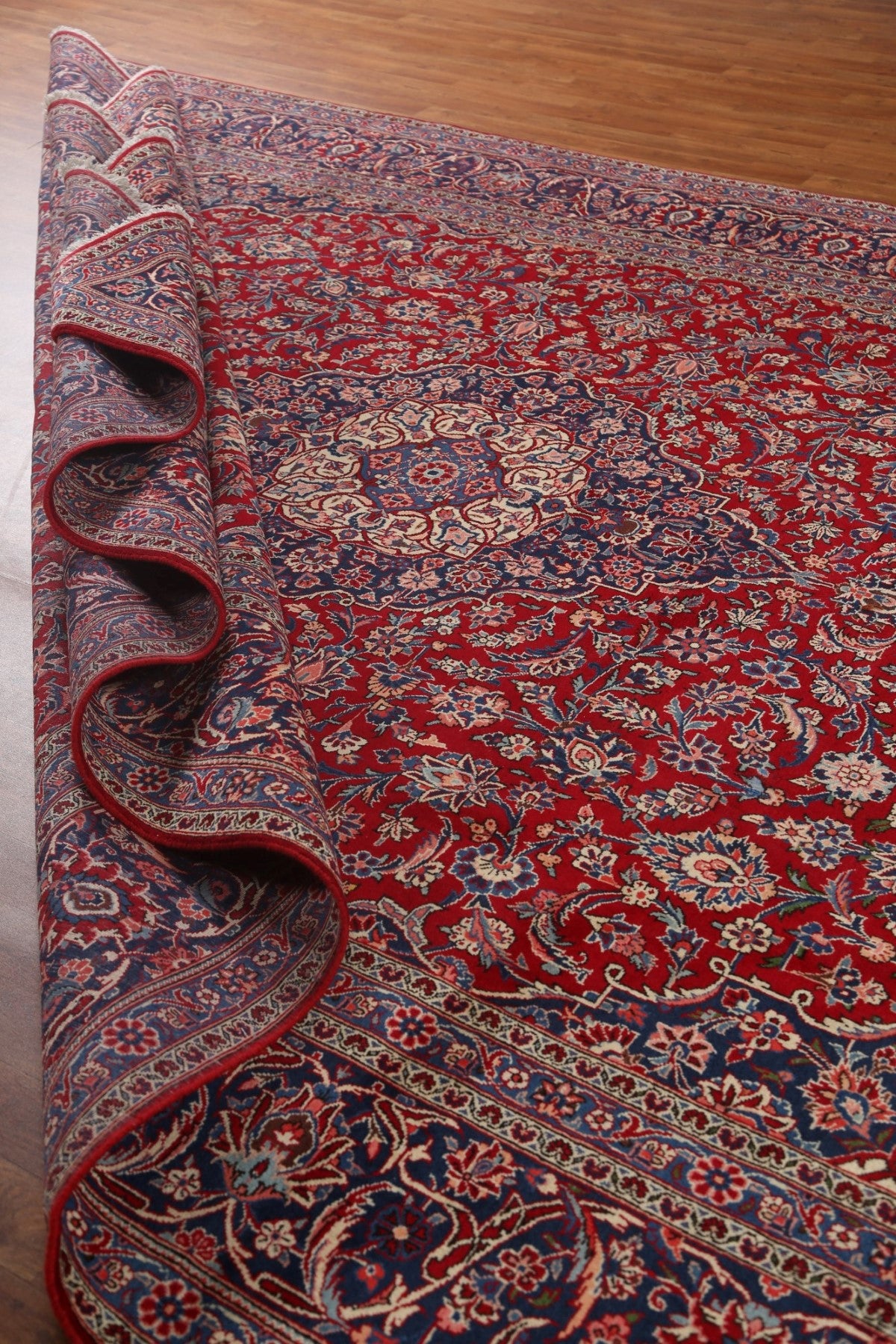 A Beautiful Genuine Persia ( Persia ) Kashan rug is Hand Knotted by skillful weavers in Persia ( Persia ) with 100% Kork Wool Material. This rug is in Very Good condition. dimensions are 13' 4'' X 9' 7'' in foot and 406 X 292 in centimeter. the primary color is Red.