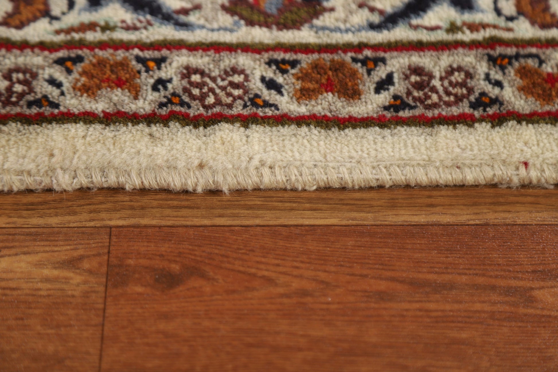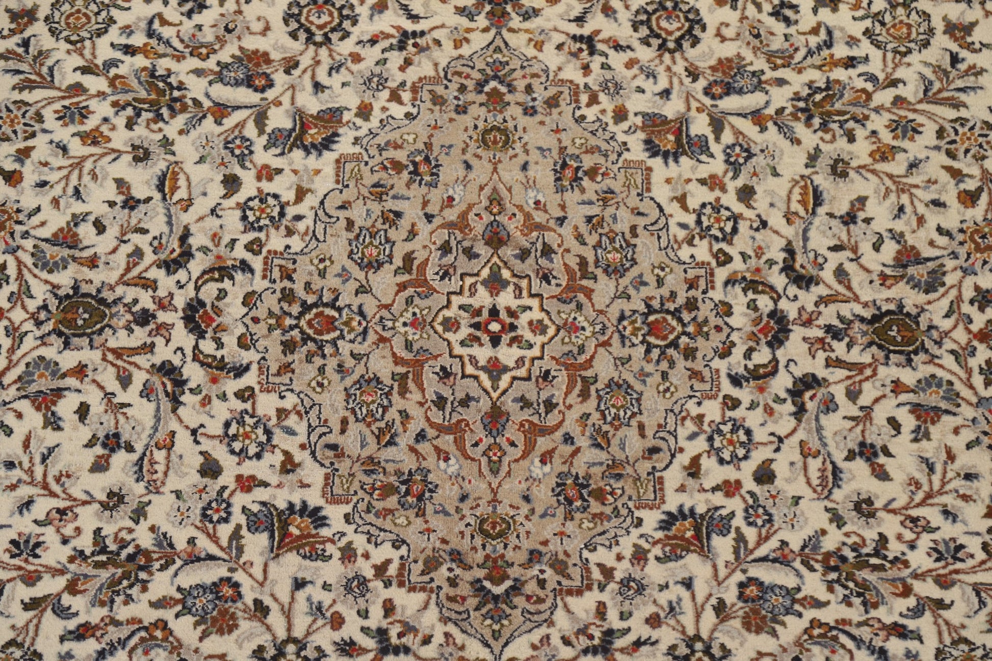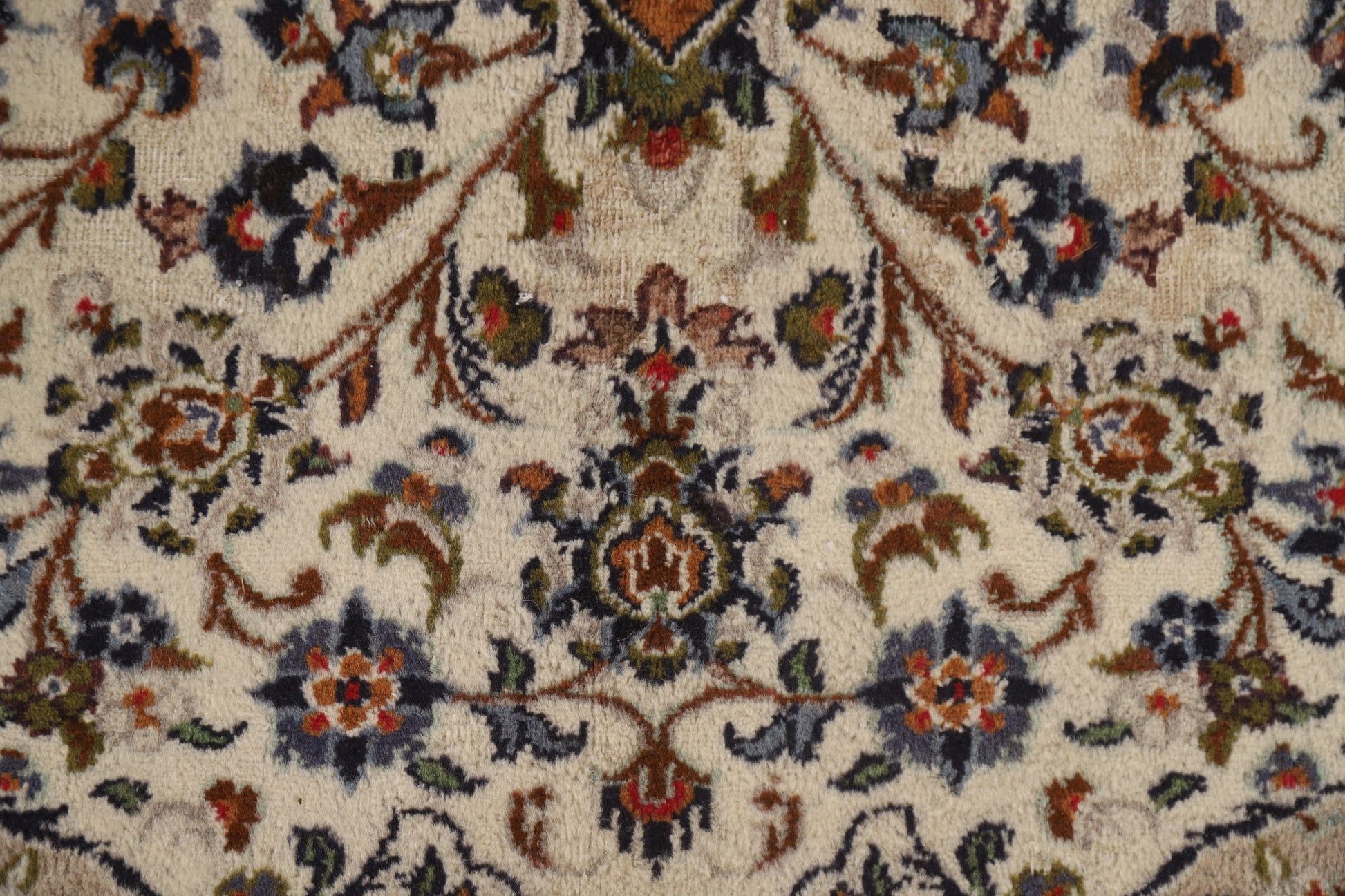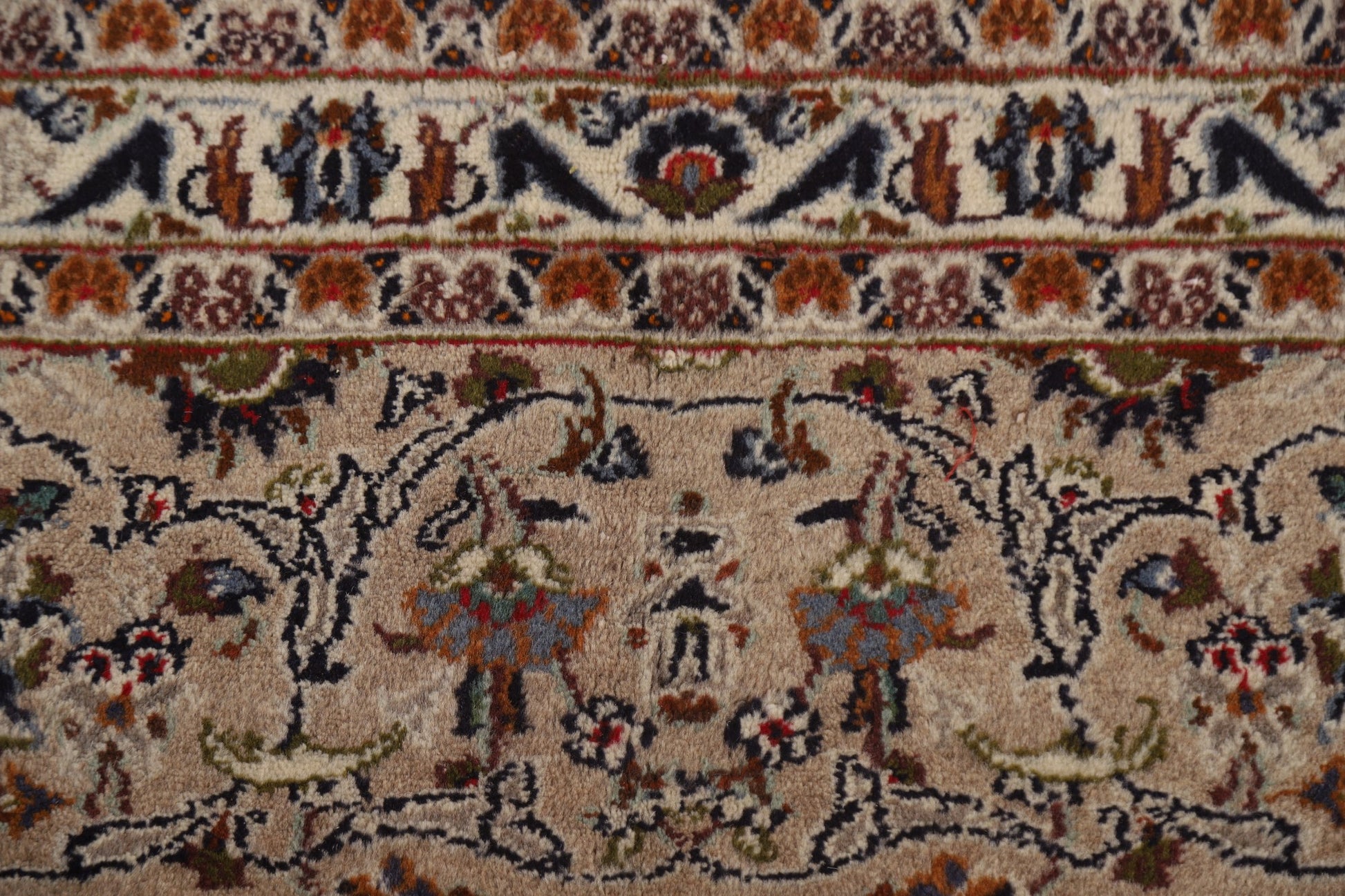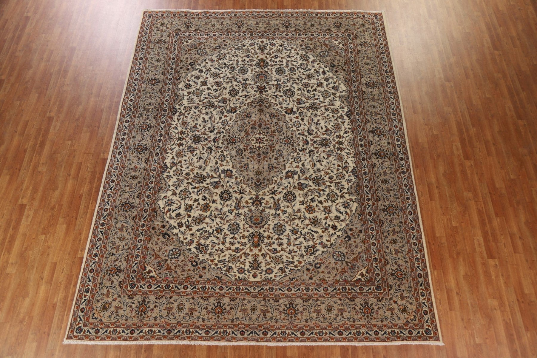 A Beautiful Genuine Persia ( Persia ) Kashan rug is Hand Knotted by skillful weavers in Persia ( Persia ) with 100% Wool Material. This rug is in Good (Low Pile) condition. dimensions are 12' 6'' X 9' 9'' in foot and 381 X 297 in centimeter. the primary color is Beige & Ivories.
