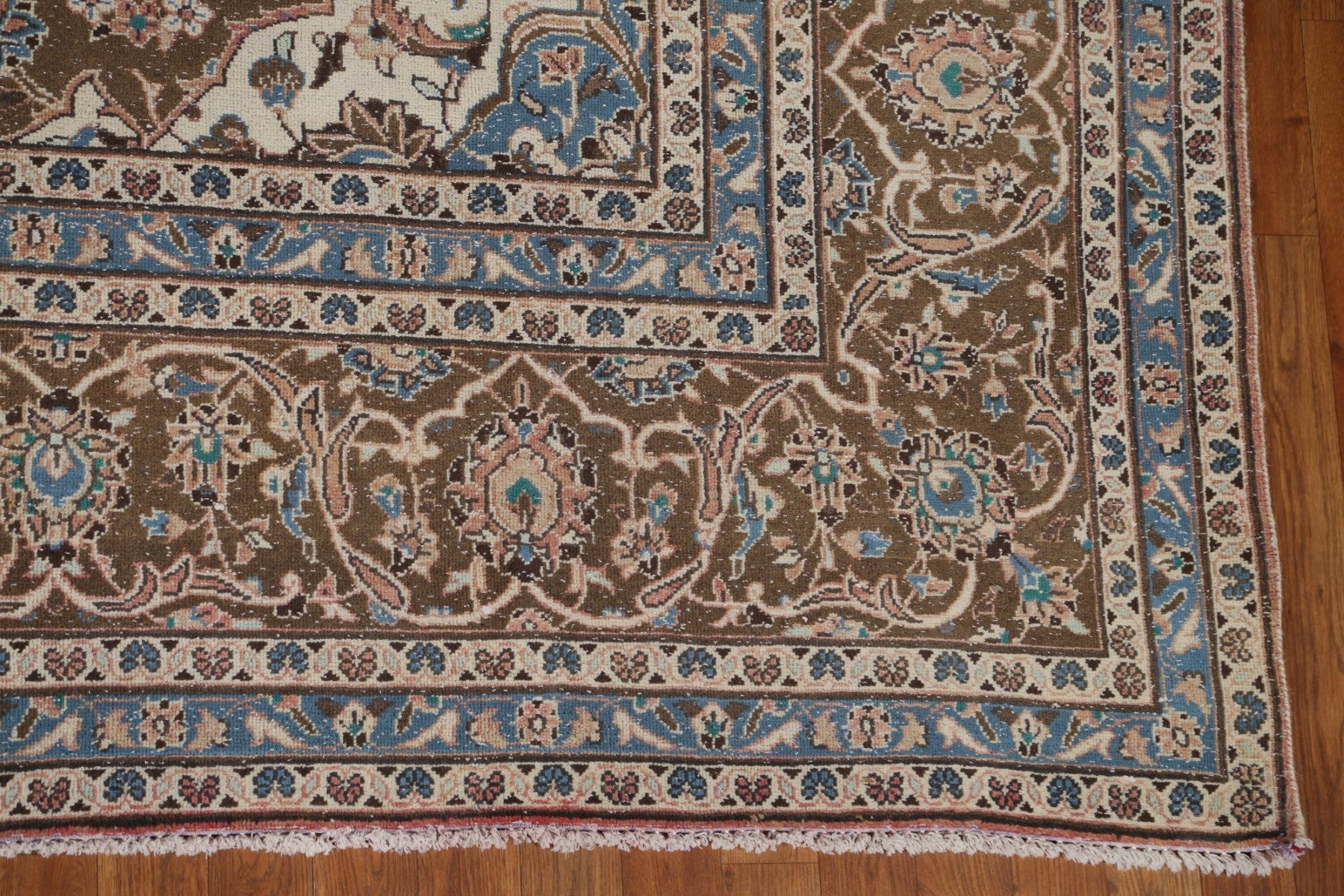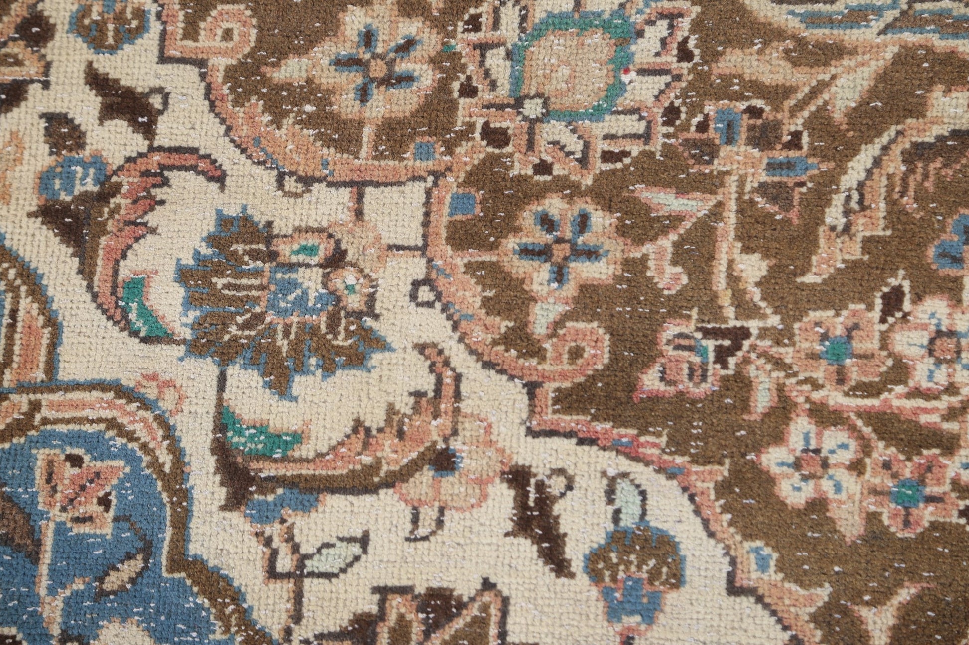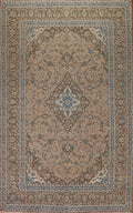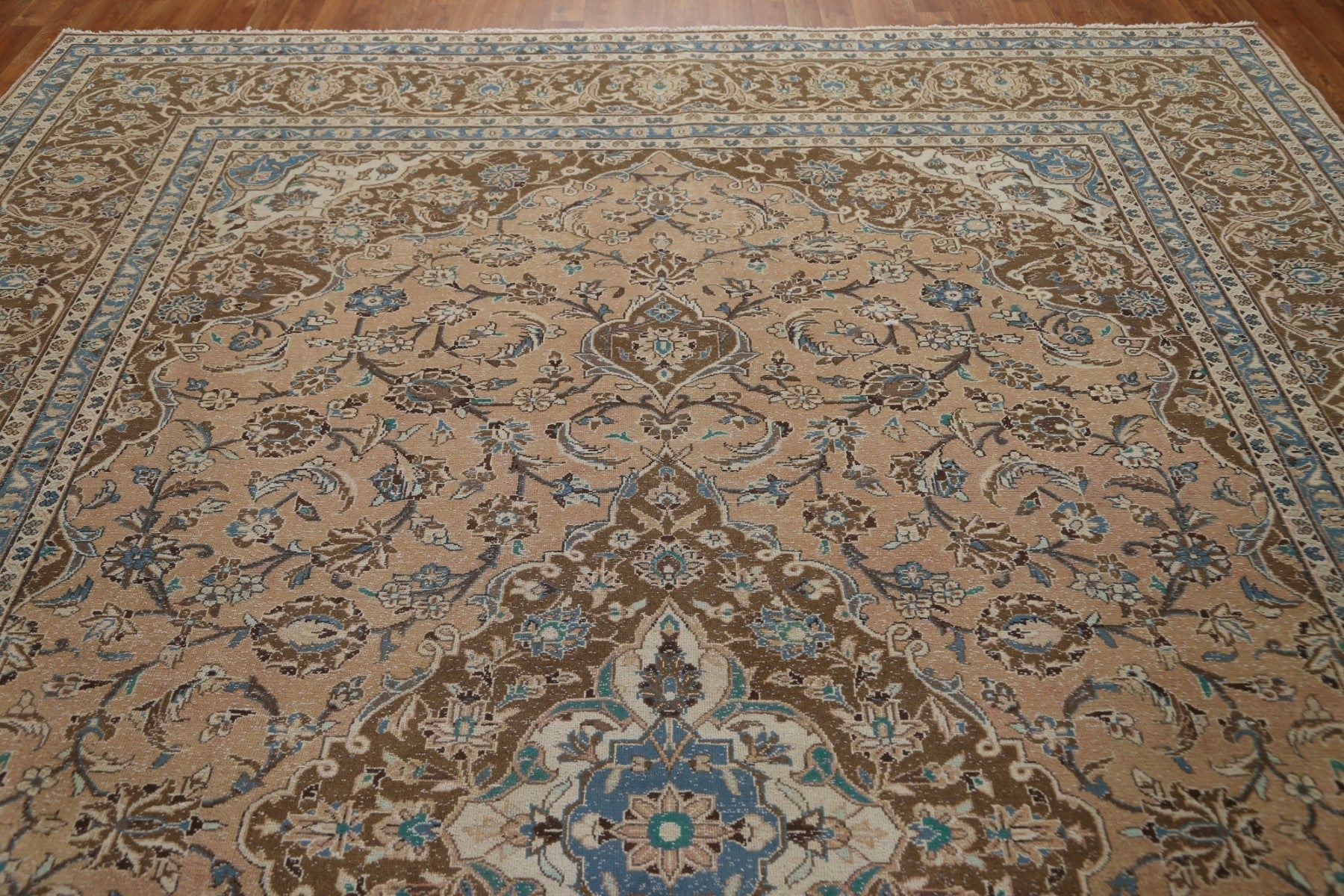 A Beautiful Genuine Persia ( Persia ) Kashan rug is Hand Knotted by skillful weavers in Persia ( Persia ) with 100% Wool Material. This rug is in Very Good (Evenly Low Pile) condition. dimensions are 13' 9'' X 9' 7'' in foot and 419 X 292 in centimeter. the primary color is Peach.