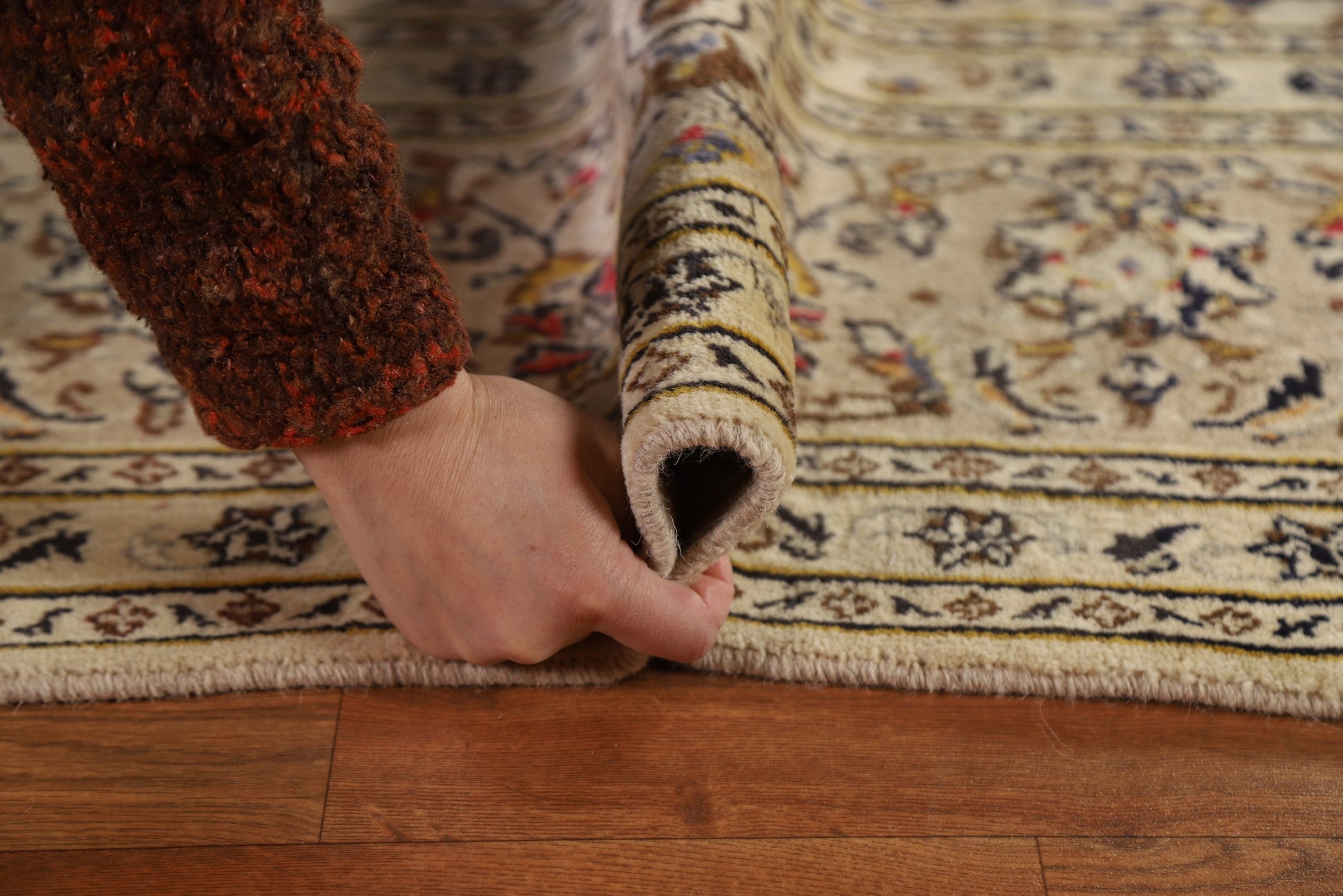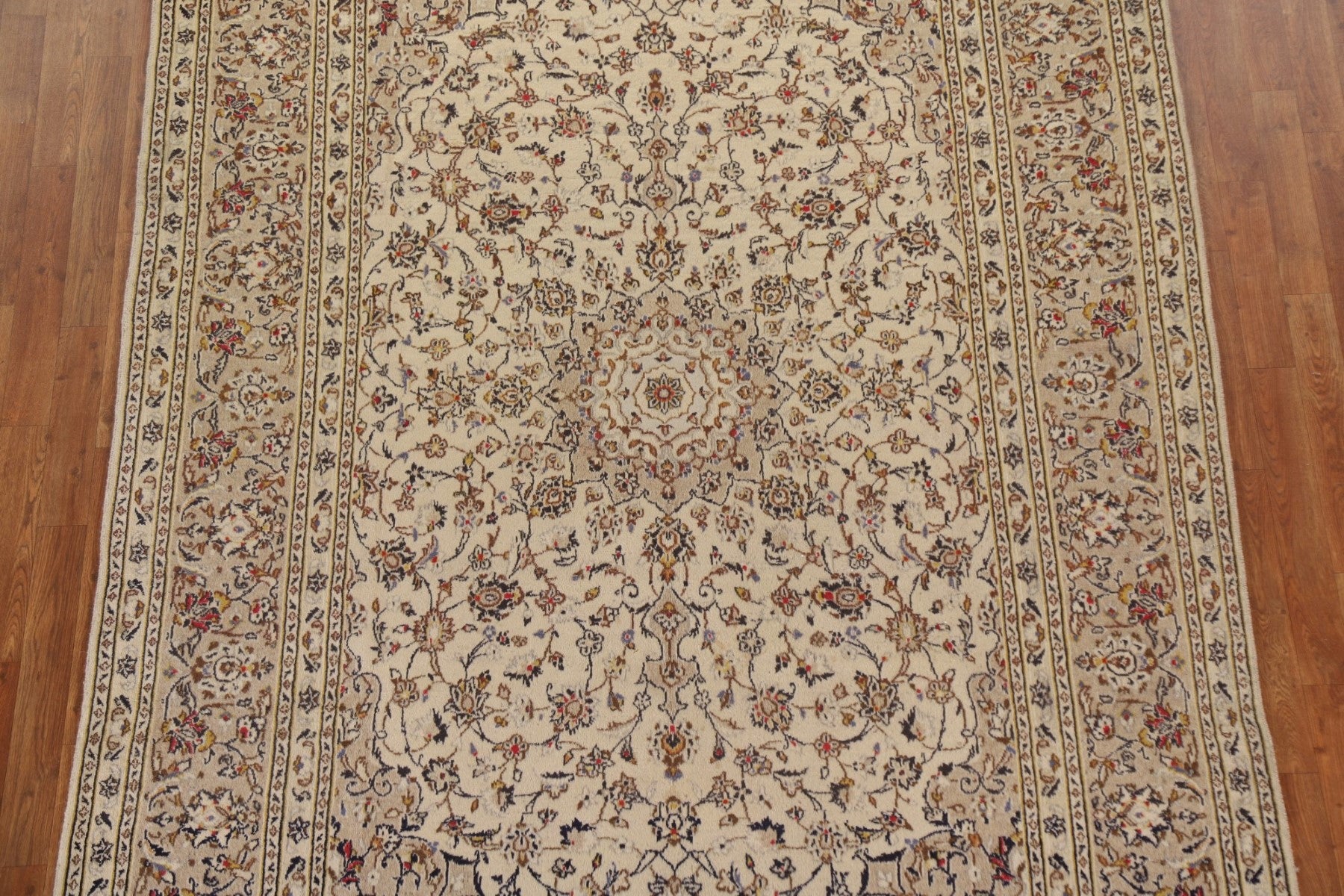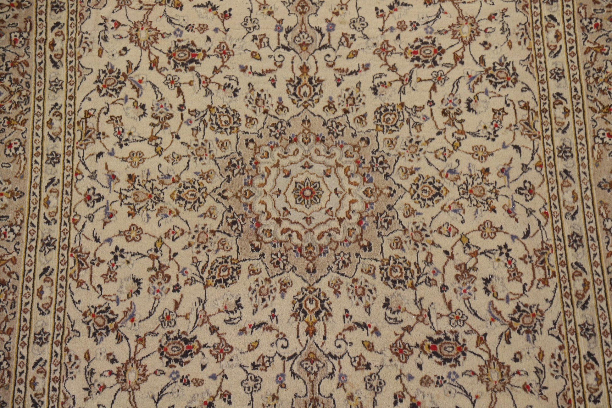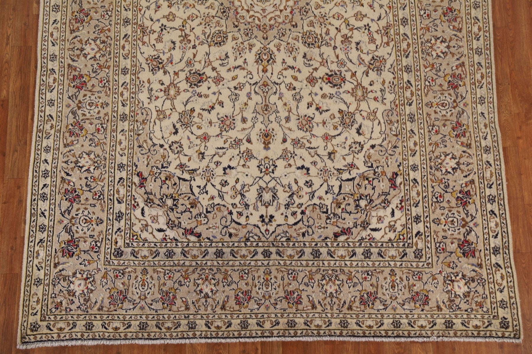 A Beautiful Genuine Persia ( Persia ) Kashan rug is Hand Knotted by skillful weavers in Persia ( Persia ) with 100% Wool Material. This rug is in Very Good condition. dimensions are 10' 0'' X 6' 5'' in foot and 305 X 196 in centimeter. the primary color is Beige & Ivories.