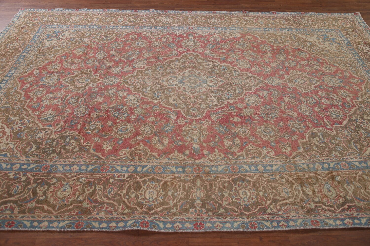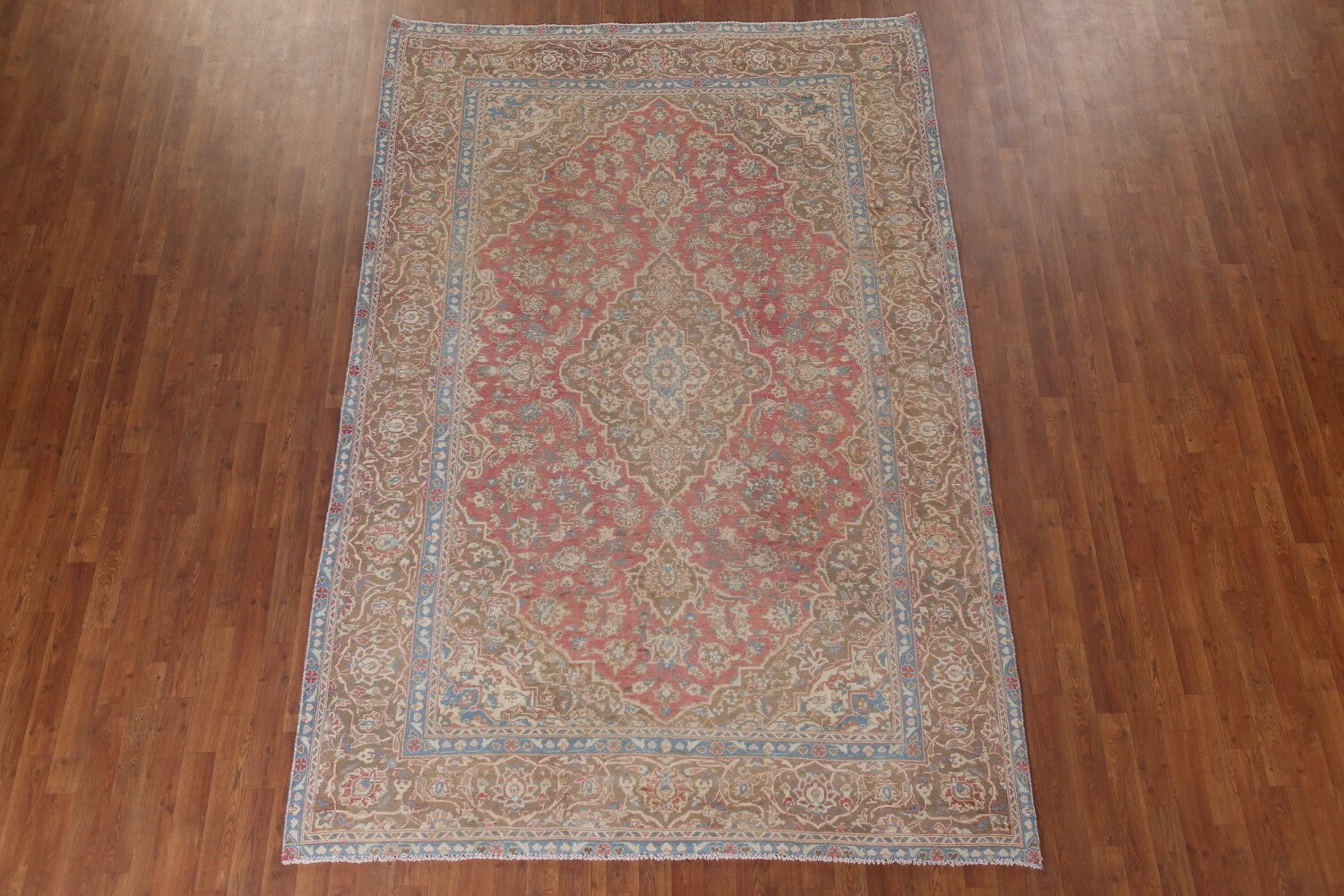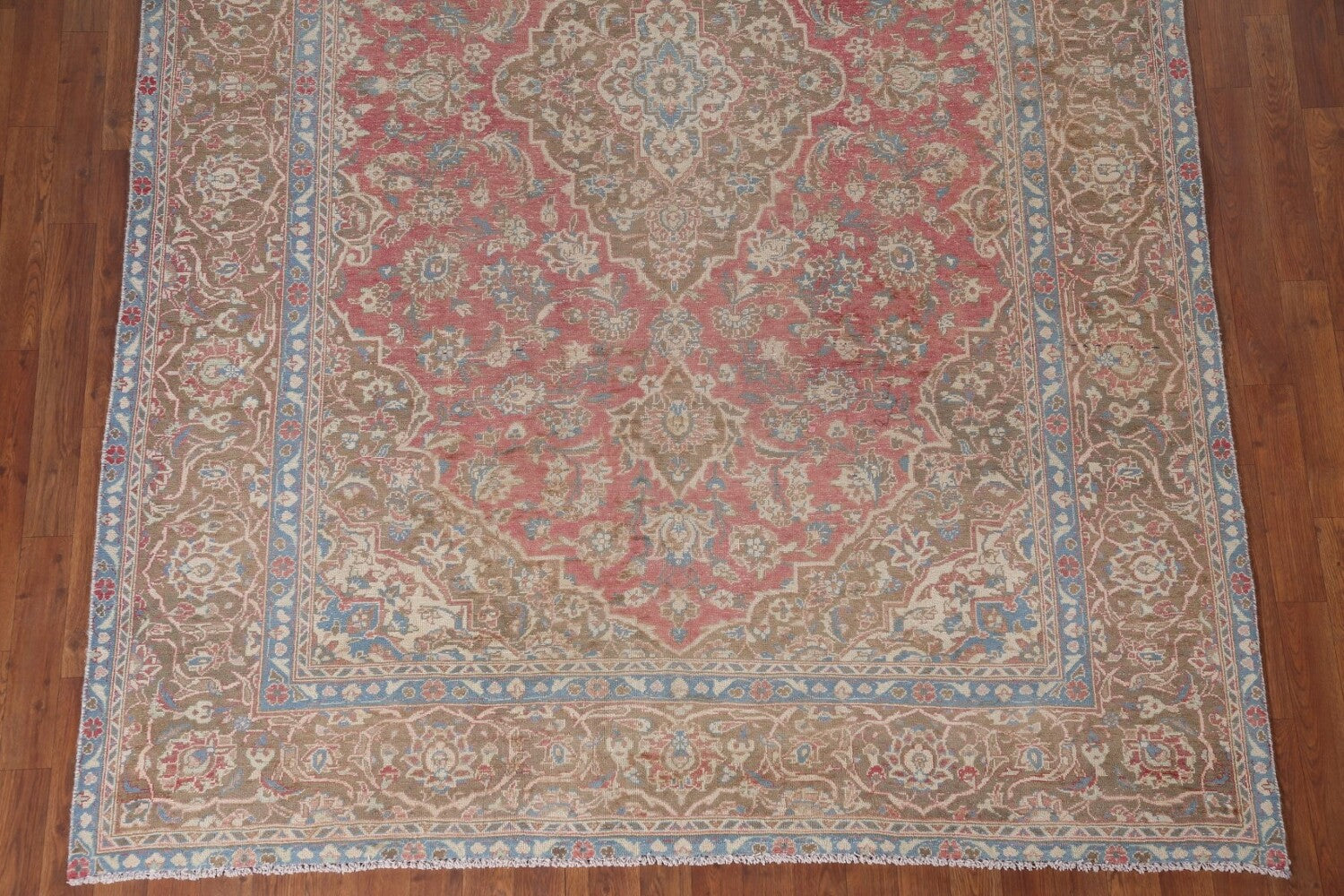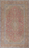 A Beautiful Genuine Persia ( Persia ) Kashan rug is Hand Knotted by skillful weavers in Persia ( Persia ) with 100% Wool Material. This rug is in Very Good (Low Pile) condition. dimensions are 9' 9'' X 6' 5'' in foot and 297 X 196 in centimeter. the primary color is Pink.