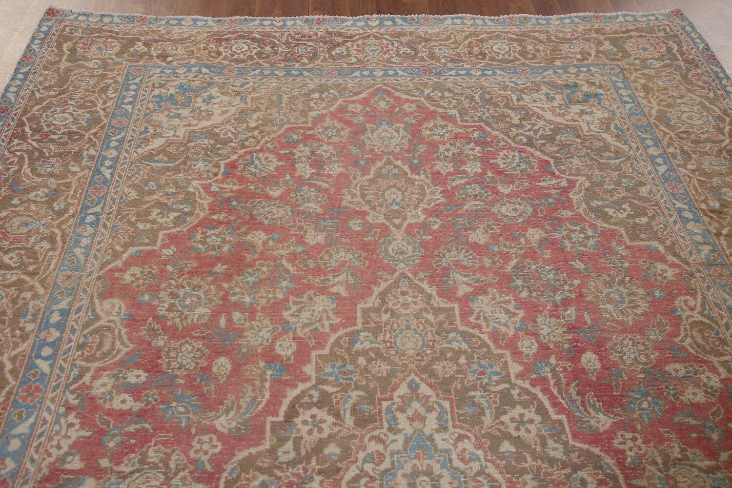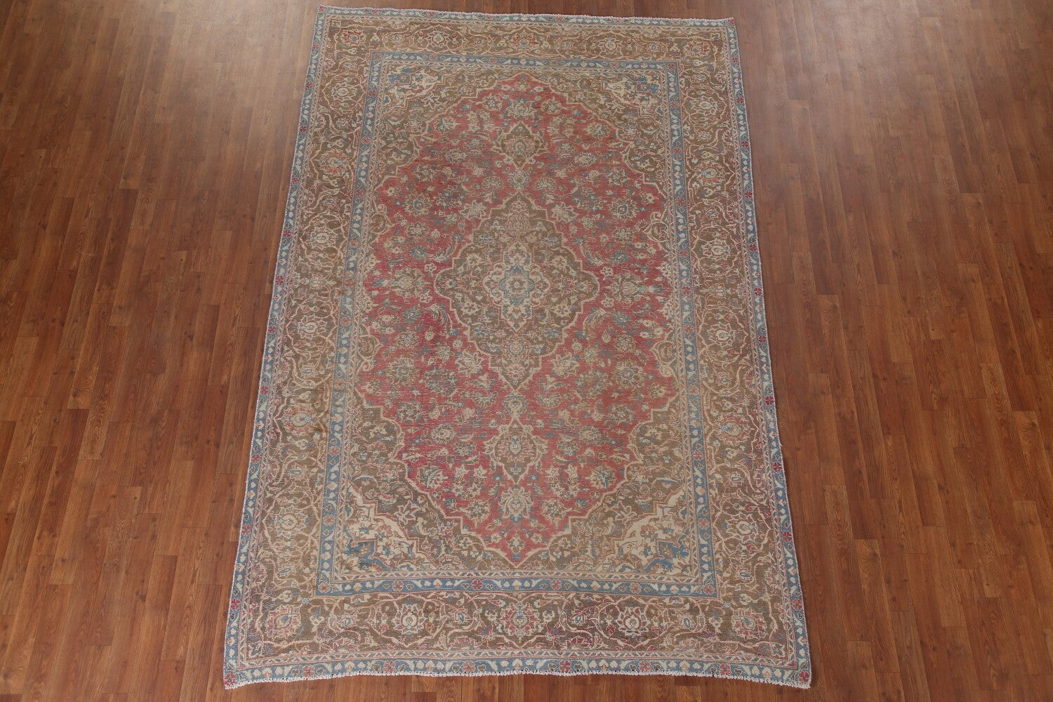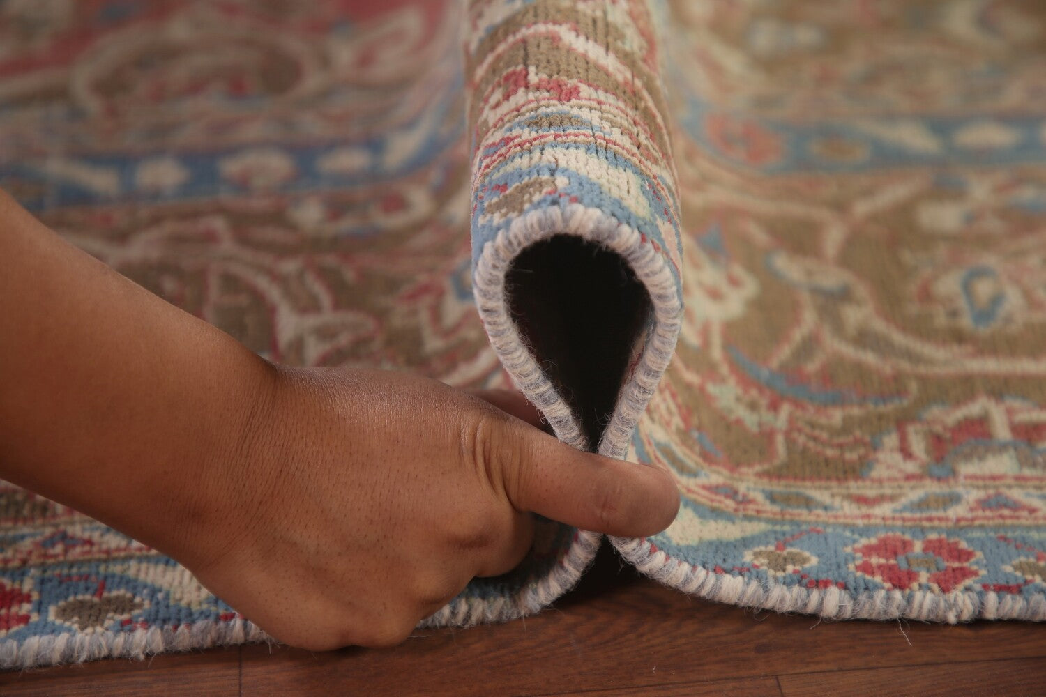 A Beautiful Genuine Persia ( Persia ) Kashan rug is Hand Knotted by skillful weavers in Persia ( Persia ) with 100% Wool Material. This rug is in Very Good (Low Pile) condition. dimensions are 9' 9'' X 6' 5'' in foot and 297 X 196 in centimeter. the primary color is Pink.