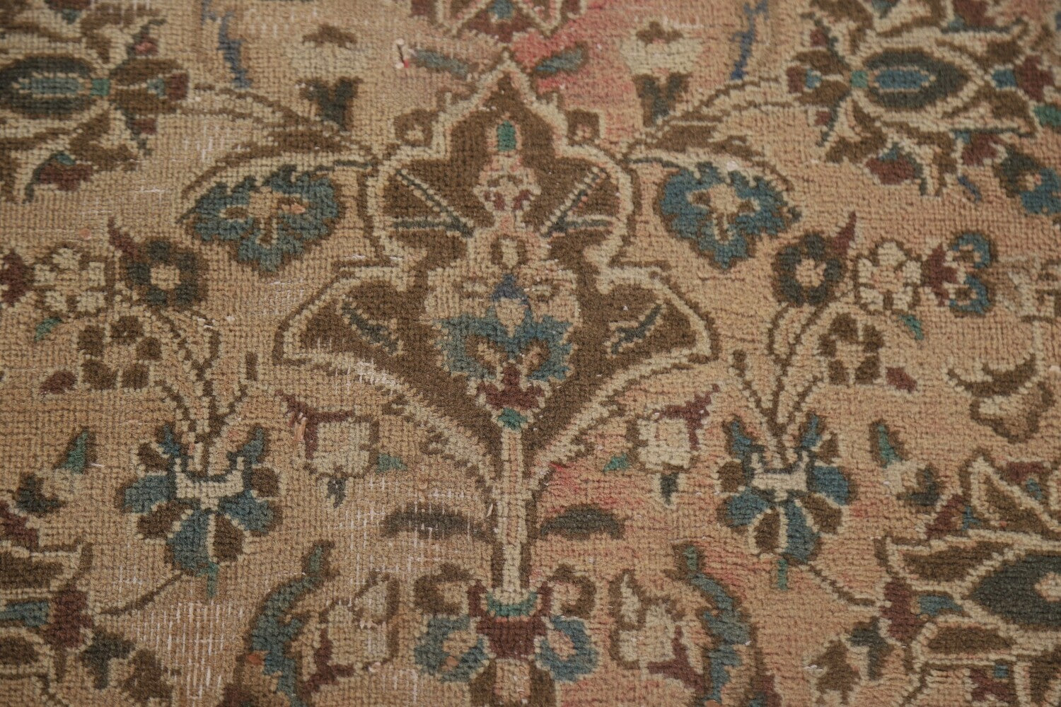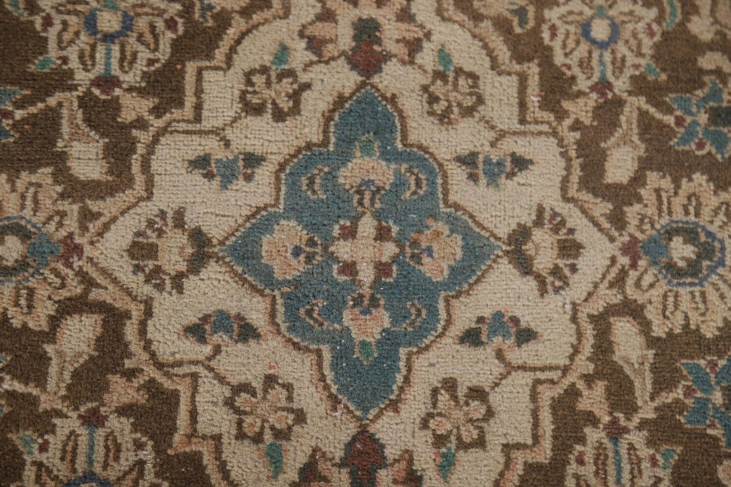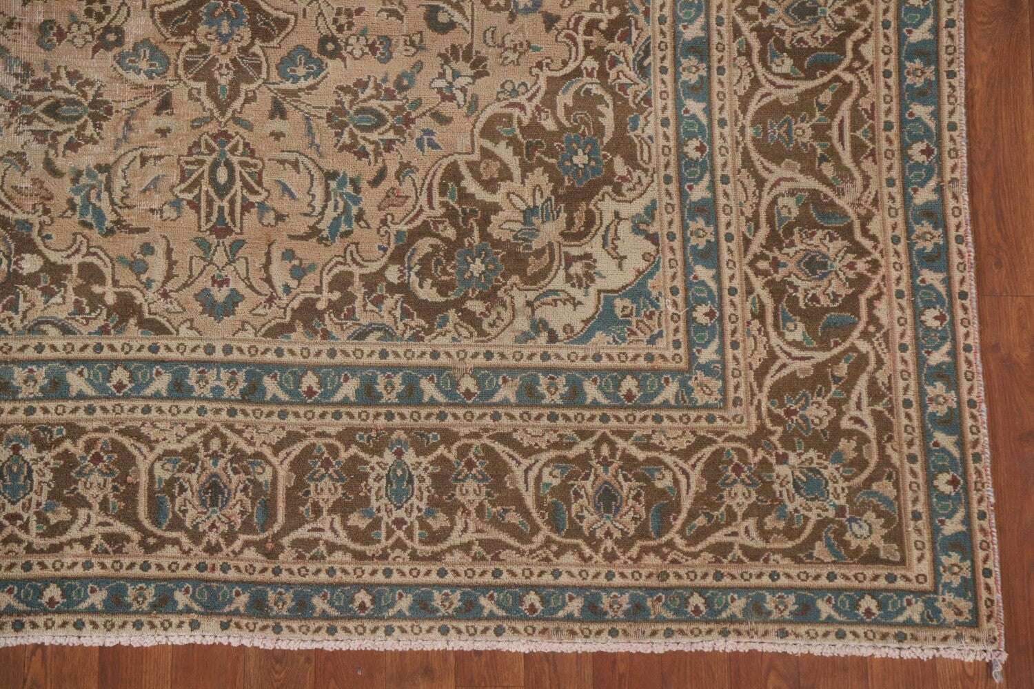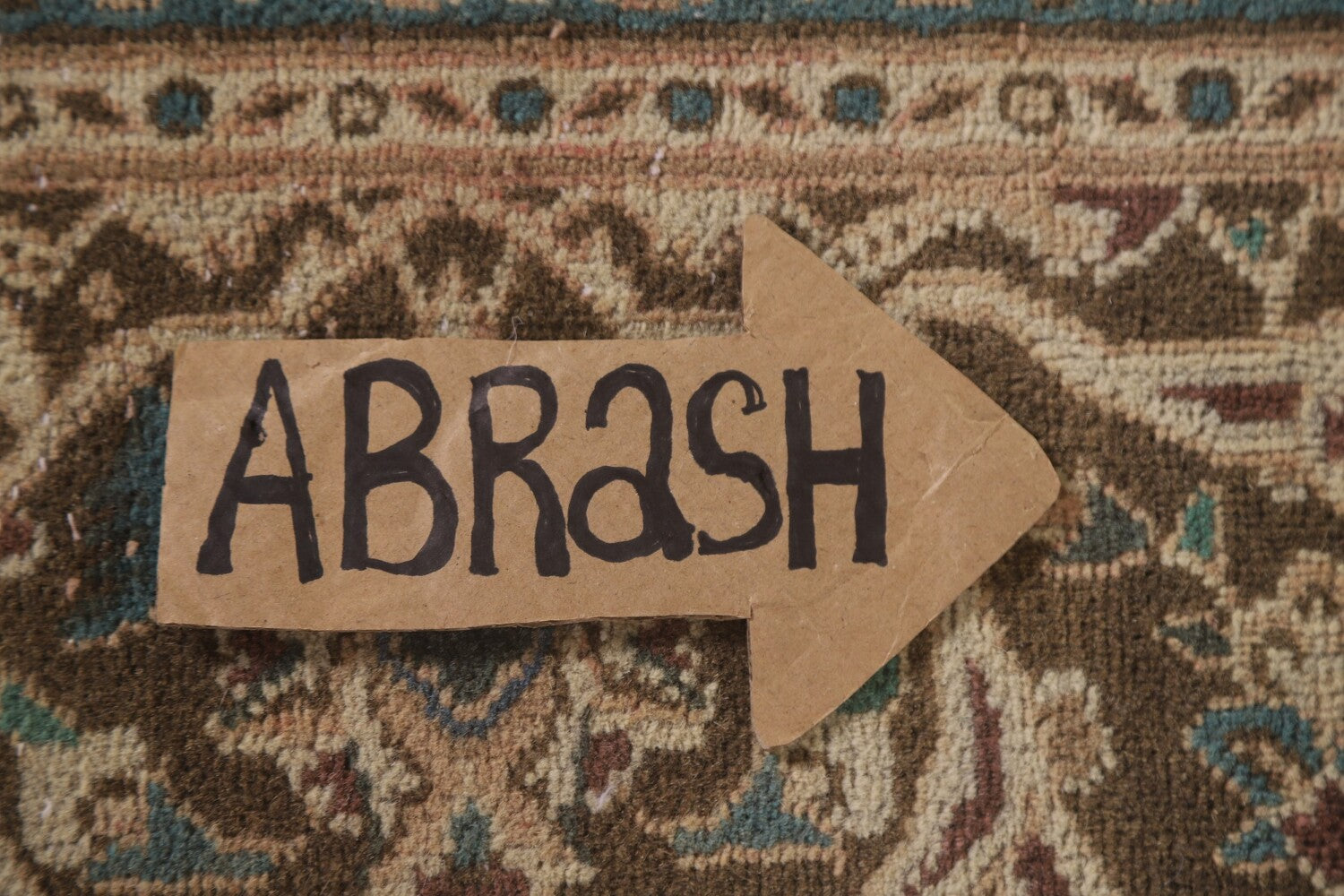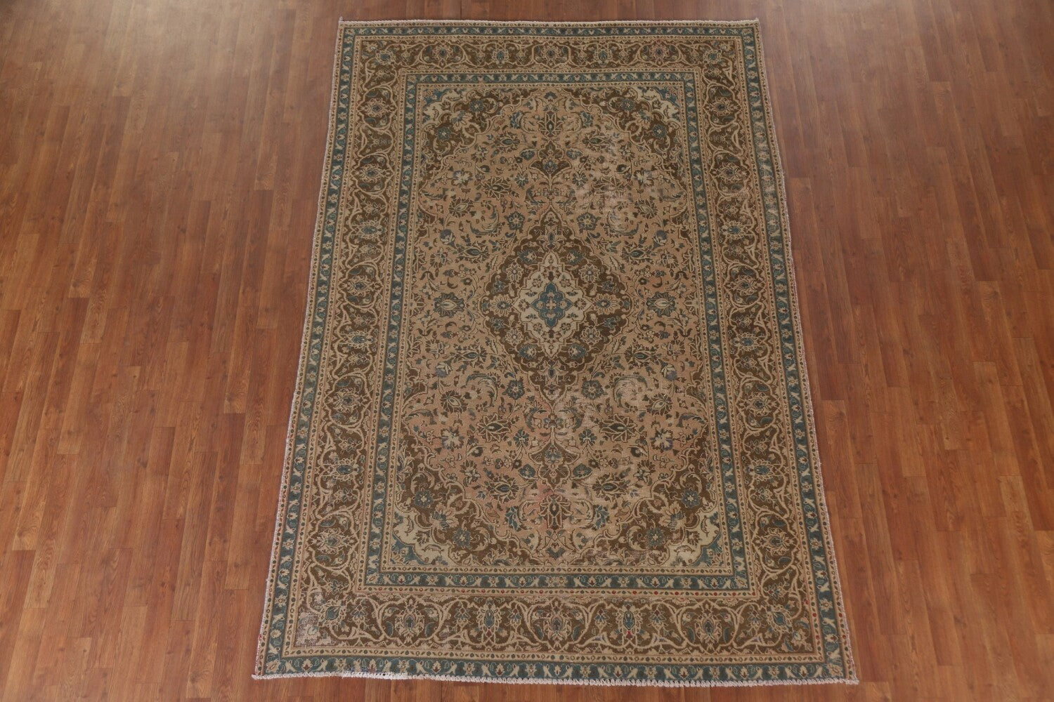A Beautiful Genuine Persia ( Persia ) Kashan rug is Hand Knotted by skillful weavers in Persia ( Persia ) with 100% Wool Material. This rug is in Very Good (Low Pile-Abrash) condition. dimensions are 9' 4'' X 6' 3'' in foot and 284 X 191 in centimeter. the primary color is Beige & Ivories.