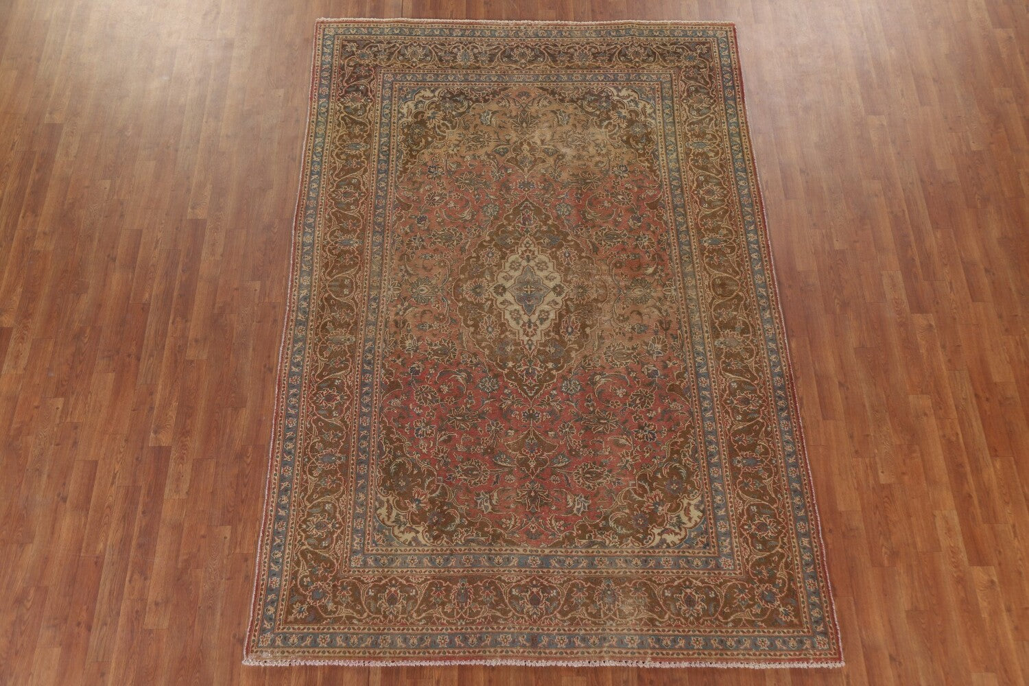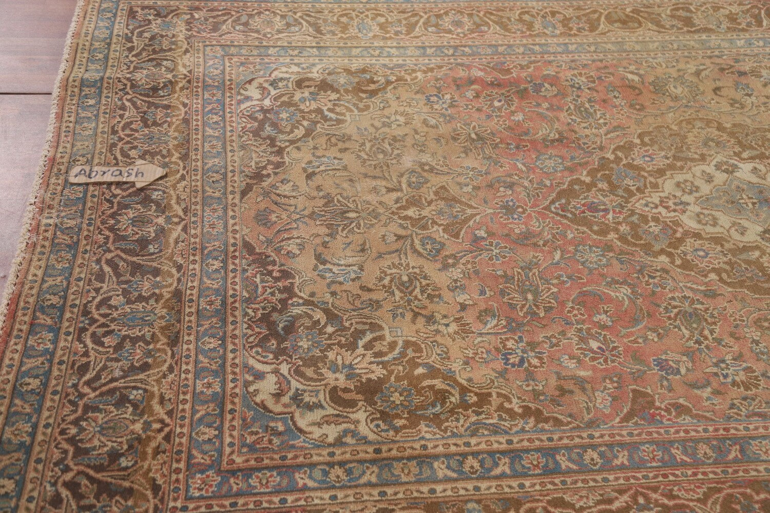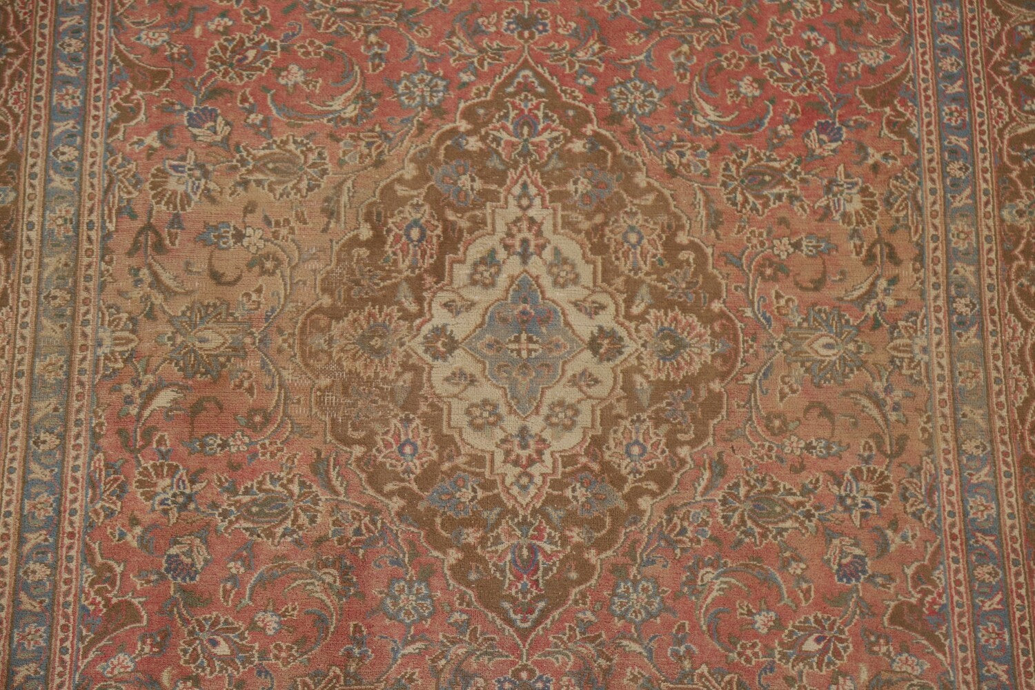 A Beautiful Genuine Persia ( Persia ) Kashan rug is Hand Knotted by skillful weavers in Persia ( Persia ) with 100% Wool Material. This rug is in Very Good (Low Pile-Abrash) condition. dimensions are 9' 5'' X 6' 4'' in foot and 287 X 193 in centimeter. the primary color is Pink.